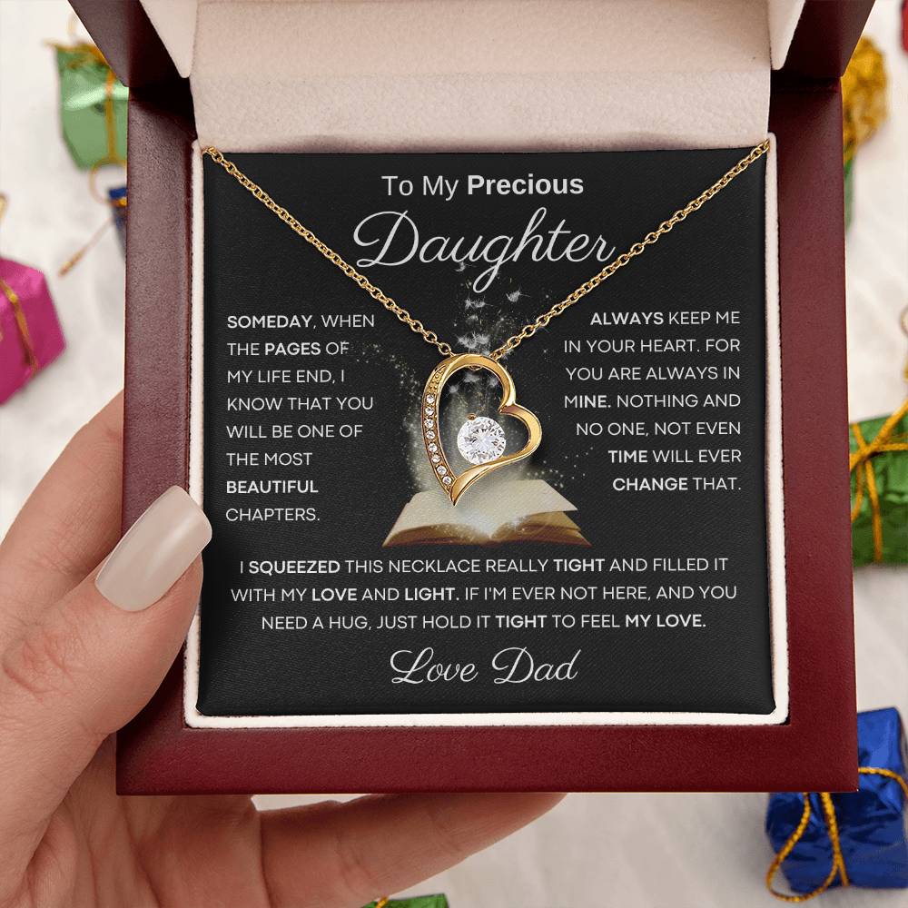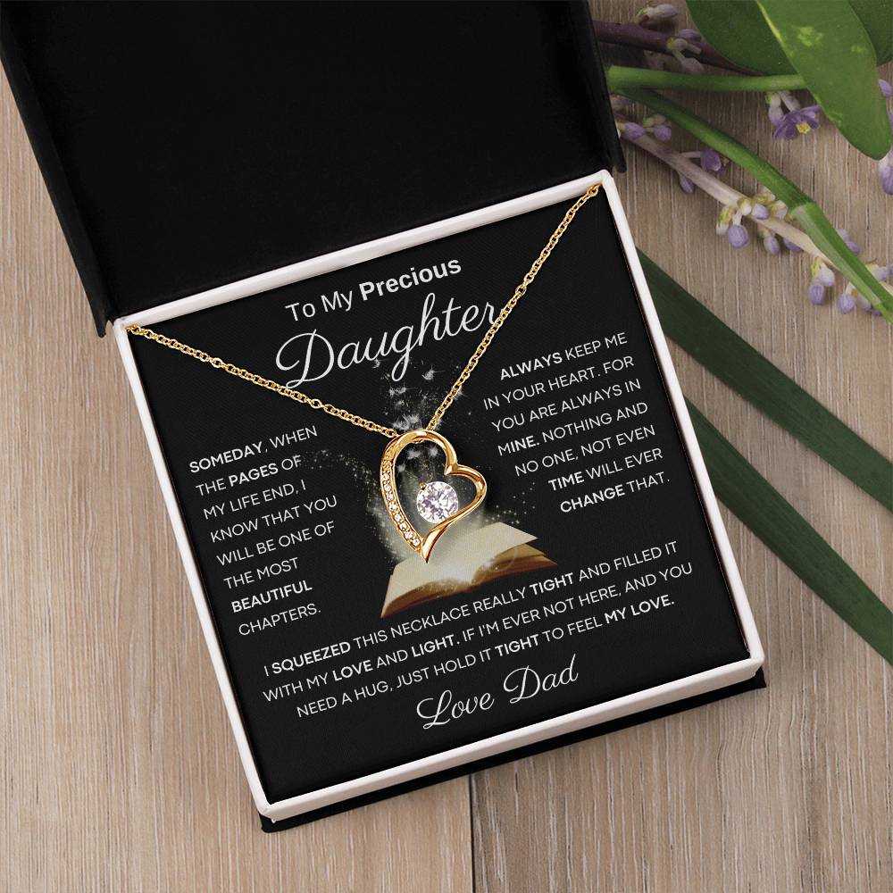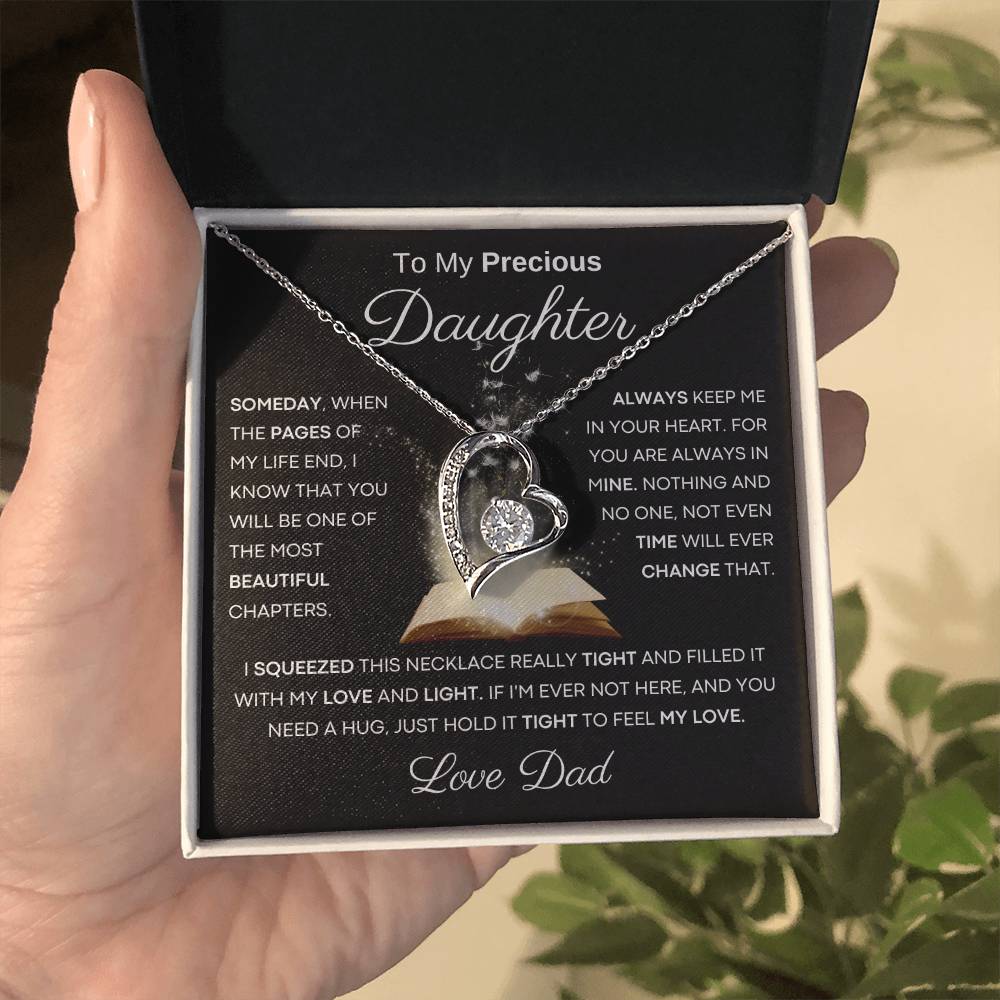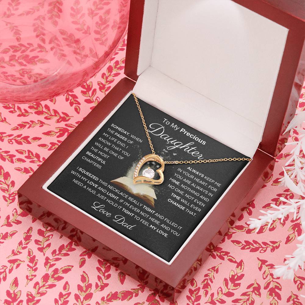 Quote On Card: To My Beautiful Daughter , Someday, When The Pages Of My Life End, I Know That You Will Be One Of The Most Beautiful Chapters. Always Keep Me In Your Heart. For You Are Always In Mine. Nothing And No One, Not Even Time Will Ever Change That .I Squeezed This Necklace Really Tight And Filled It With My Love, And Light. If I'm Ever Not Here, And You Need A Hug, Just Hold It Tight To Feel My Love. I Love You