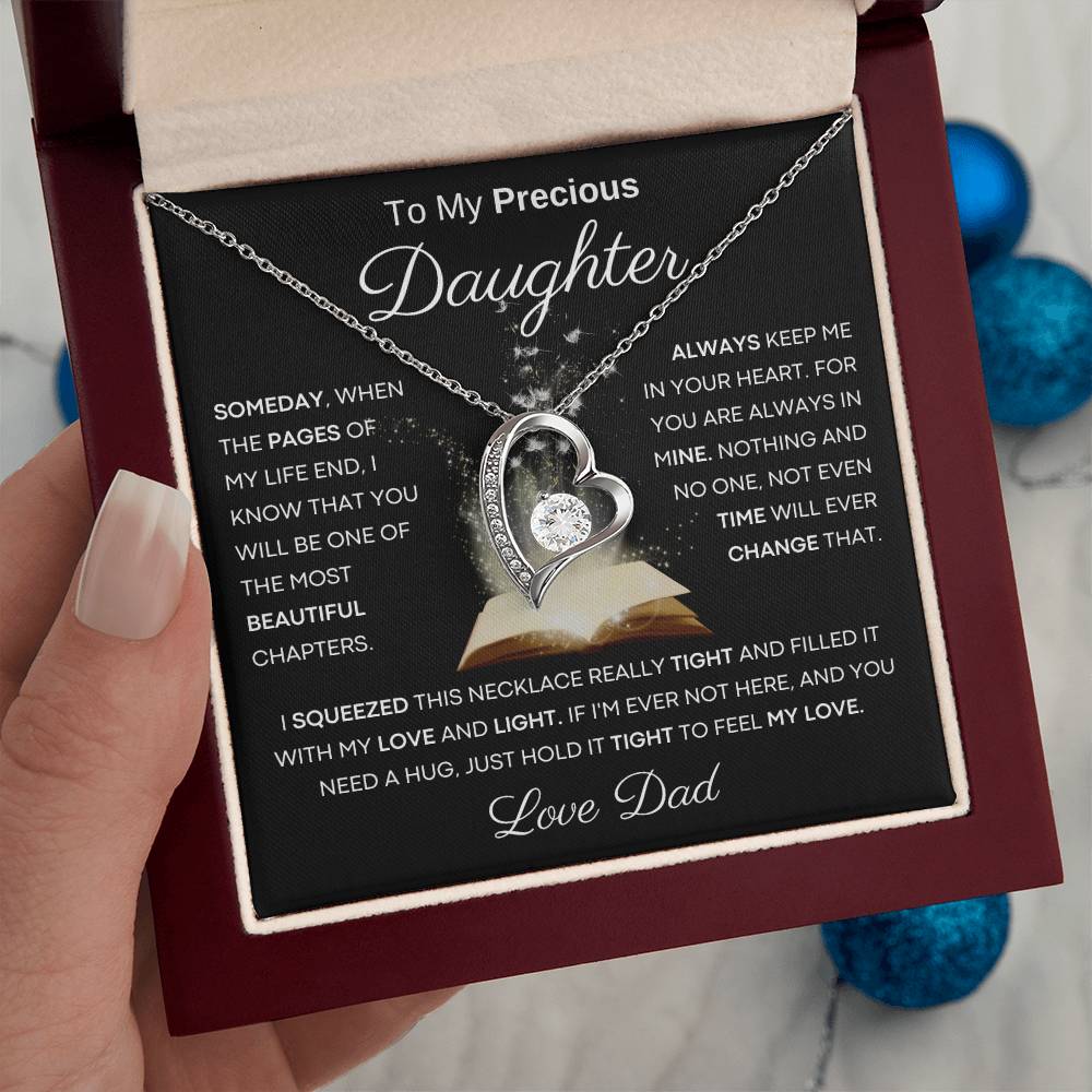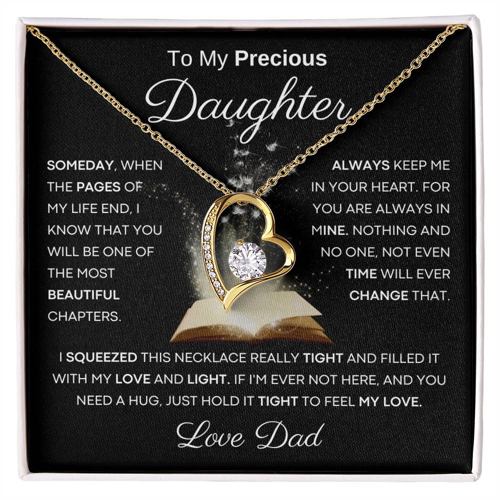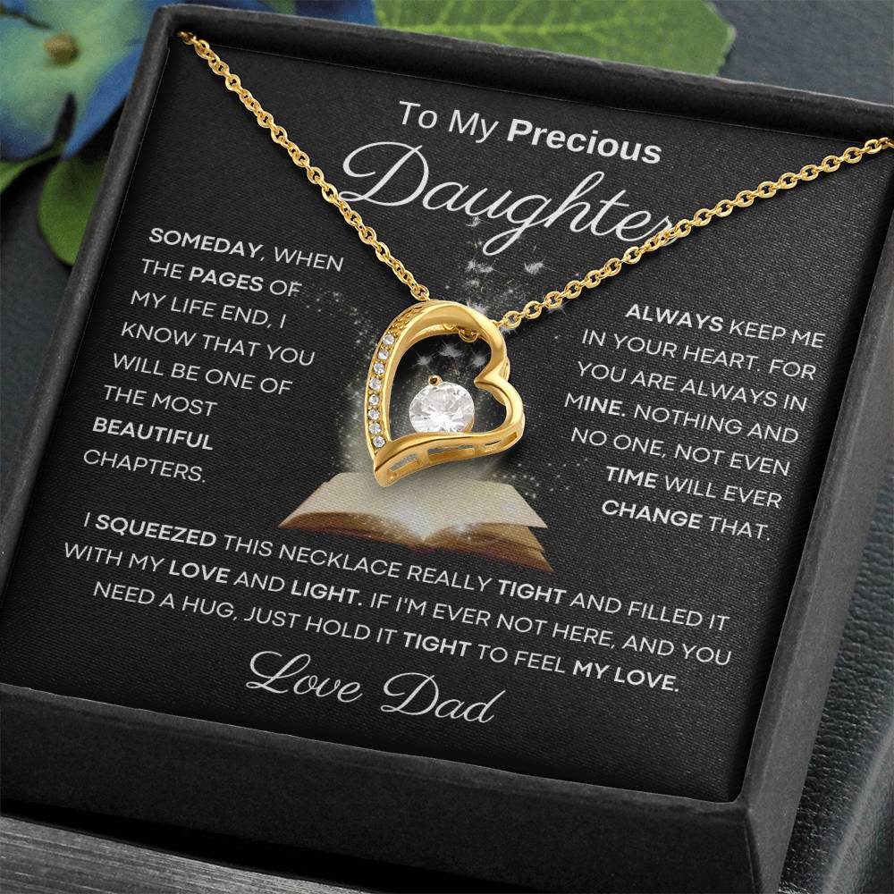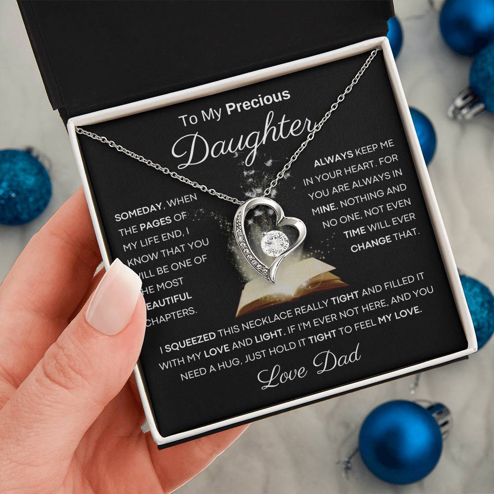Quote On Card: To My Beautiful Daughter , Someday, When The Pages Of My Life End, I Know That You Will Be One Of The Most Beautiful Chapters. Always Keep Me In Your Heart. For You Are Always In Mine. Nothing And No One, Not Even Time Will Ever Change That .I Squeezed This Necklace Really Tight And Filled It With My Love, And Light. If I'm Ever Not Here, And You Need A Hug, Just Hold It Tight To Feel My Love. I Love You