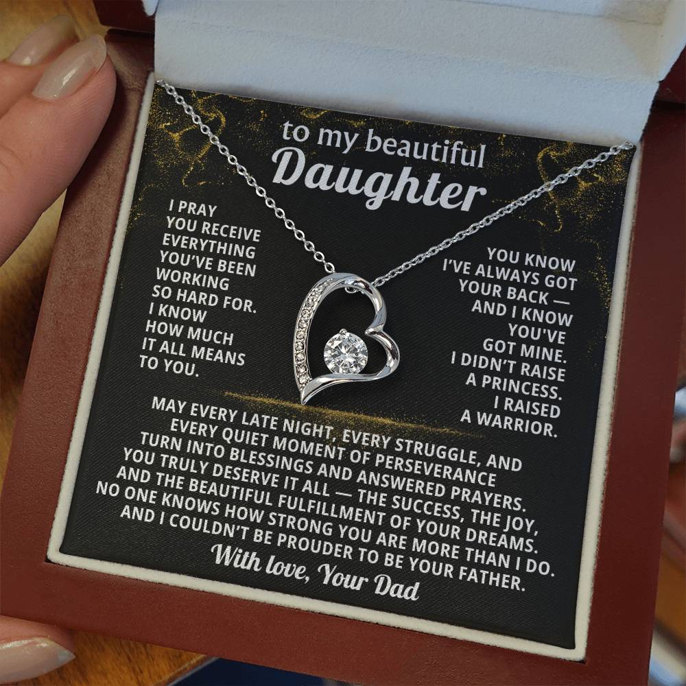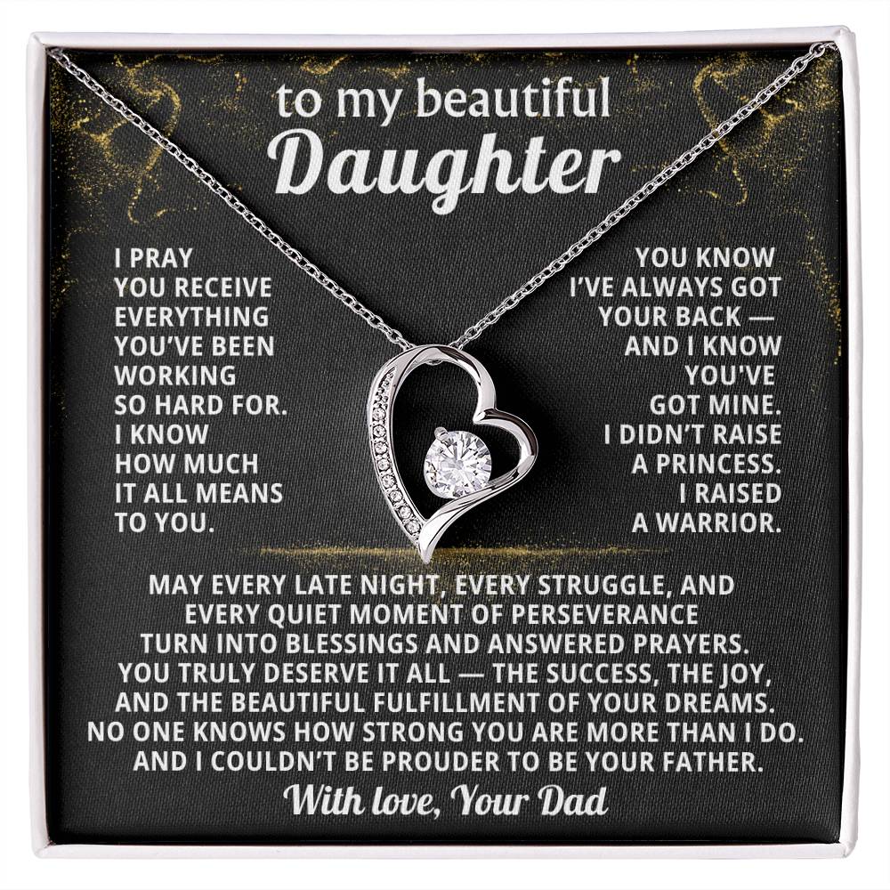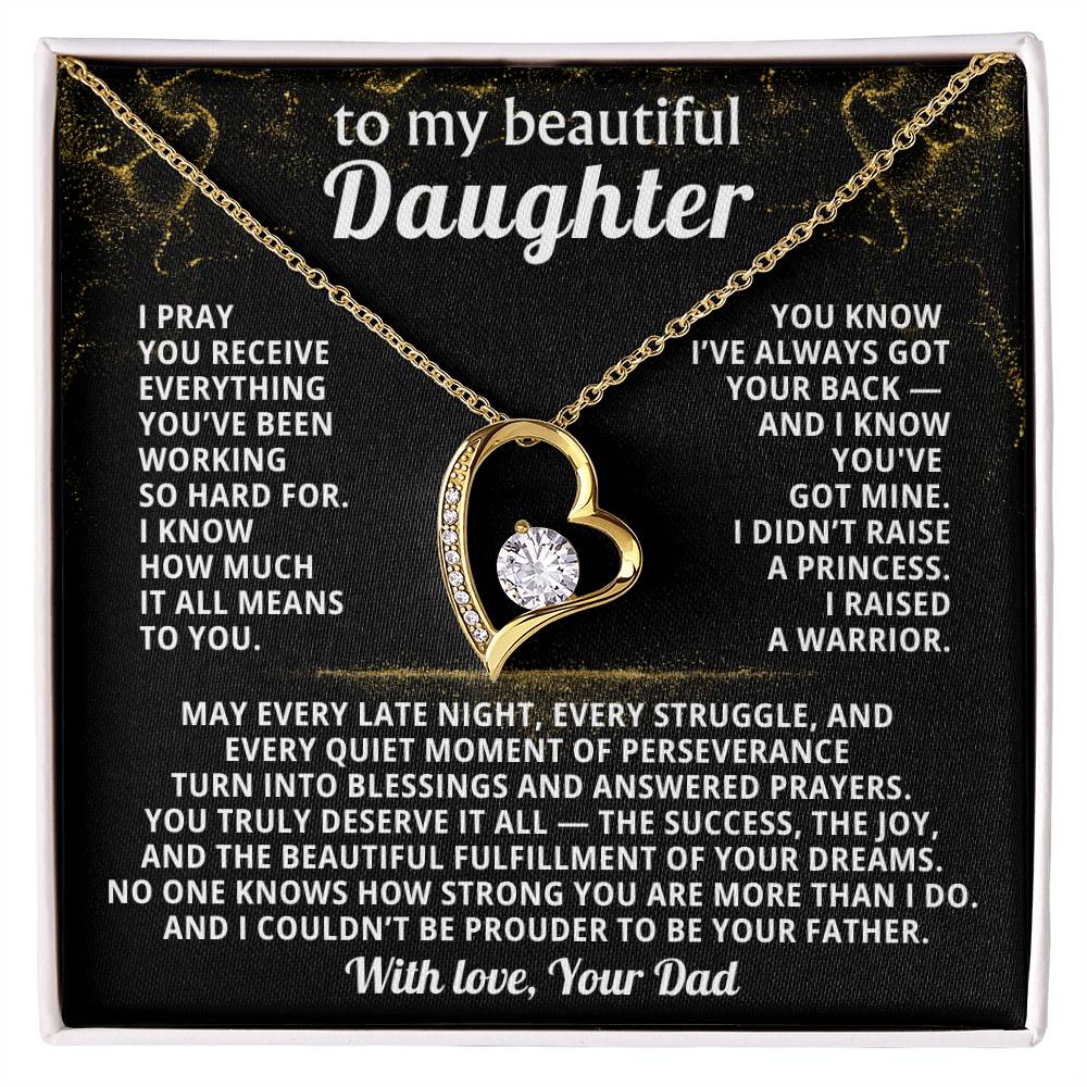 Quote On Card: TO MY BEAUTIFUL DAUGHTER, I pray you receive everything you’ve been working so hard for.I know how much it all means to you.You know I’ve always got your back — and I know you've got mine. I didn’t raise a princess. I raised a warrior.May every late night, every struggle, and every quiet moment of perseverance turn into blessings and answered prayers. You truly deserve it all — the success, the joy, and the beautiful fulfillment of your dreams. No one knows how strong you are more than I do. And I couldn’t be prouder to be your father. With love, Your Dad