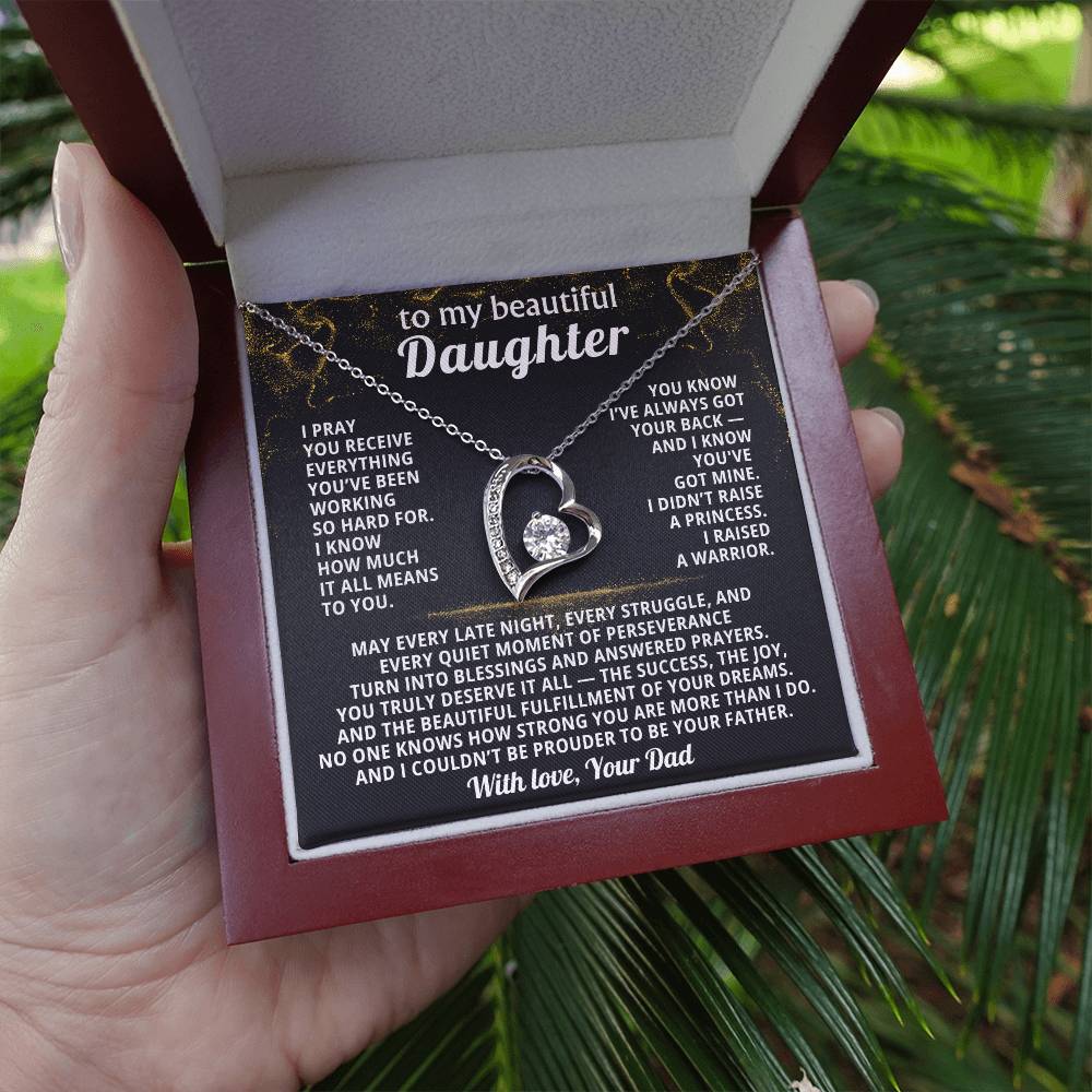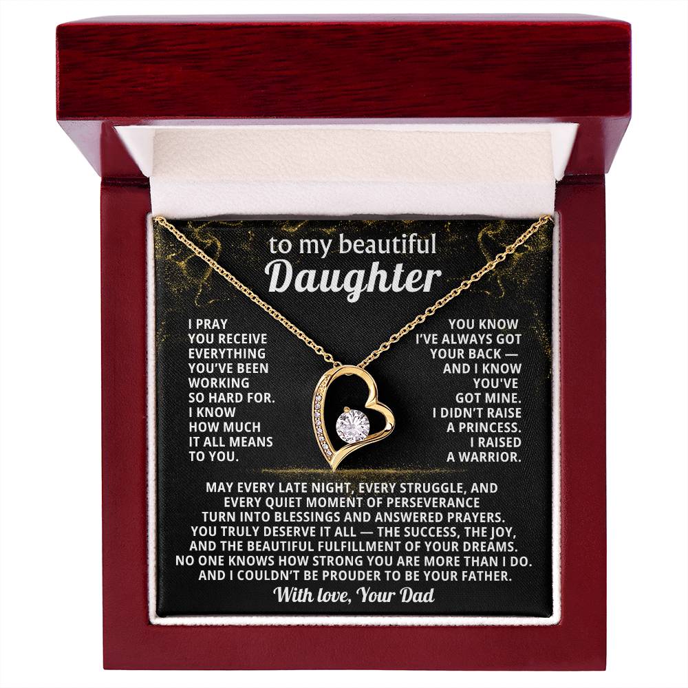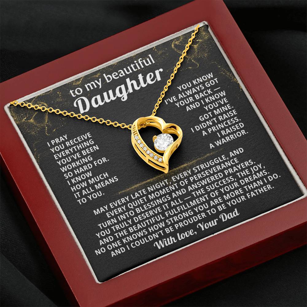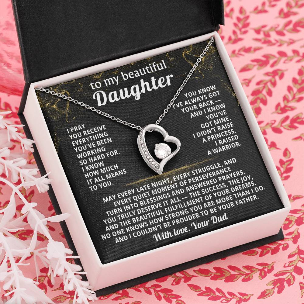 Quote On Card: TO MY BEAUTIFUL DAUGHTER, I pray you receive everything you’ve been working so hard for.I know how much it all means to you.You know I’ve always got your back — and I know you've got mine. I didn’t raise a princess. I raised a warrior.May every late night, every struggle, and every quiet moment of perseverance turn into blessings and answered prayers. You truly deserve it all — the success, the joy, and the beautiful fulfillment of your dreams. No one knows how strong you are more than I do. And I couldn’t be prouder to be your father. With love, Your Dad