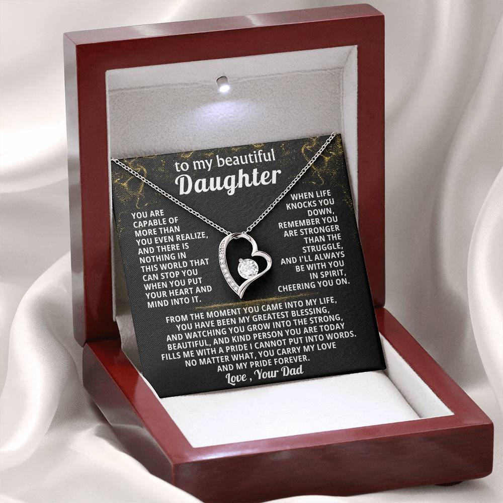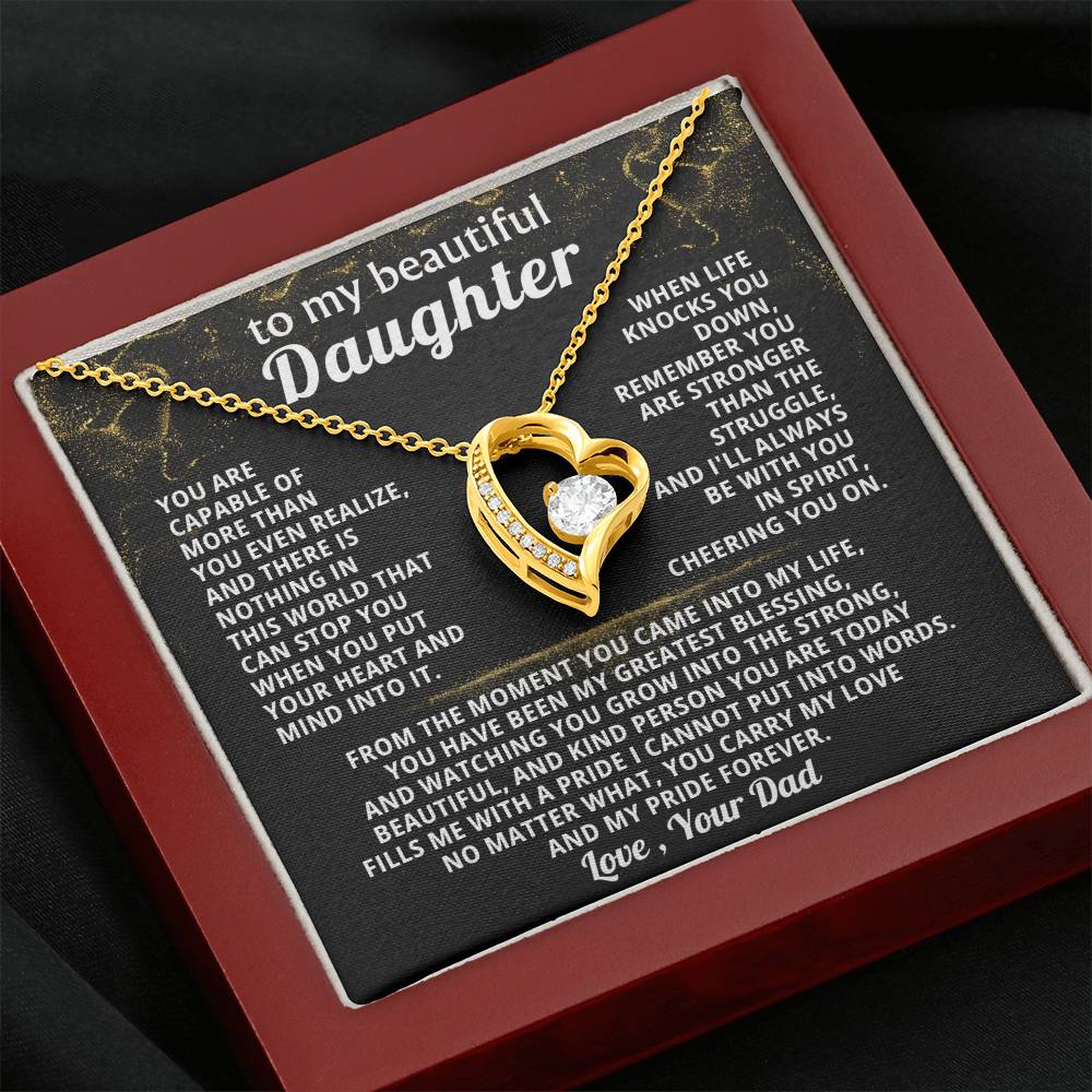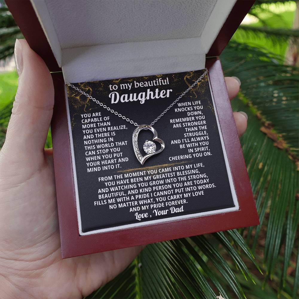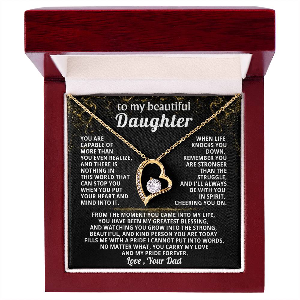 Quote On Card: TO MY BEAUTIFUL DAUGHTER, You are capable of more than you even realize, there is nothing in this world that can stop you when you put your heart and mind into it. When life knocks you down, remember you are stronger than the struggle,and I'll always be with you in spirit, cheering you on. From the moment you came into my life, you have been my greatest blessing, and watching you grow into the strong, beautiful, and kind person you are today fills me with a pride I cannot put into words.No matter what, you carry my love and my pride forever. Love , Your Dad