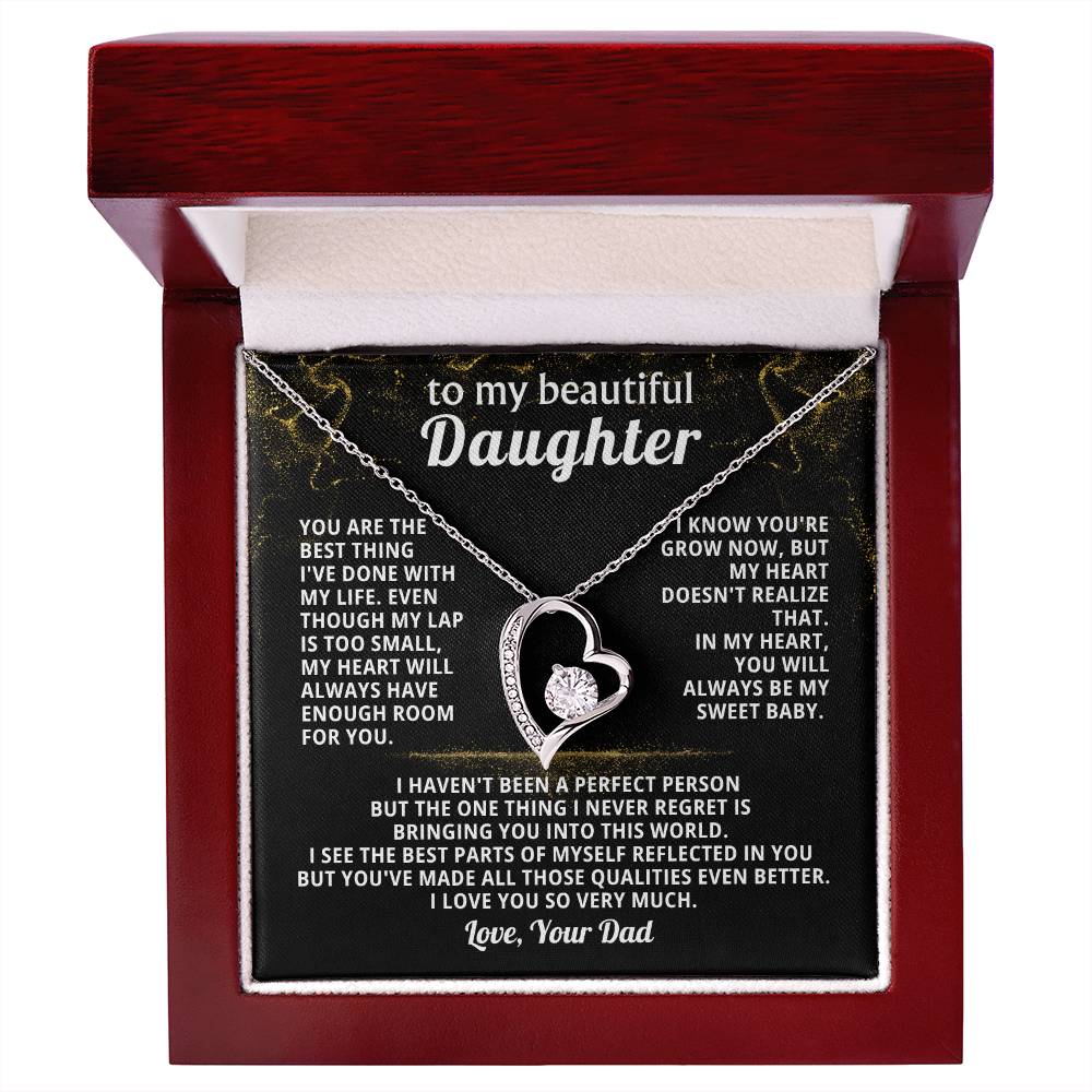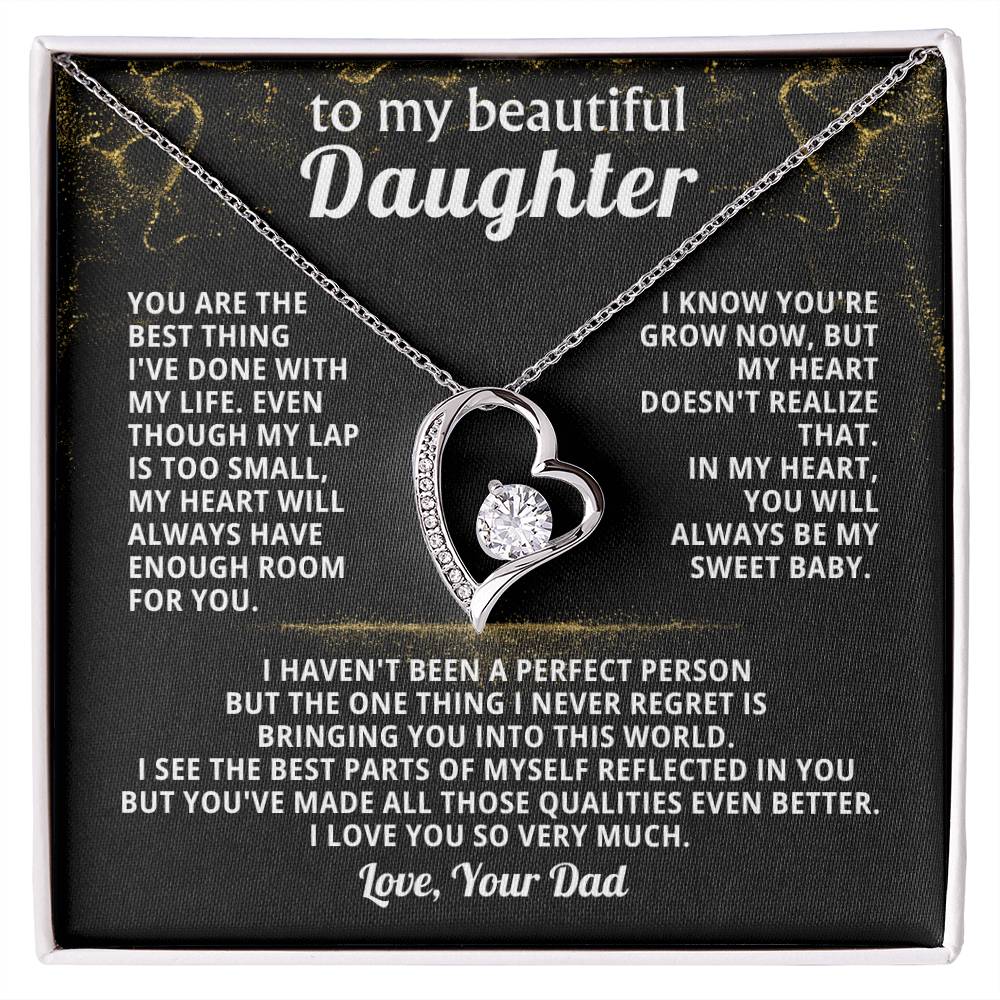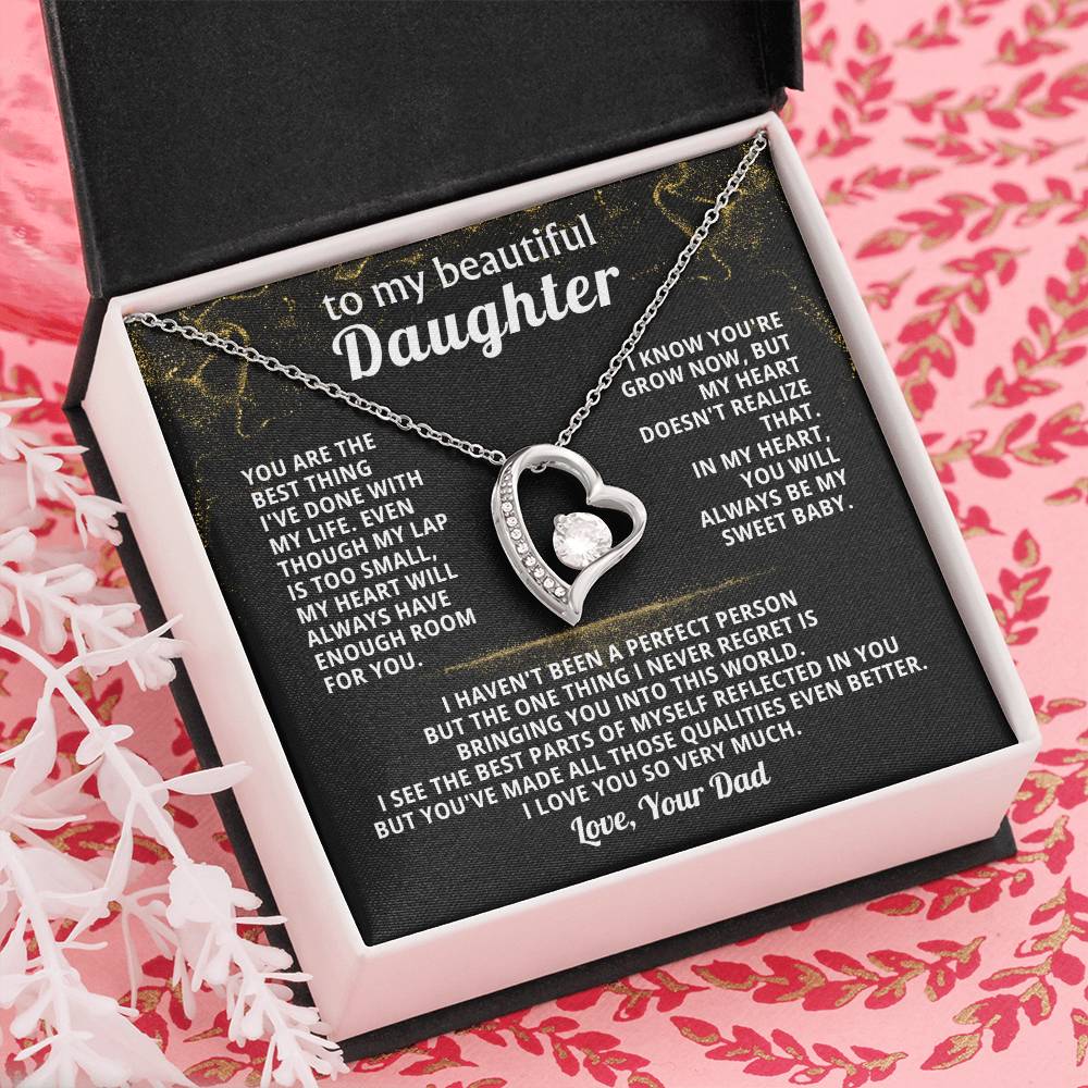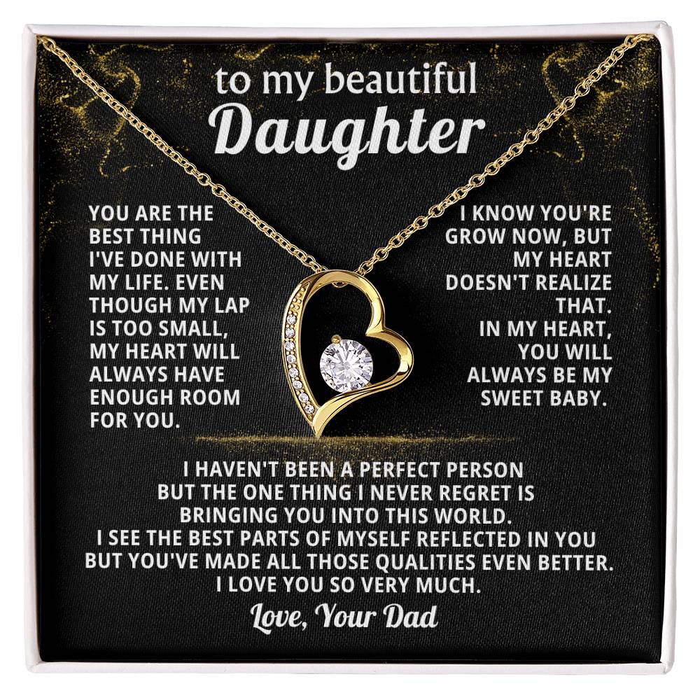 Quote On Card: TO MY BEAUTIFUL DAUGHTER, You are the best thing I've done with my life. Even though my lap is too small, my heart will always have enough room for you.My love for you is the kind that time can't erase; it will stay with you, even in the moments when I am not by your side.In my heart, you will always be my sweet baby. I haven't been a perfect person but the one thing I never regret is bringing you into this world. I see the best parts of myself reflected in you but you've made all those qualities even better. I love you so very much. Love,your dad
