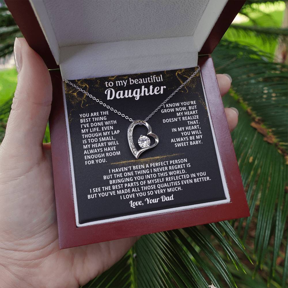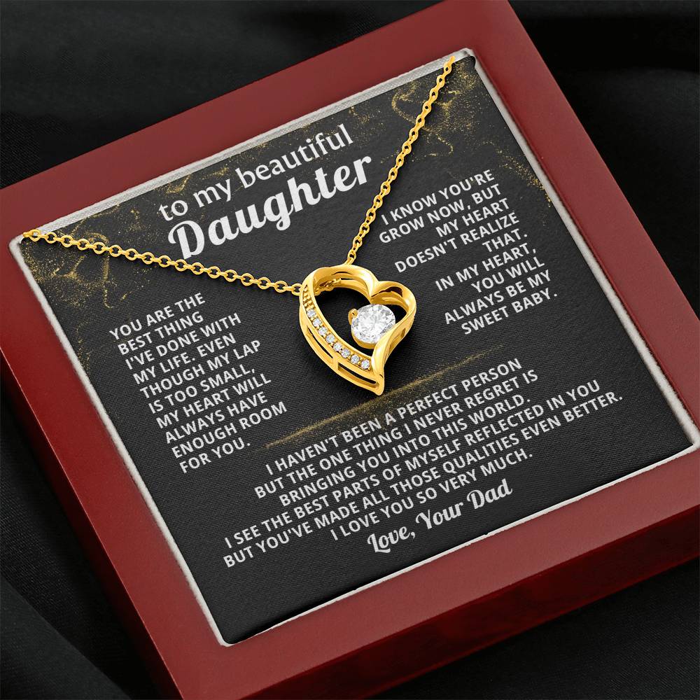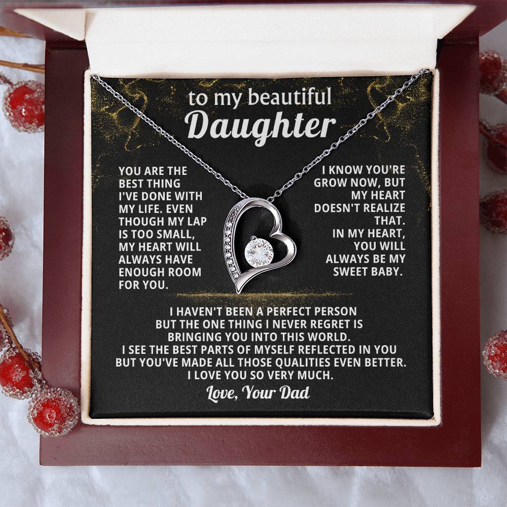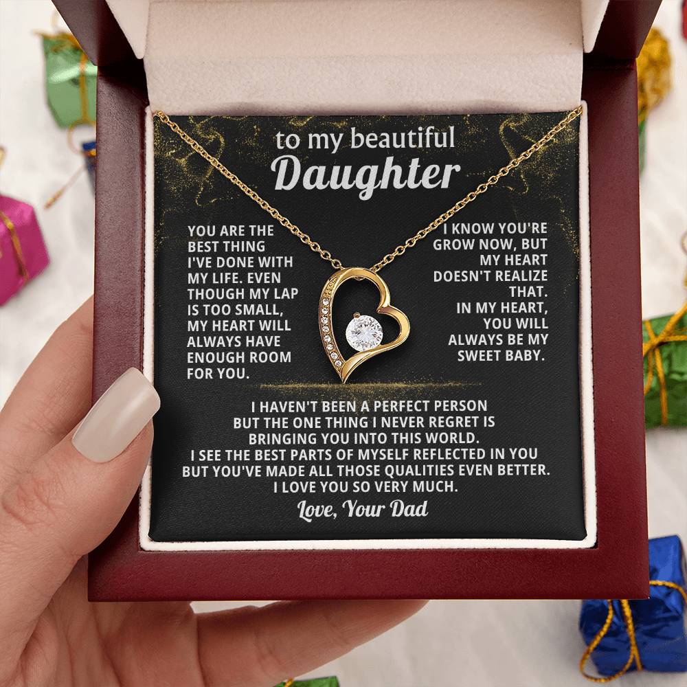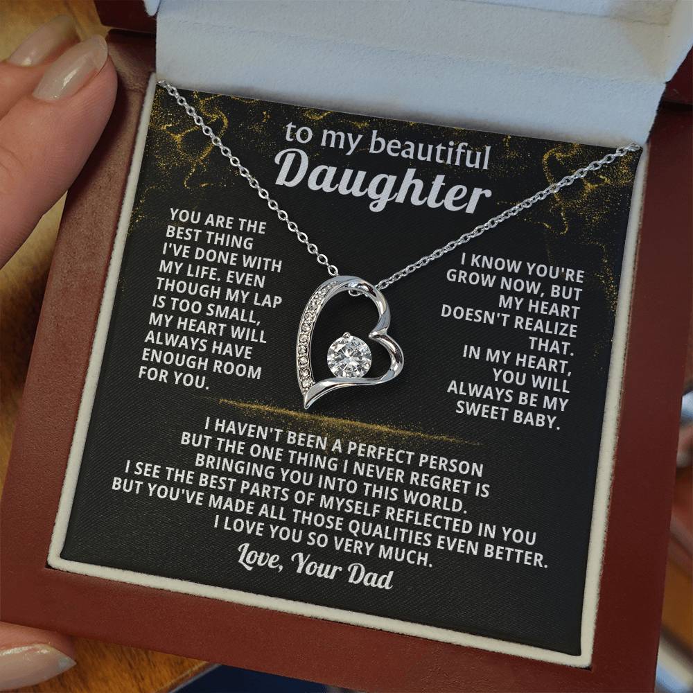 Quote On Card: TO MY BEAUTIFUL DAUGHTER, You are the best thing I've done with my life. Even though my lap is too small, my heart will always have enough room for you.My love for you is the kind that time can't erase; it will stay with you, even in the moments when I am not by your side.In my heart, you will always be my sweet baby. I haven't been a perfect person but the one thing I never regret is bringing you into this world. I see the best parts of myself reflected in you but you've made all those qualities even better. I love you so very much. Love,your dad