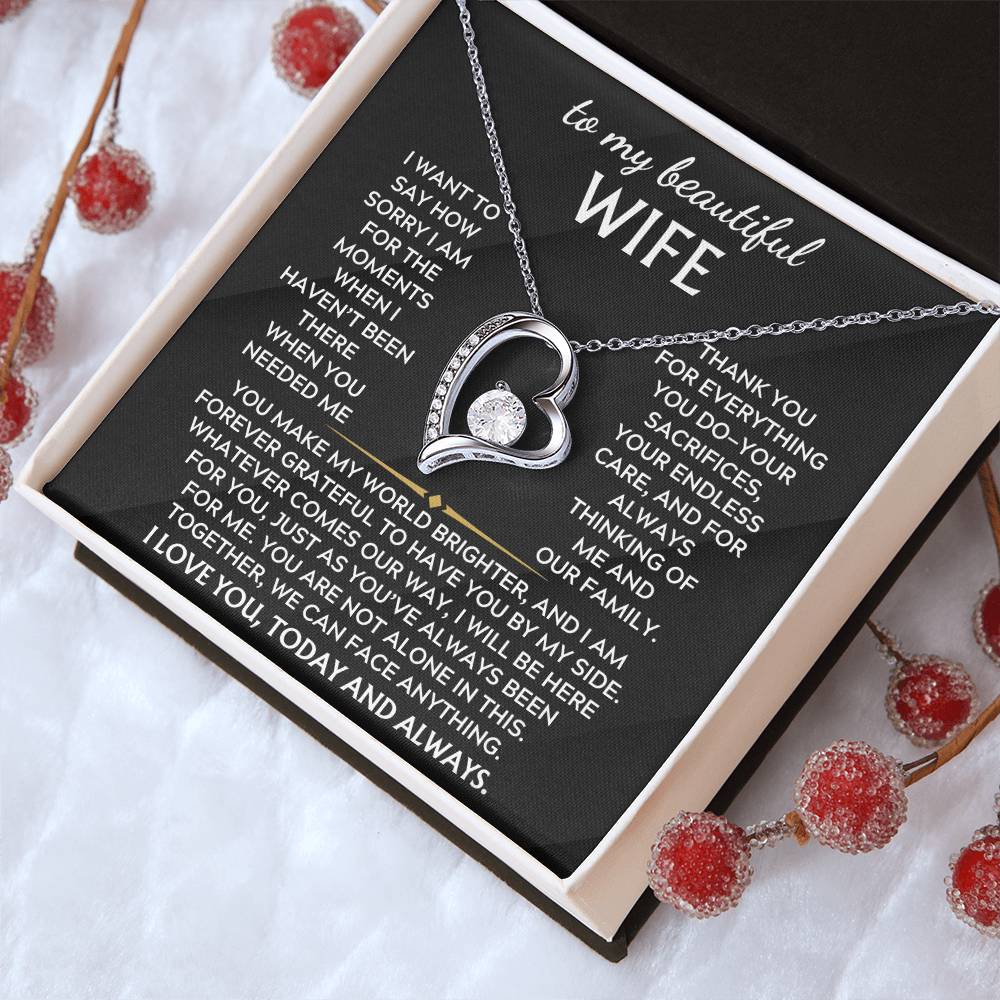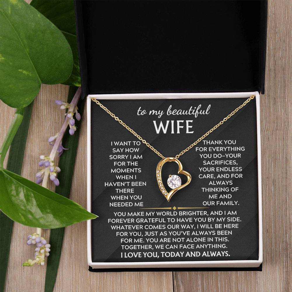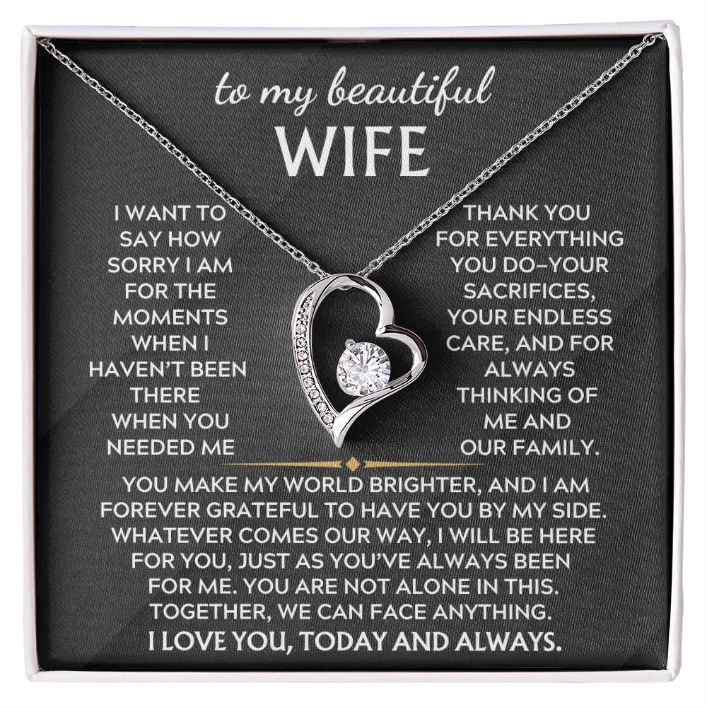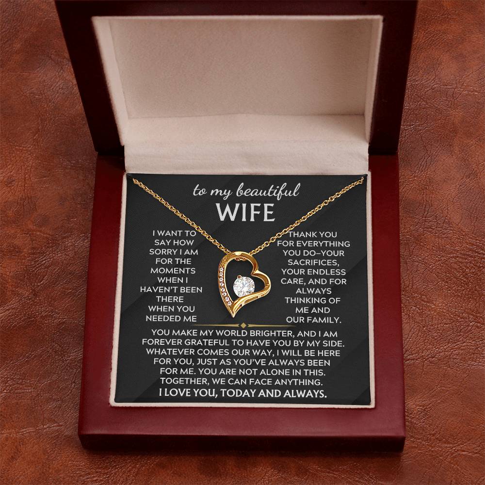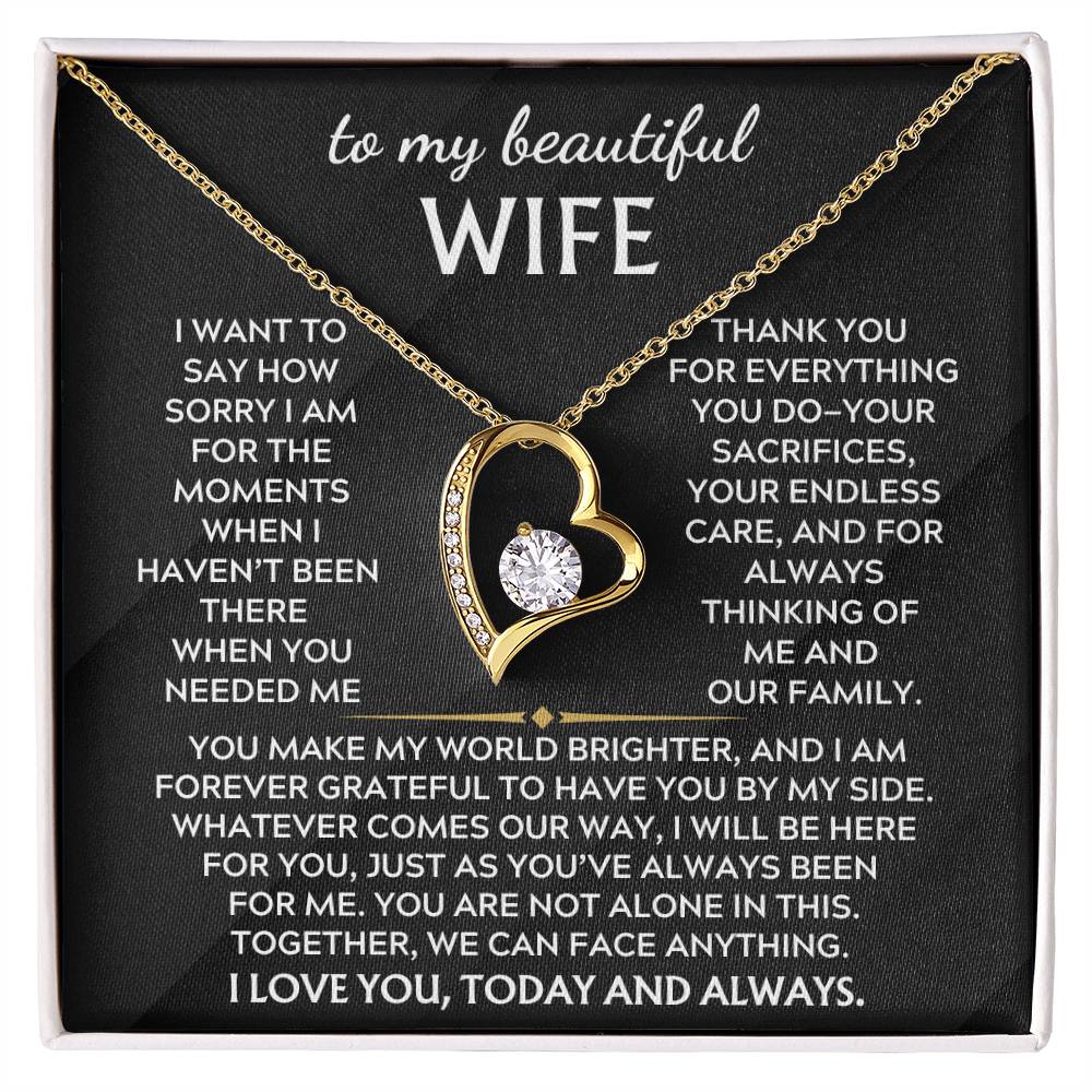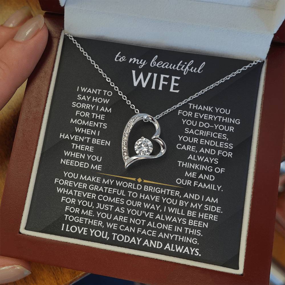 Quote On Card: To My Beautiful Wife, I want to say how sorry I am for the moments when haven’t been there in the way you needed. Thank you for everything you do—your sacrifices, your endless care, and for always thinking of me and our family. You make my world brighter, and I am forever grateful to have you by my side. Whatever comes our way, I will be here for you, just as you’ve always beenfor me. You are not alone in this. Together, we can face anything. I love you, today and always.