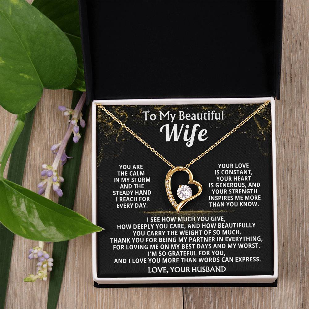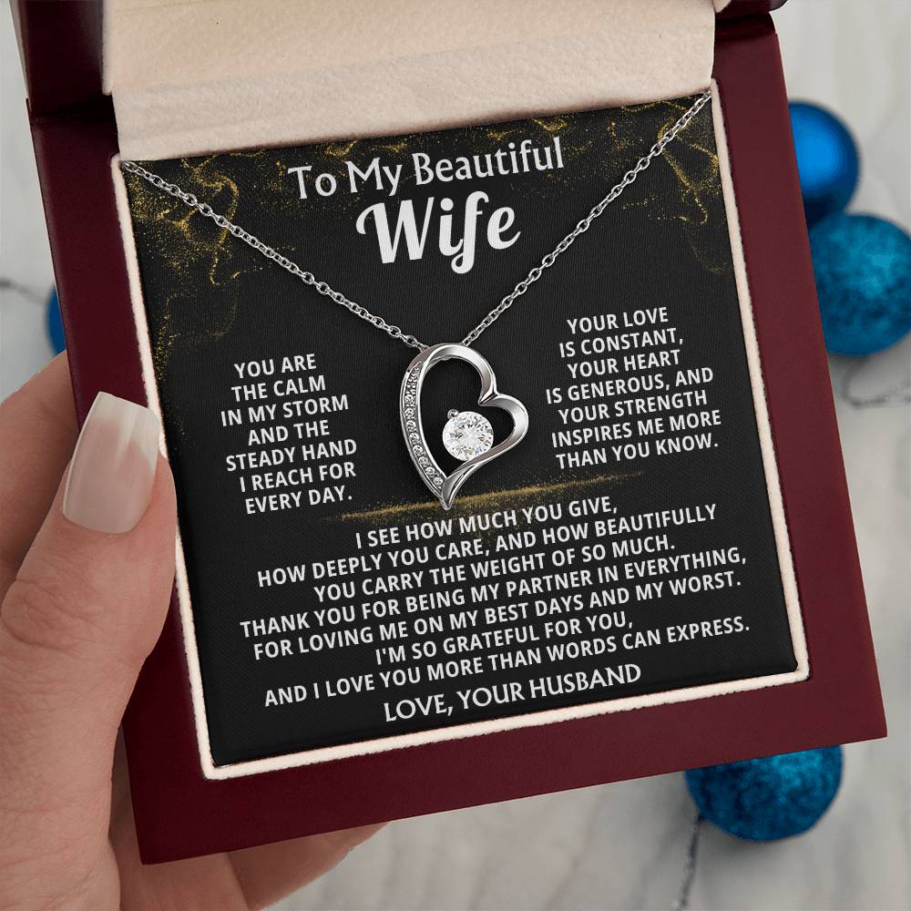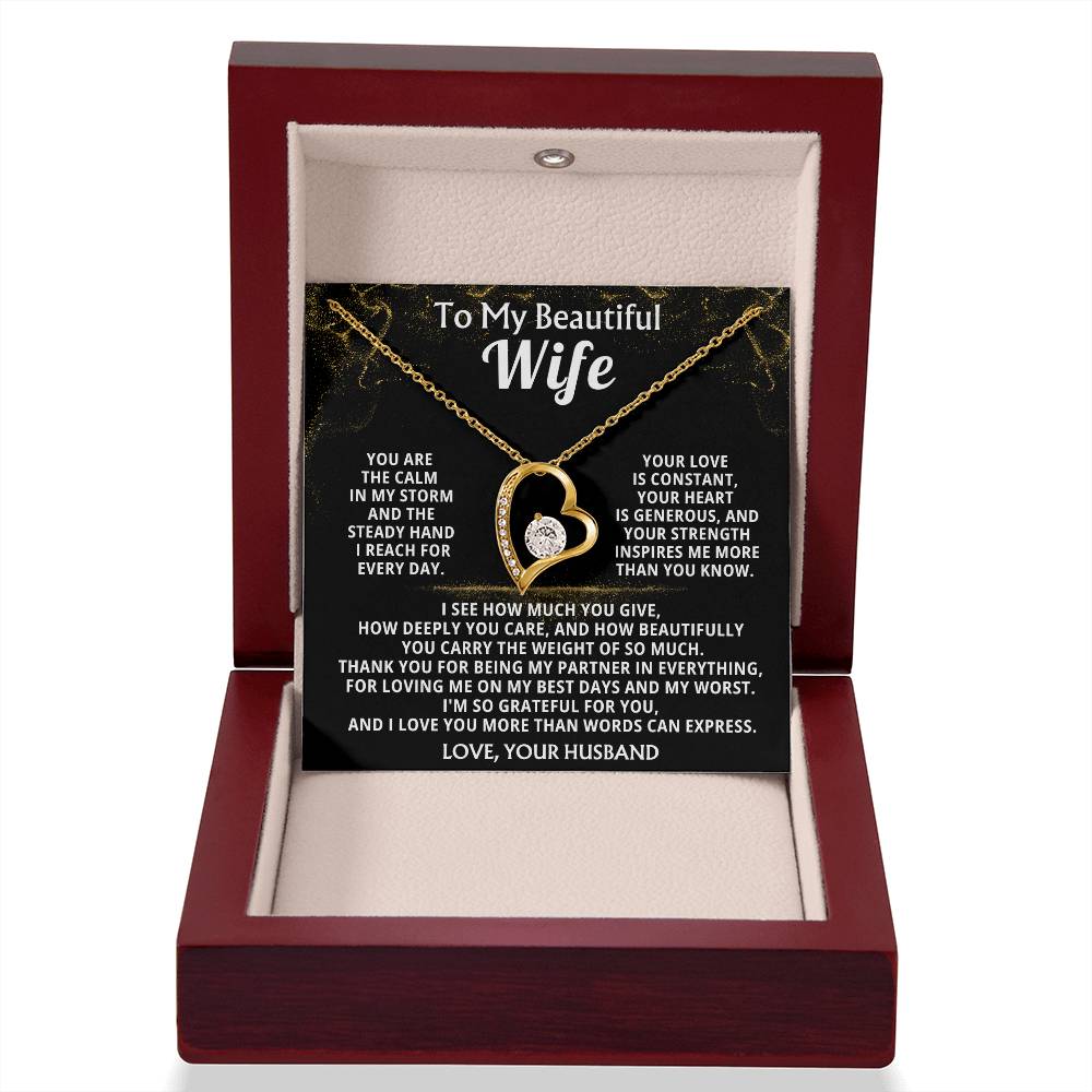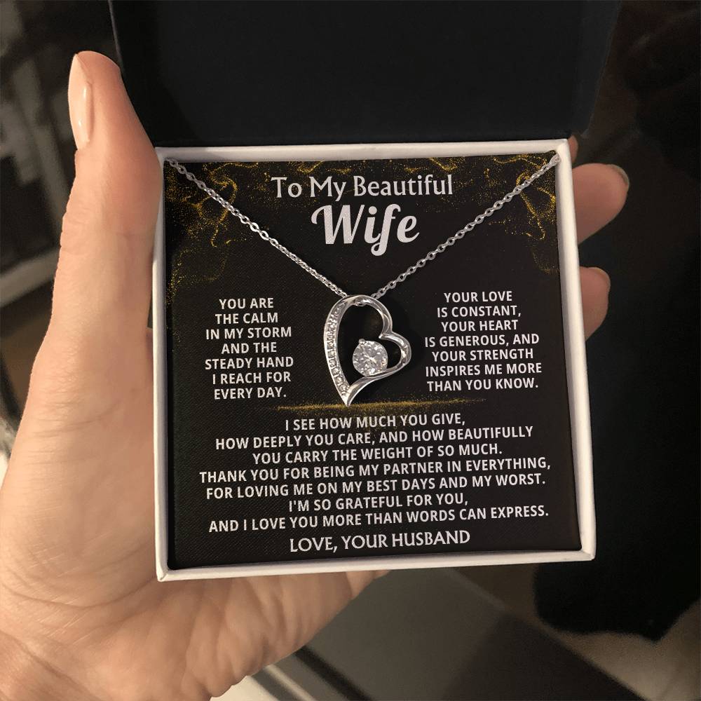 Quote On Card: To My Beautiful Wife,You are the calm in my storm and the steady hand I reach for every day. Your love is constant, your heart is generous, and your strength inspires me more than you know. I see how much you give, how deeply you care, and how beautifully you carry the weight of so much. Thank you for being my partner in everything, for loving me on my best days and my worst. I'm so grateful for you, and I love you more than words can express.