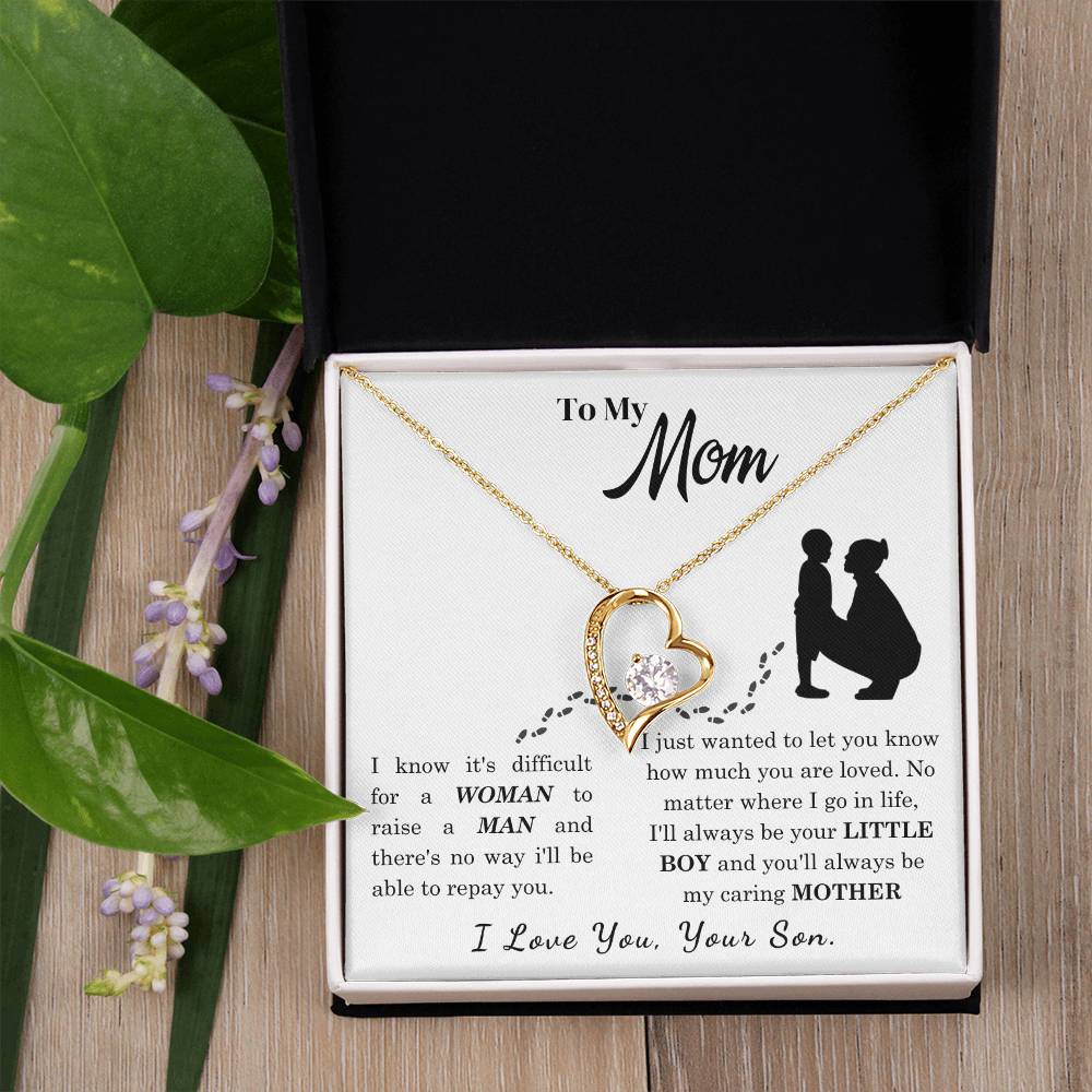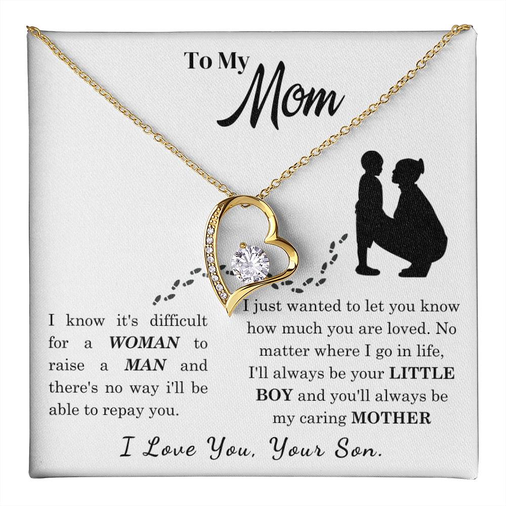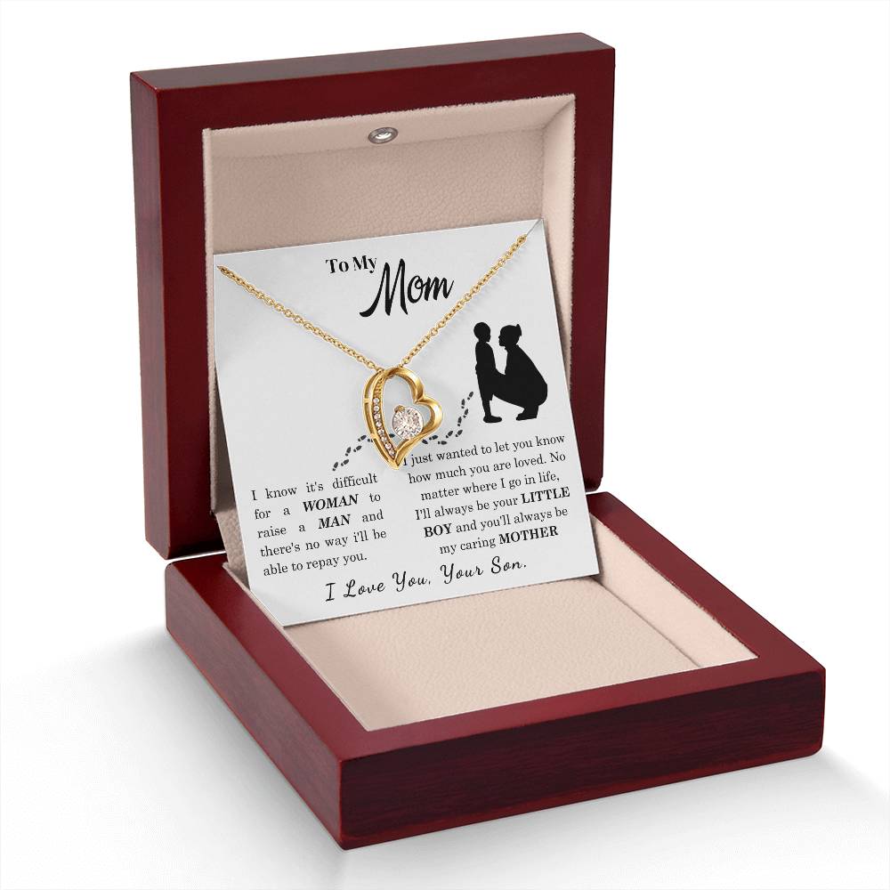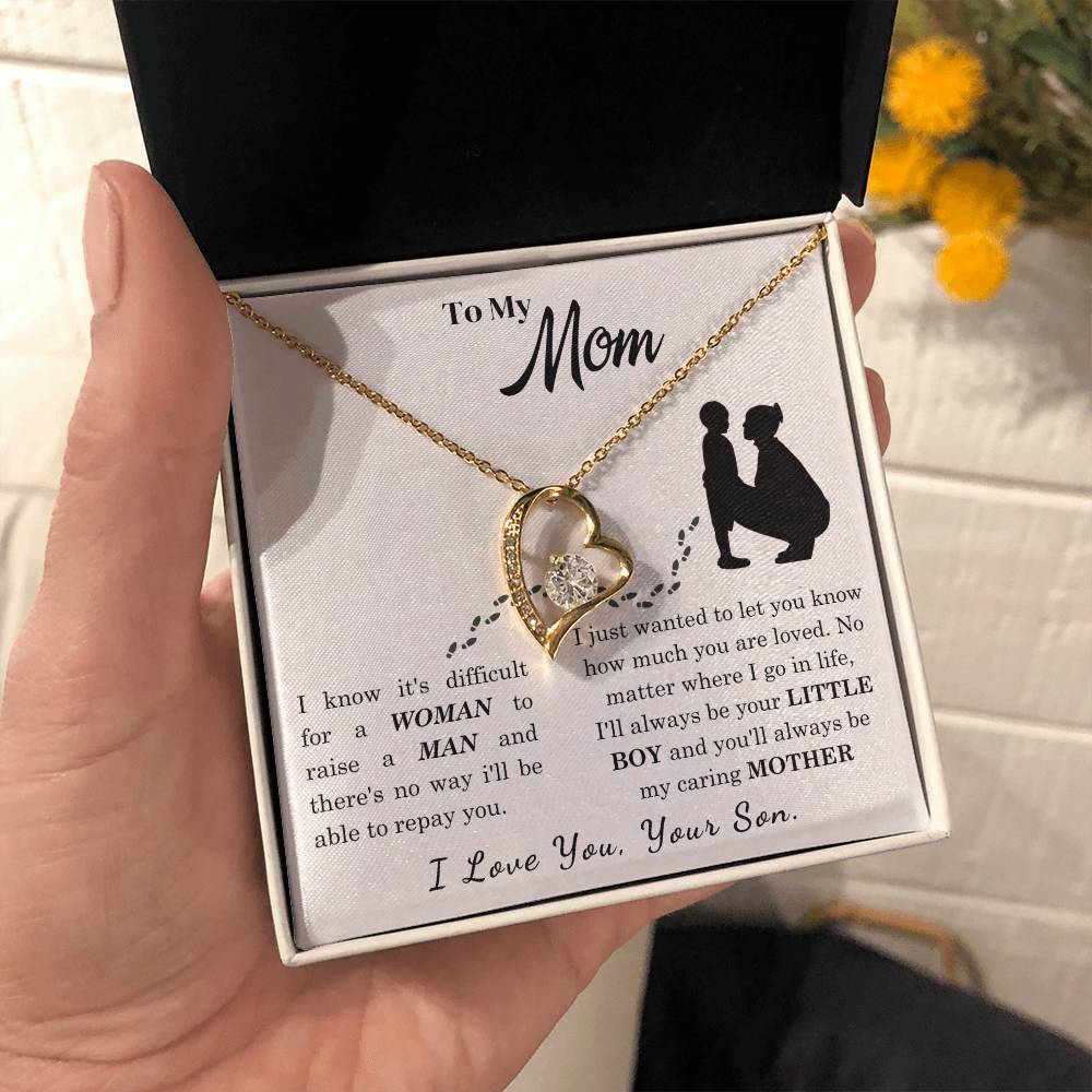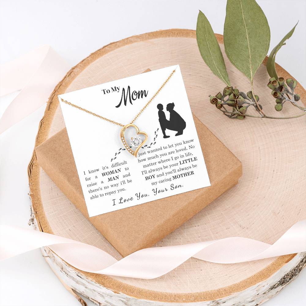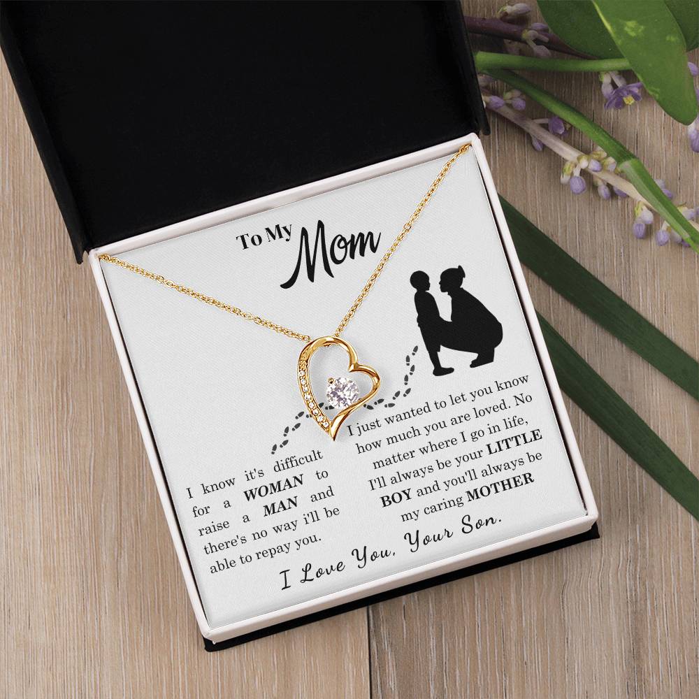 Quote On Card: “I know it's difficult for a WOMAN to raise a MAN and there's no way i'll be able to repay you. I just wanted to let you know how much you are loved. No matter where I go in life, I'll always be your LITTLE BOY and you'll always be my caring MOTHER . I Love You, Your Son.”
