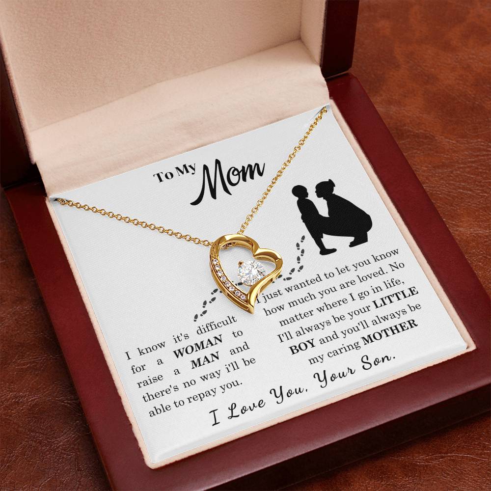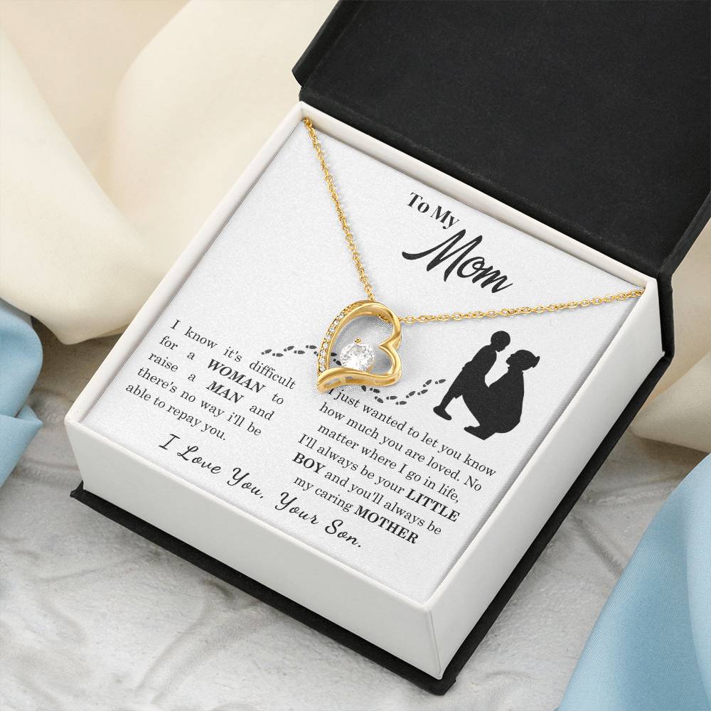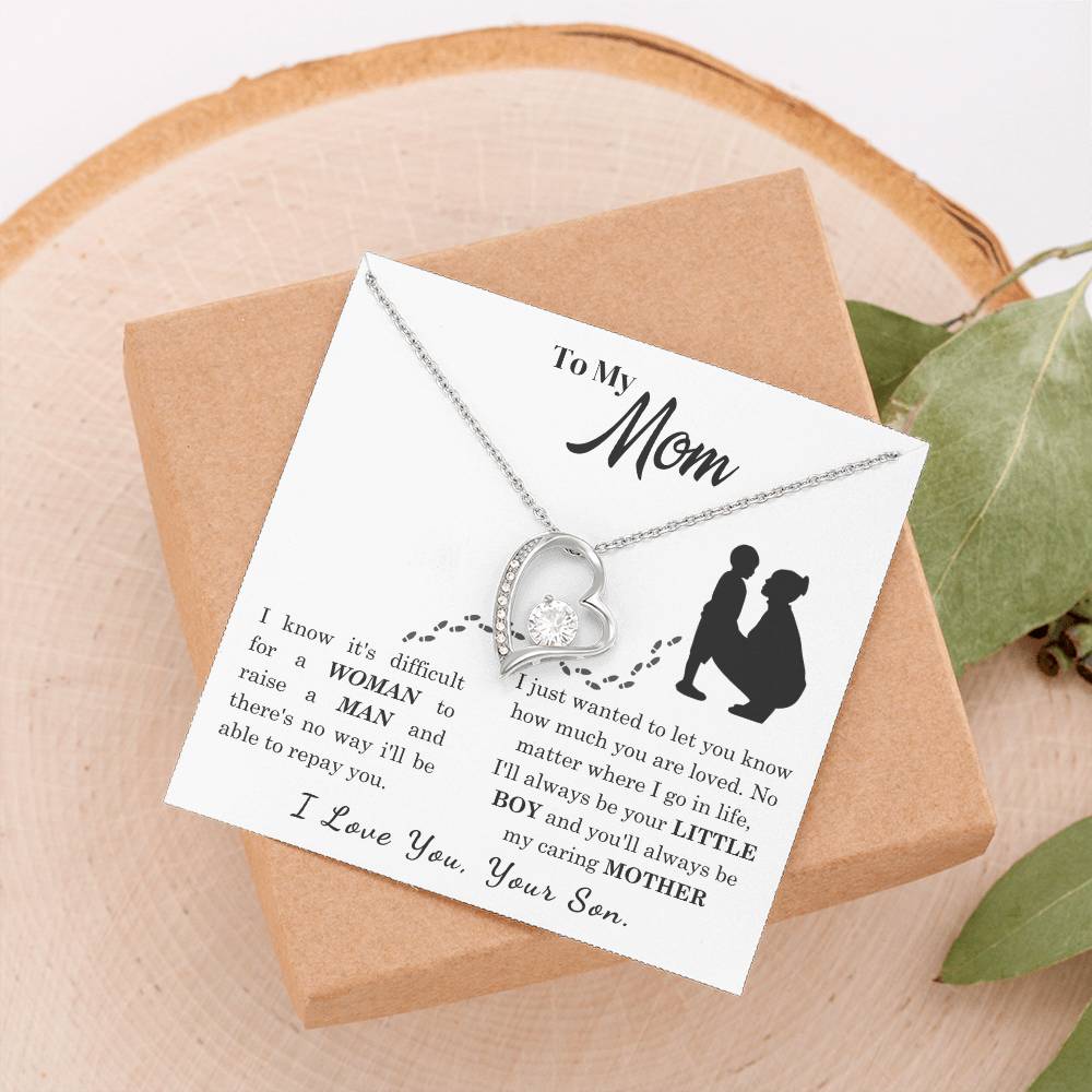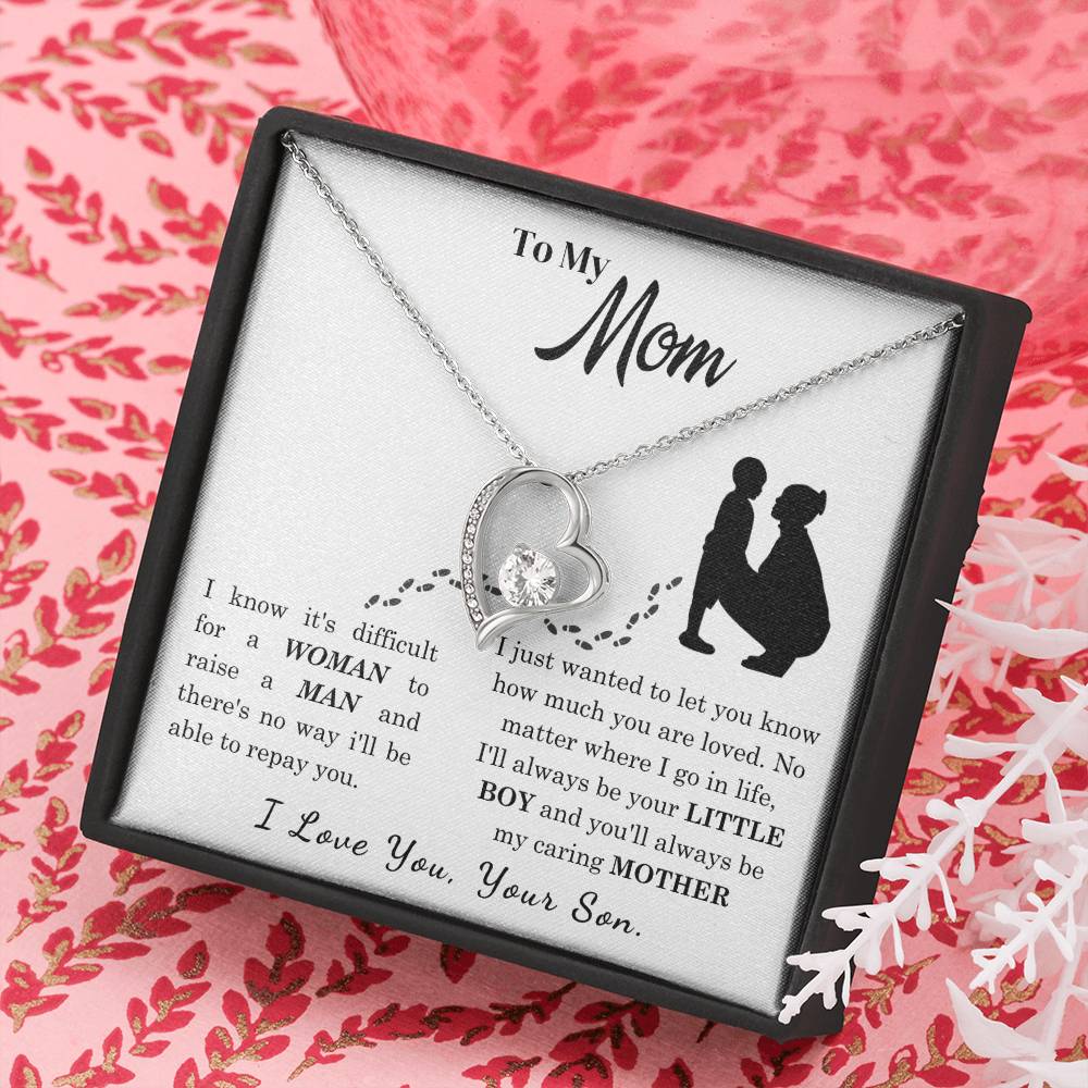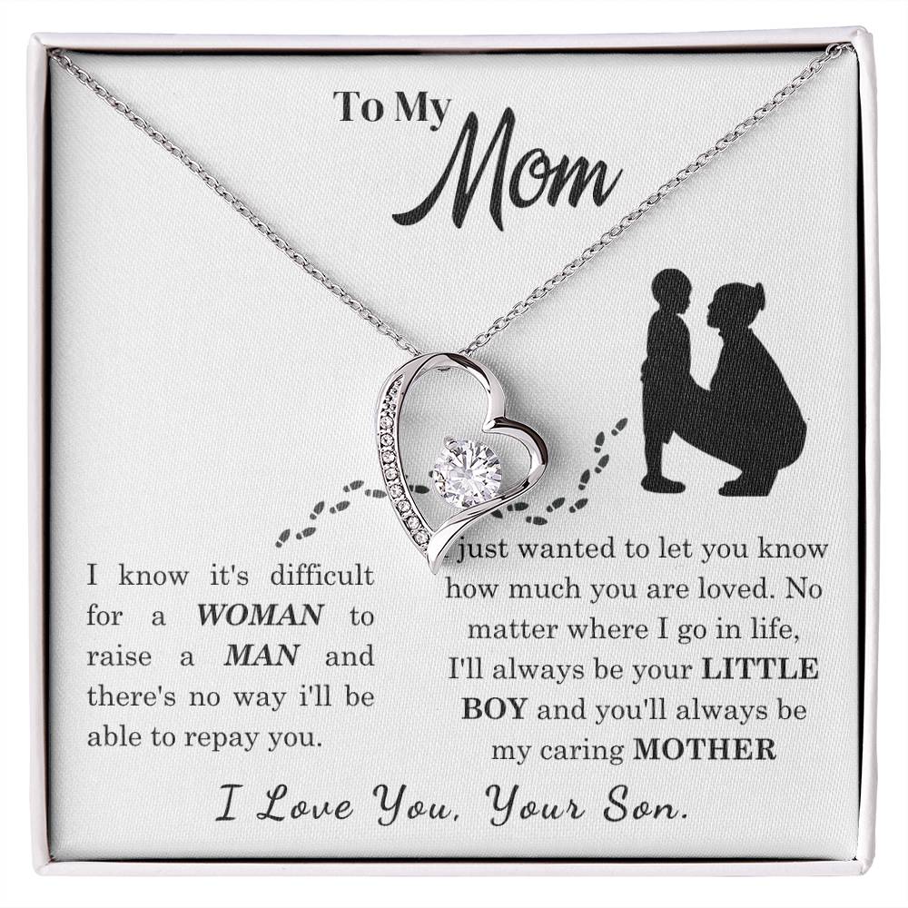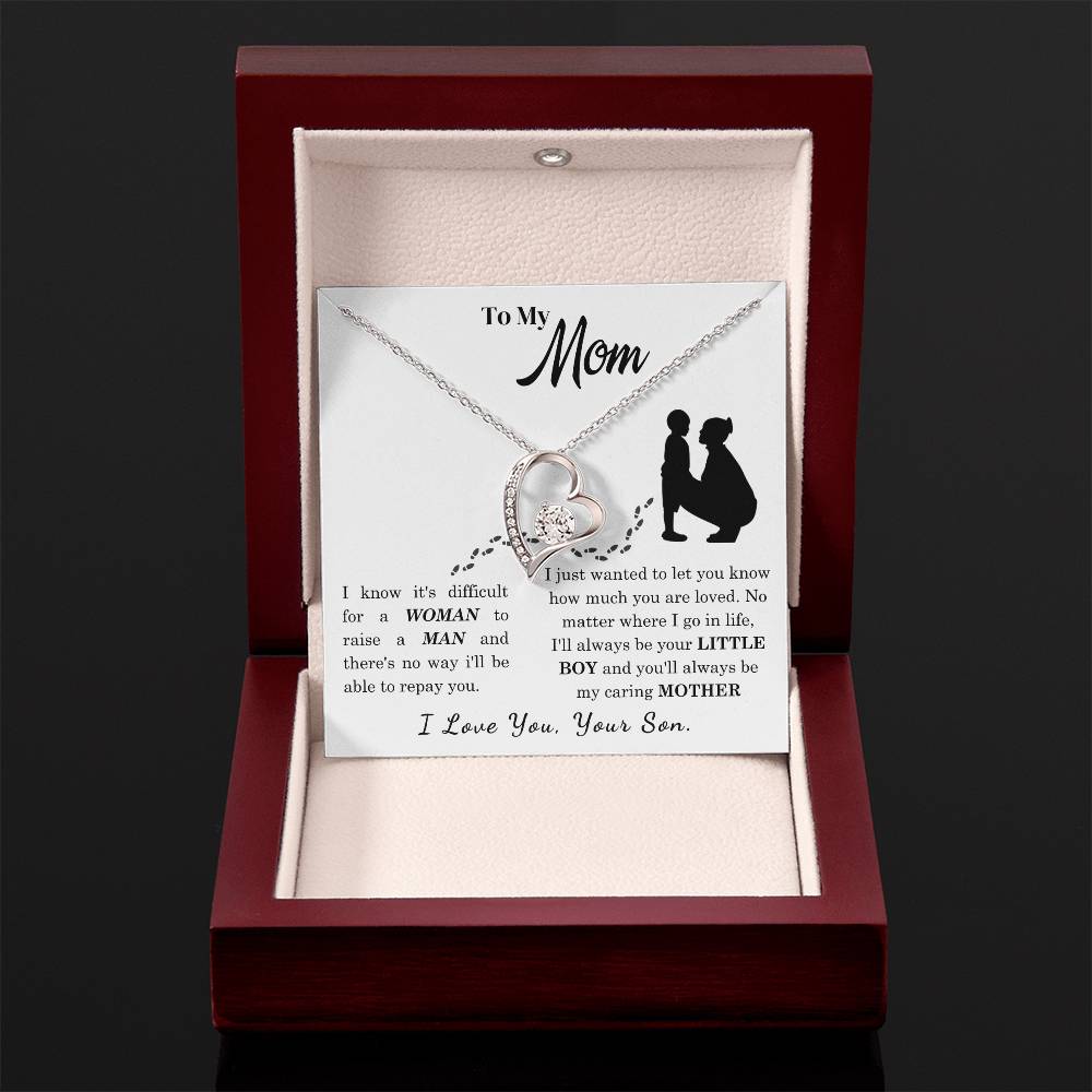 Quote On Card: “I know it's difficult for a WOMAN to raise a MAN and there's no way i'll be able to repay you. I just wanted to let you know how much you are loved. No matter where I go in life, I'll always be your LITTLE BOY and you'll always be my caring MOTHER . I Love You, Your Son.”