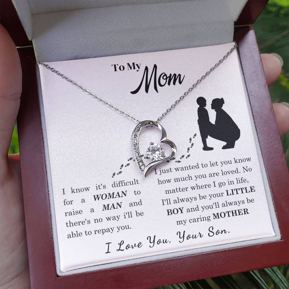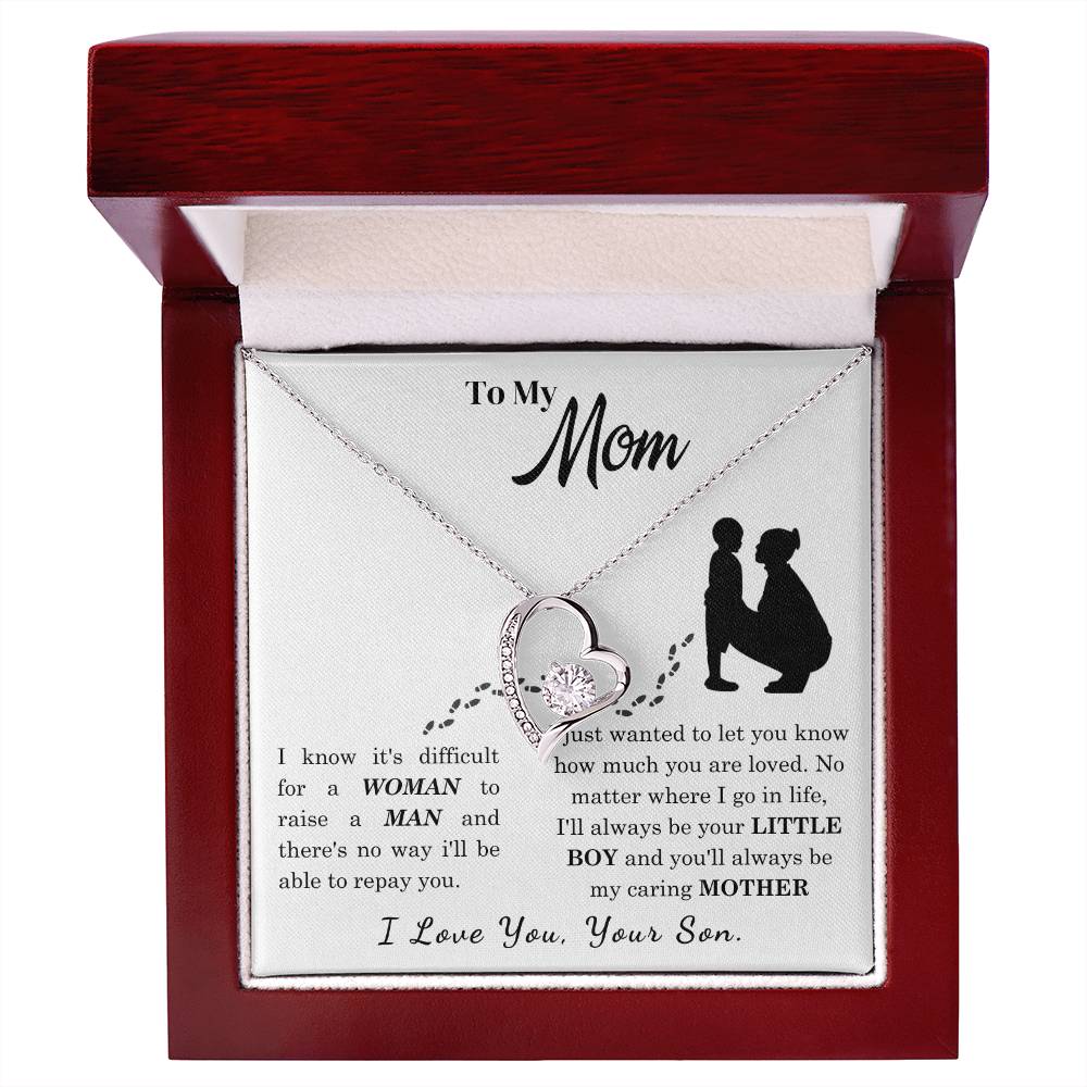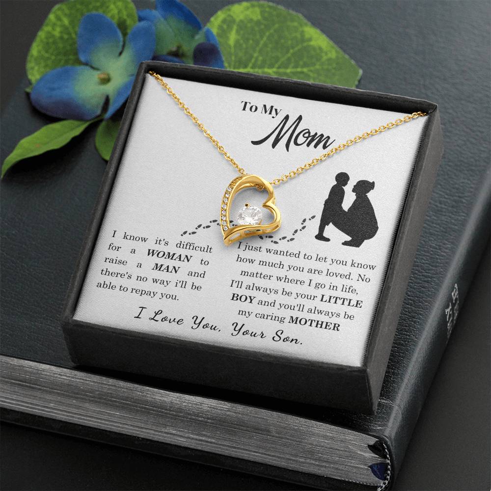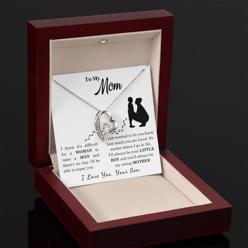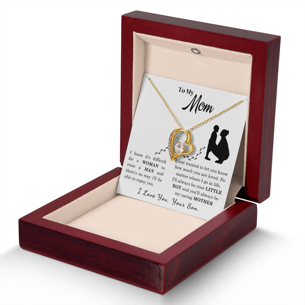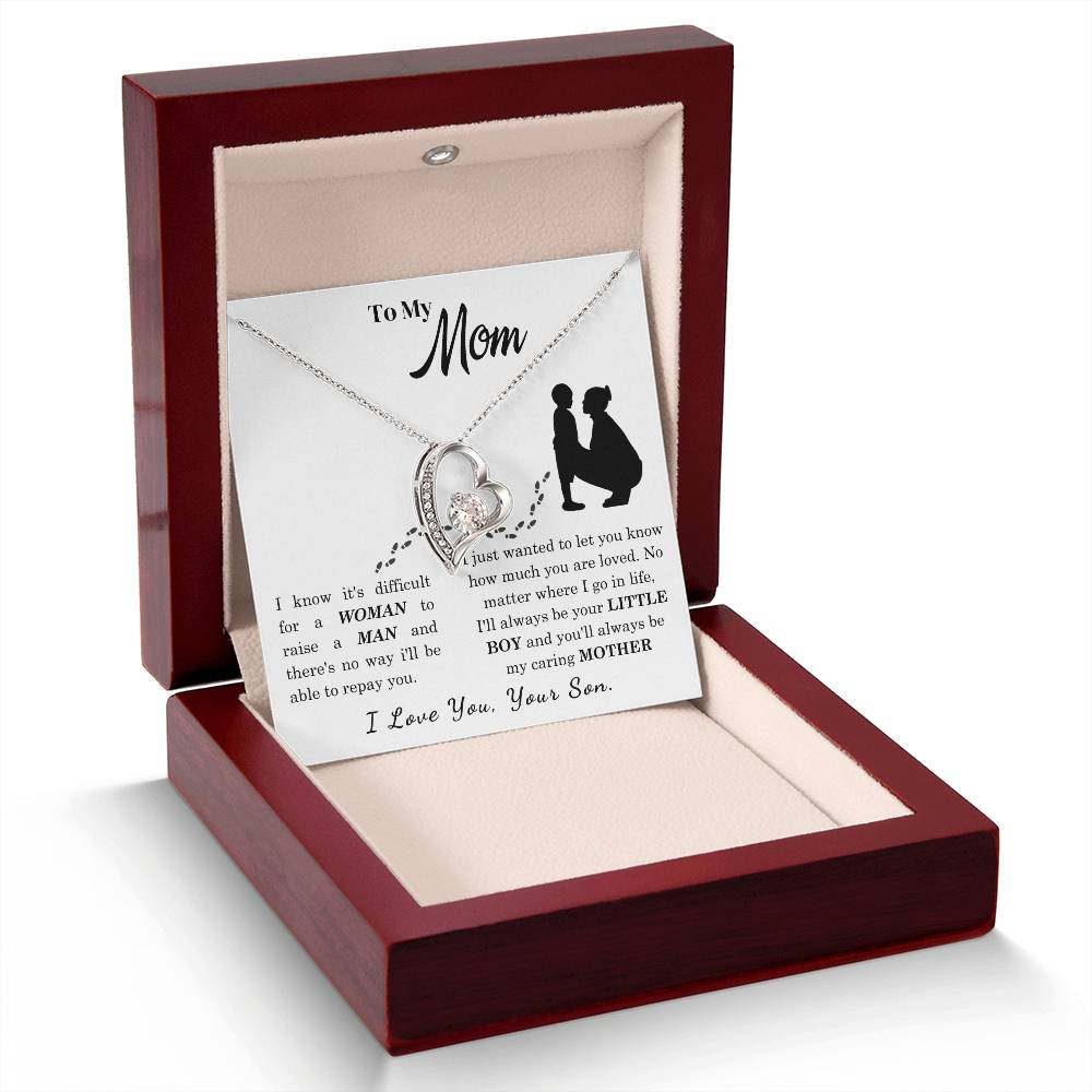 Quote On Card: “I know it's difficult for a WOMAN to raise a MAN and there's no way i'll be able to repay you. I just wanted to let you know how much you are loved. No matter where I go in life, I'll always be your LITTLE BOY and you'll always be my caring MOTHER . I Love You, Your Son.”