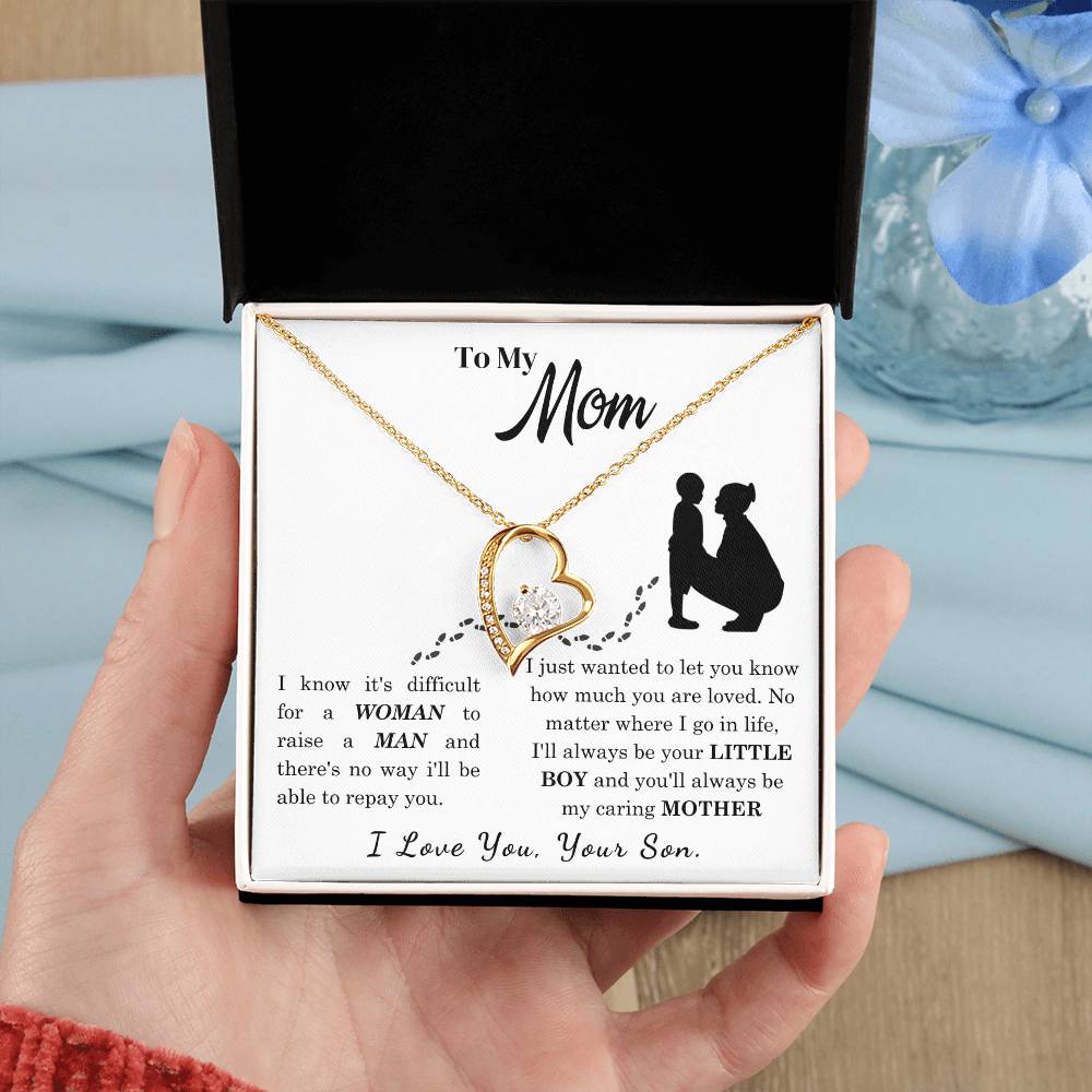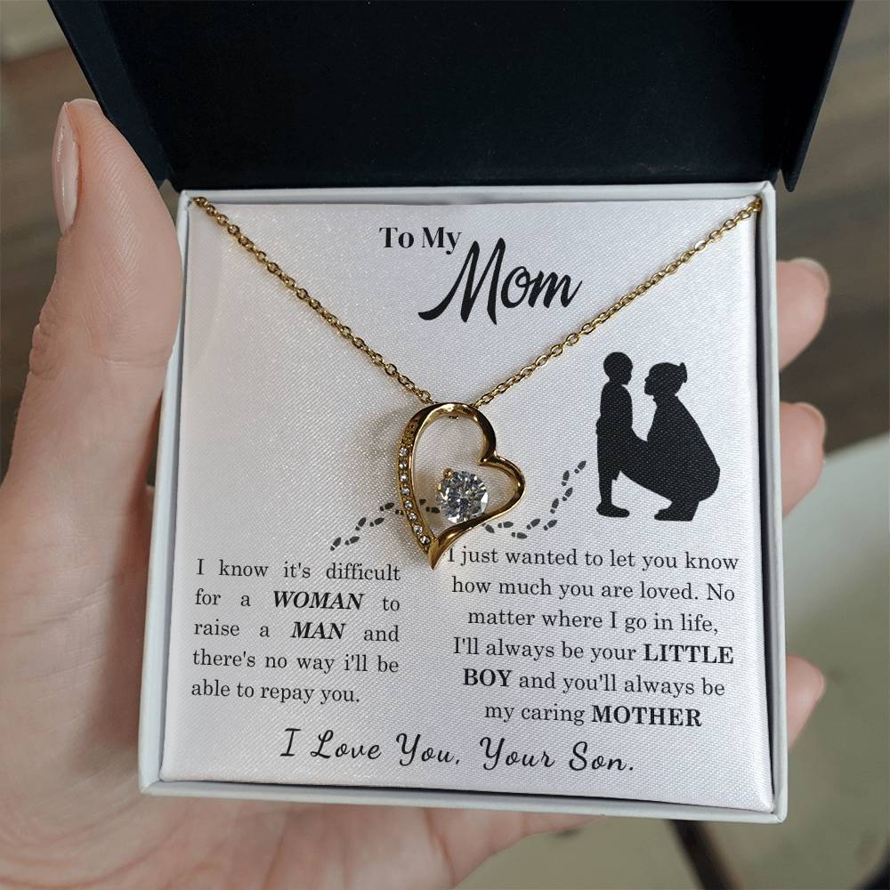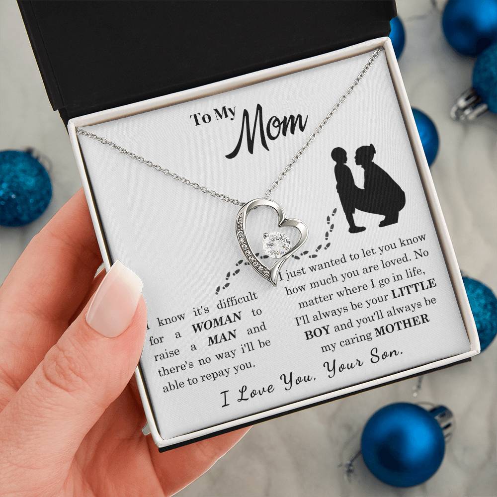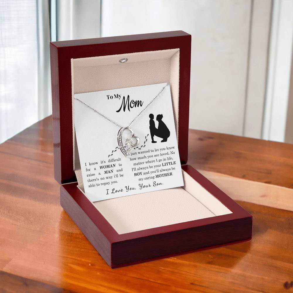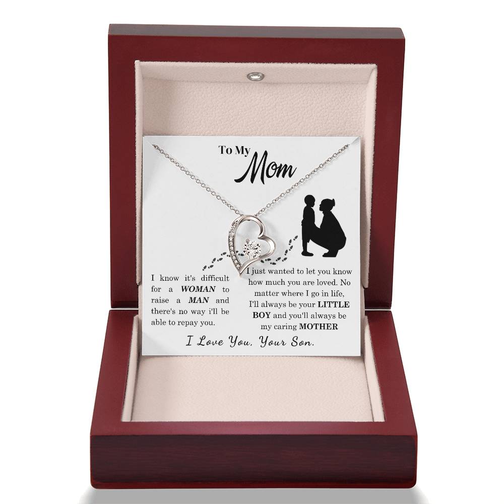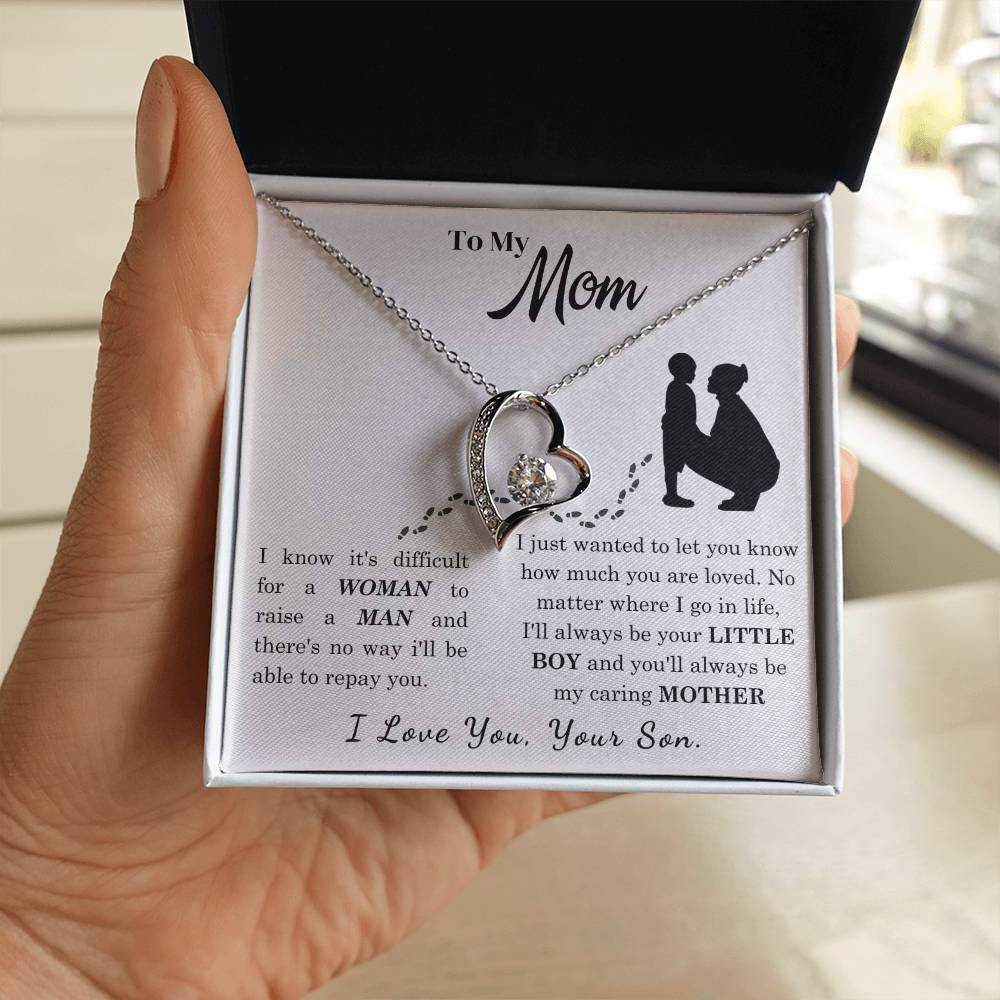Quote On Card: “I know it's difficult for a WOMAN to raise a MAN and there's no way i'll be able to repay you. I just wanted to let you know how much you are loved. No matter where I go in life, I'll always be your LITTLE BOY and you'll always be my caring MOTHER . I Love You, Your Son.”