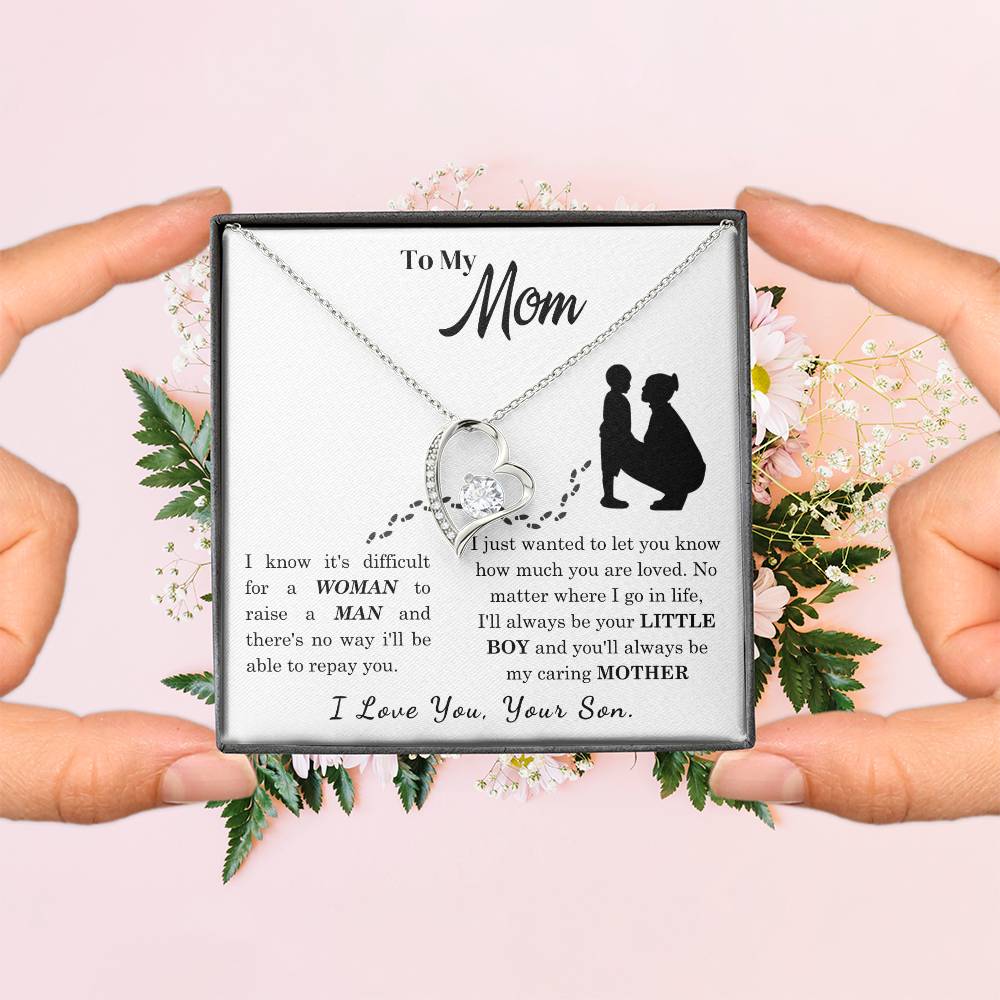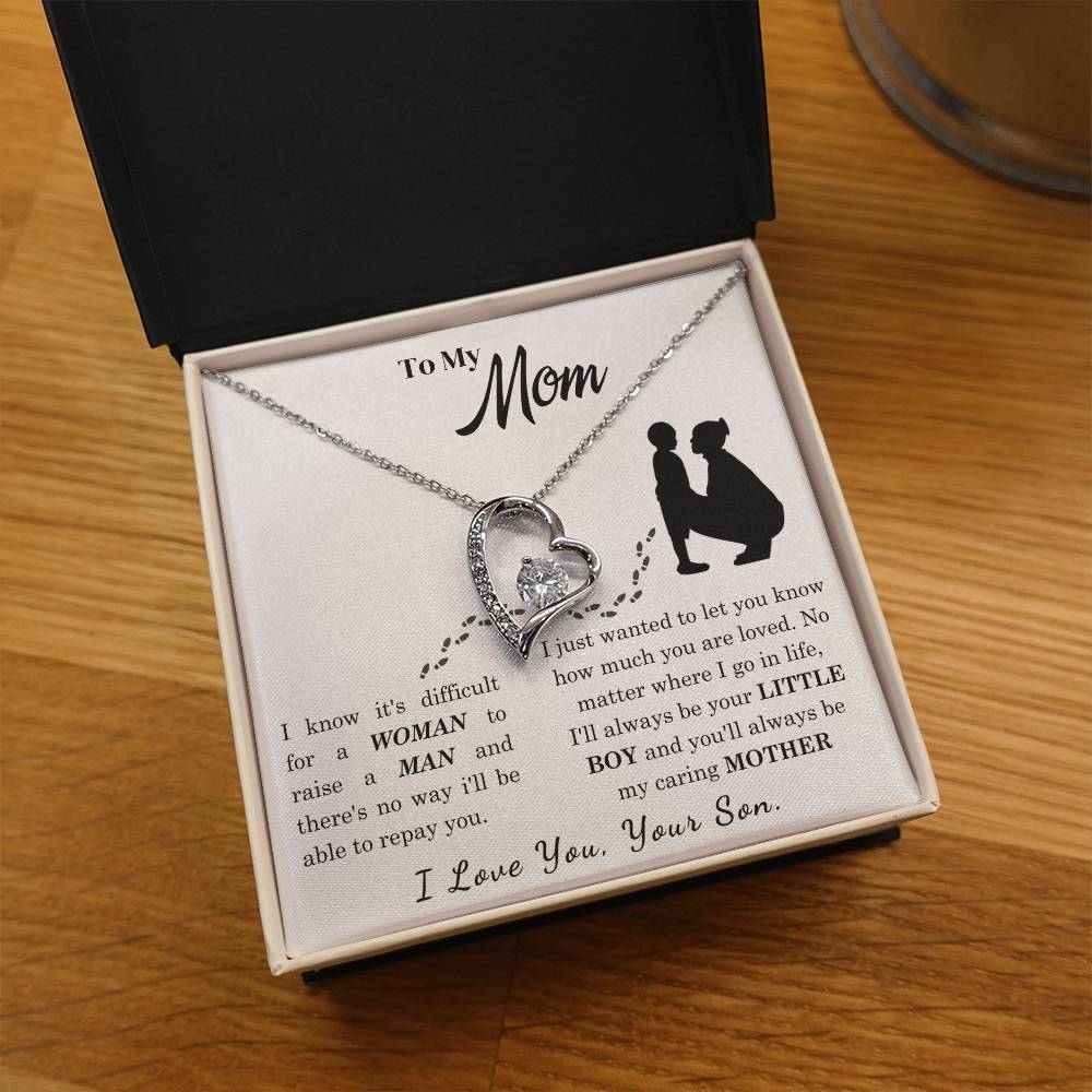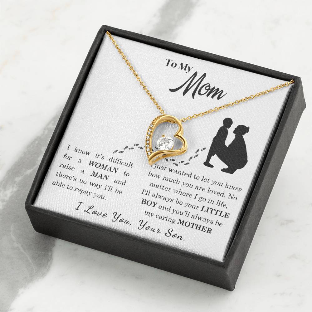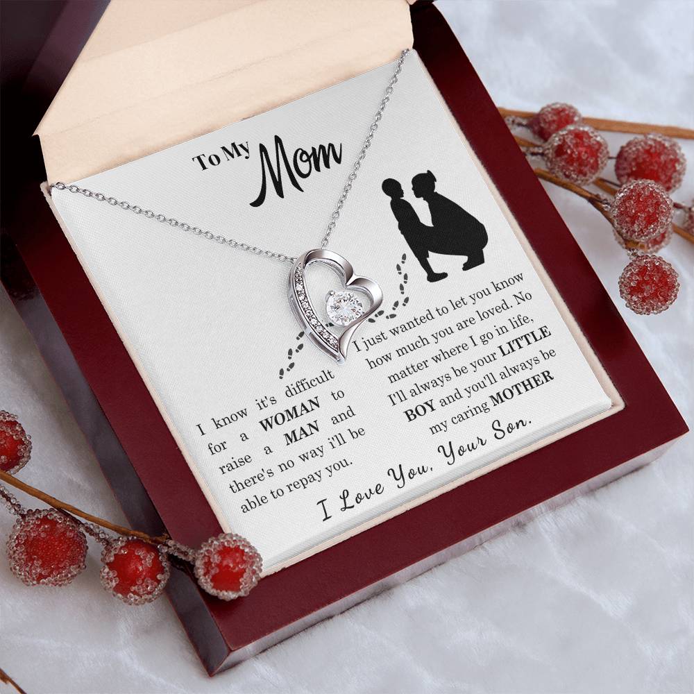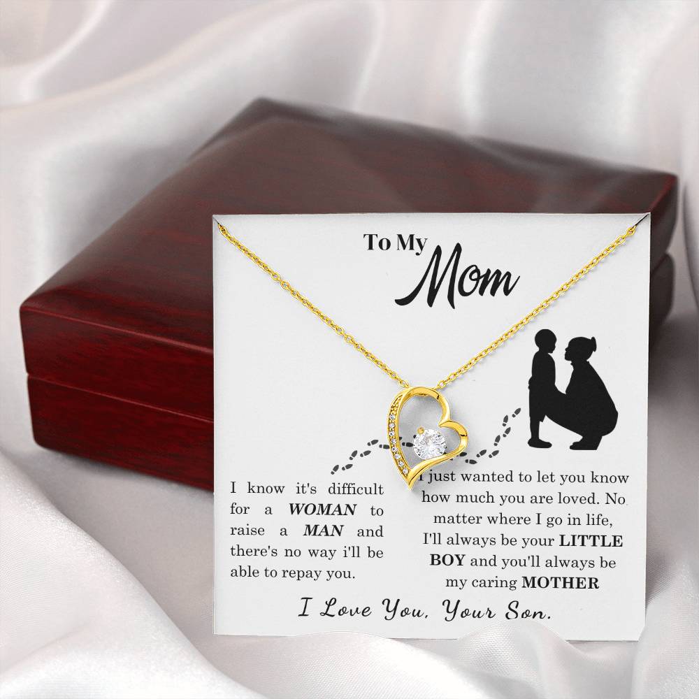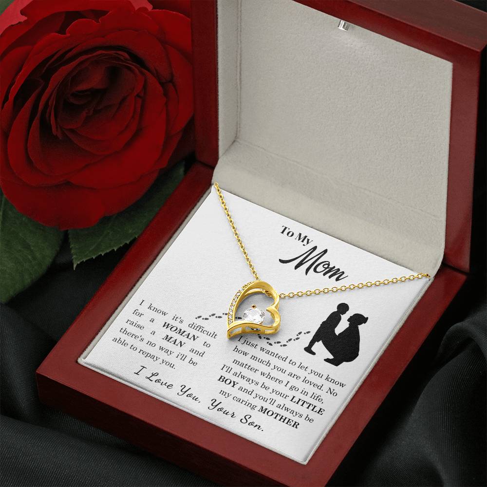 Quote On Card: “I know it's difficult for a WOMAN to raise a MAN and there's no way i'll be able to repay you. I just wanted to let you know how much you are loved. No matter where I go in life, I'll always be your LITTLE BOY and you'll always be my caring MOTHER . I Love You, Your Son.”