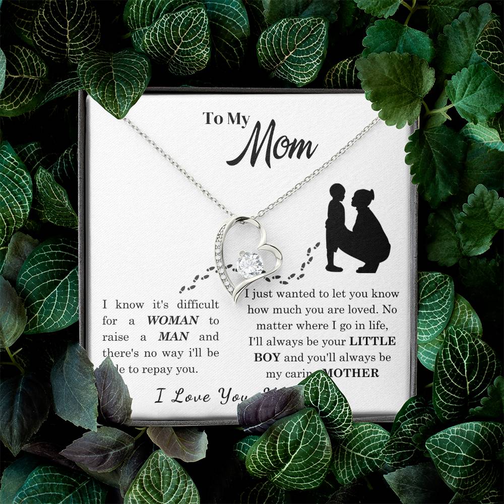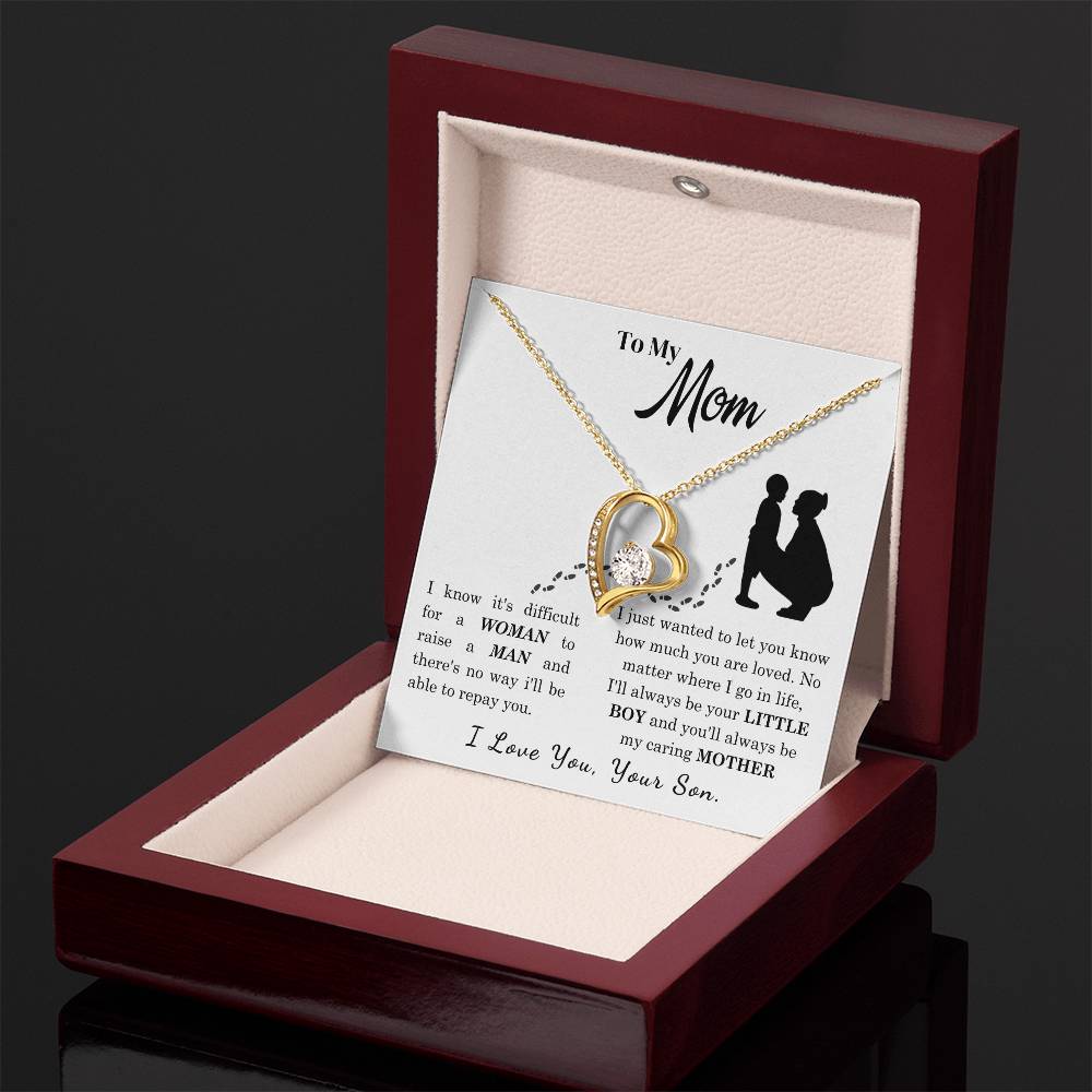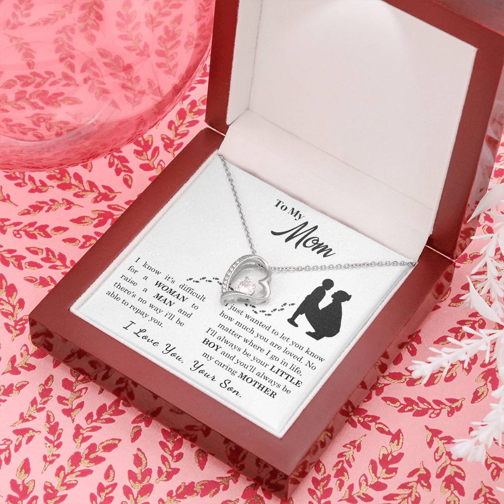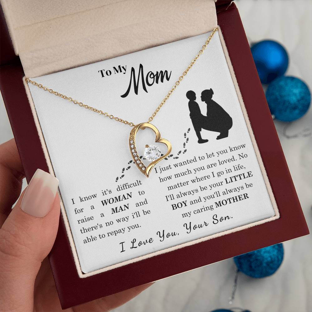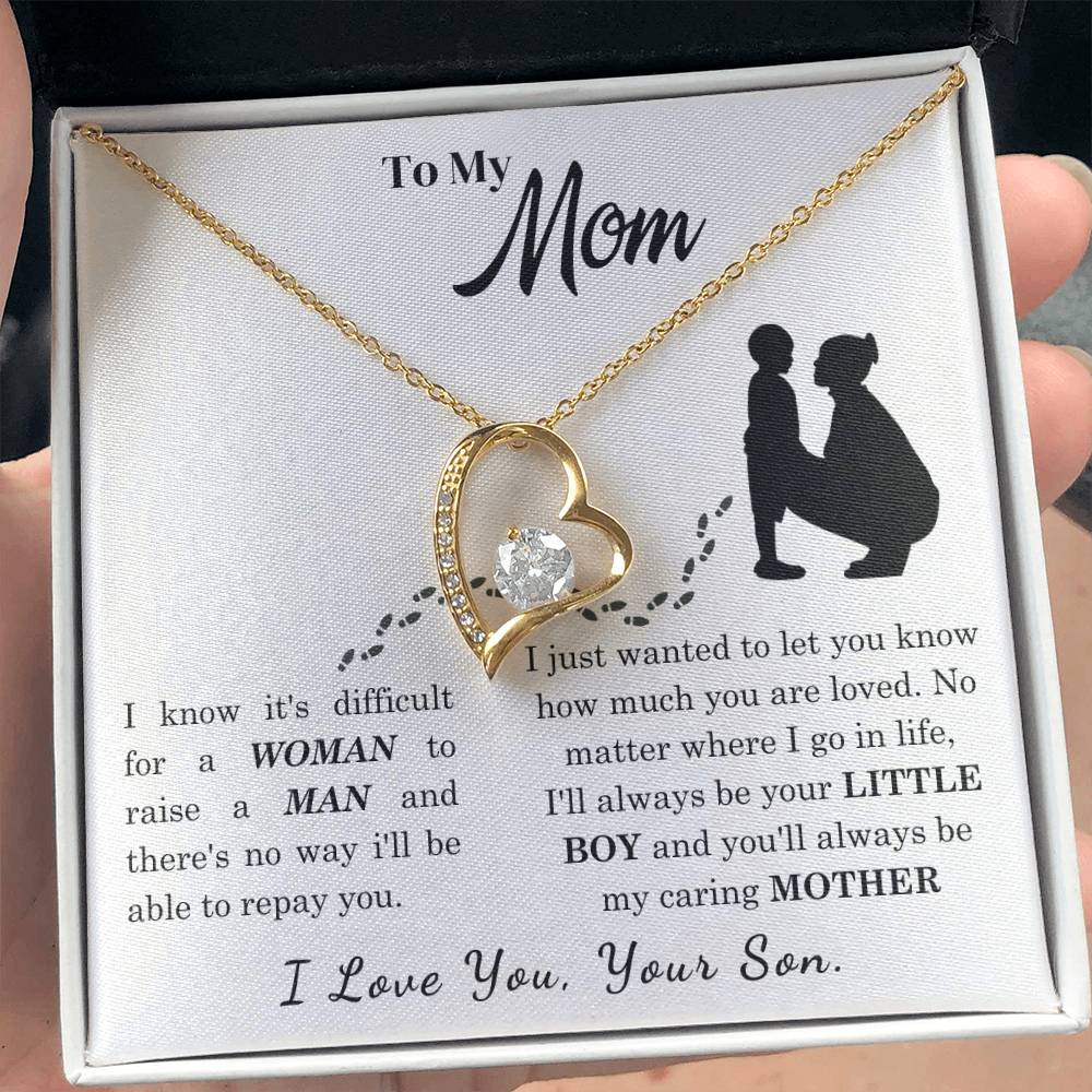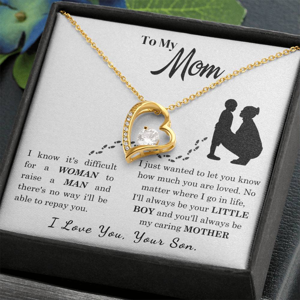 Quote On Card: “I know it's difficult for a WOMAN to raise a MAN and there's no way i'll be able to repay you. I just wanted to let you know how much you are loved. No matter where I go in life, I'll always be your LITTLE BOY and you'll always be my caring MOTHER . I Love You, Your Son.”