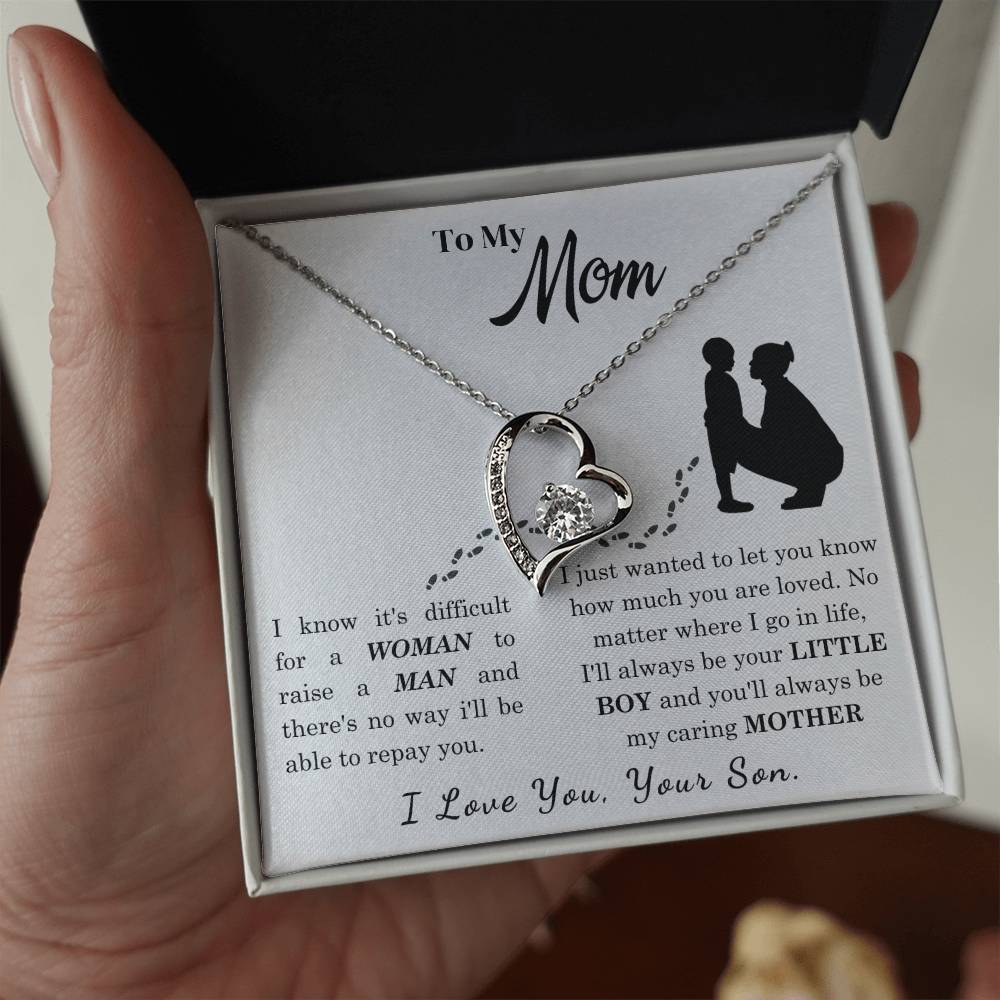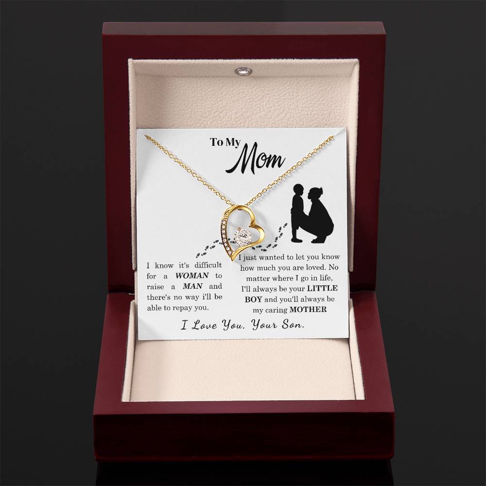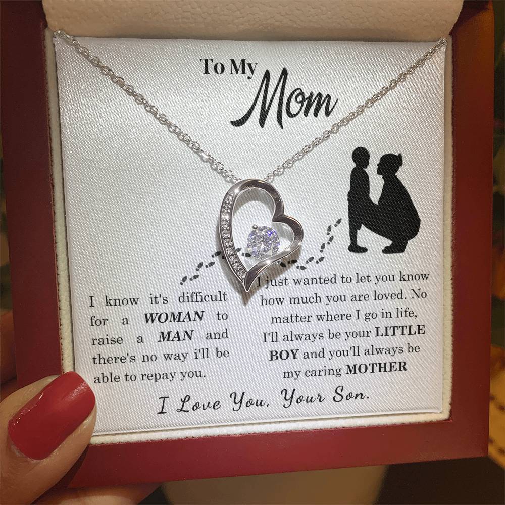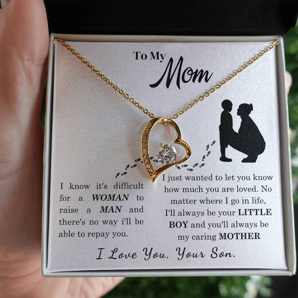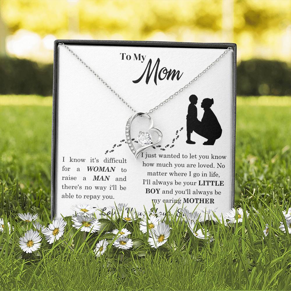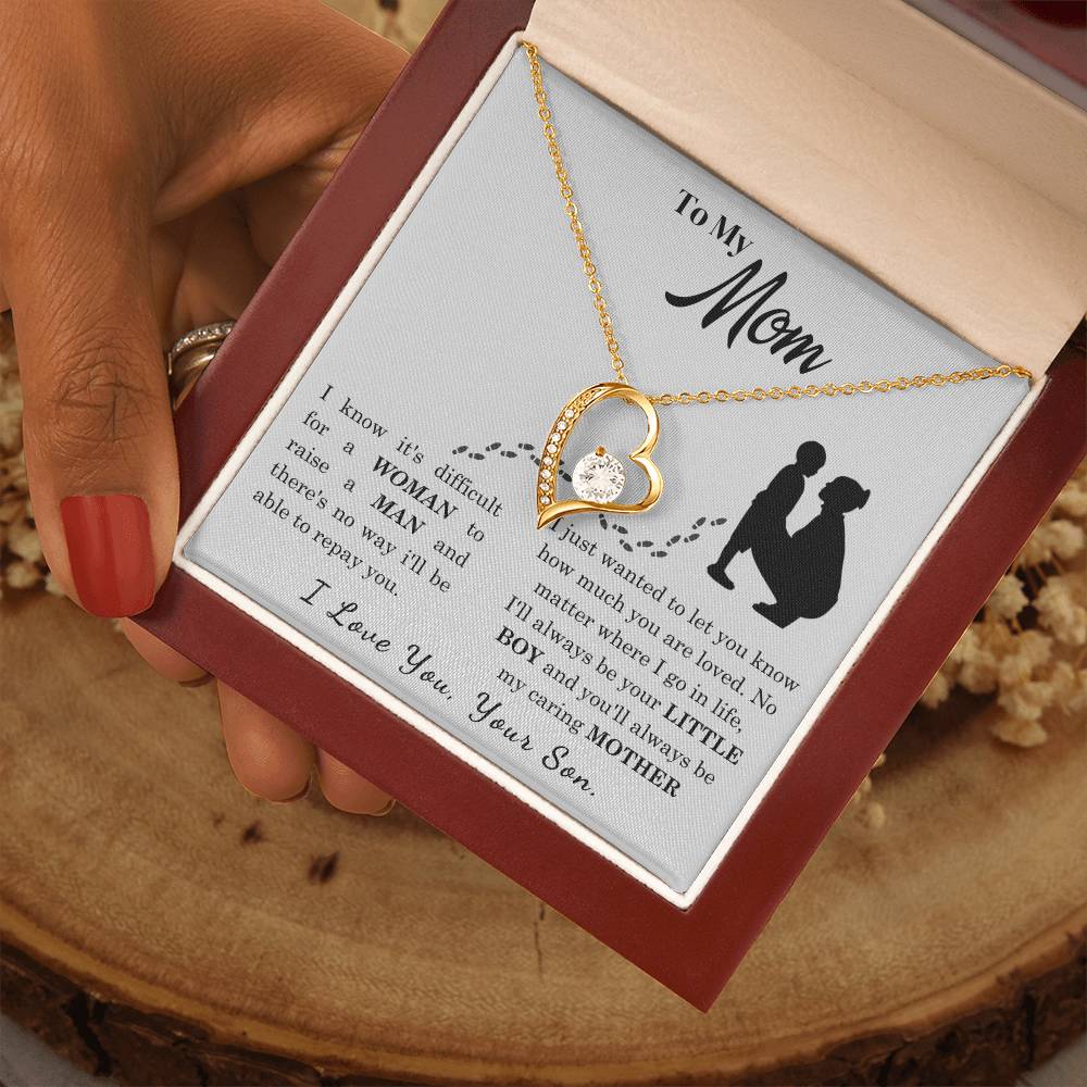 Quote On Card: “I know it's difficult for a WOMAN to raise a MAN and there's no way i'll be able to repay you. I just wanted to let you know how much you are loved. No matter where I go in life, I'll always be your LITTLE BOY and you'll always be my caring MOTHER . I Love You, Your Son.”