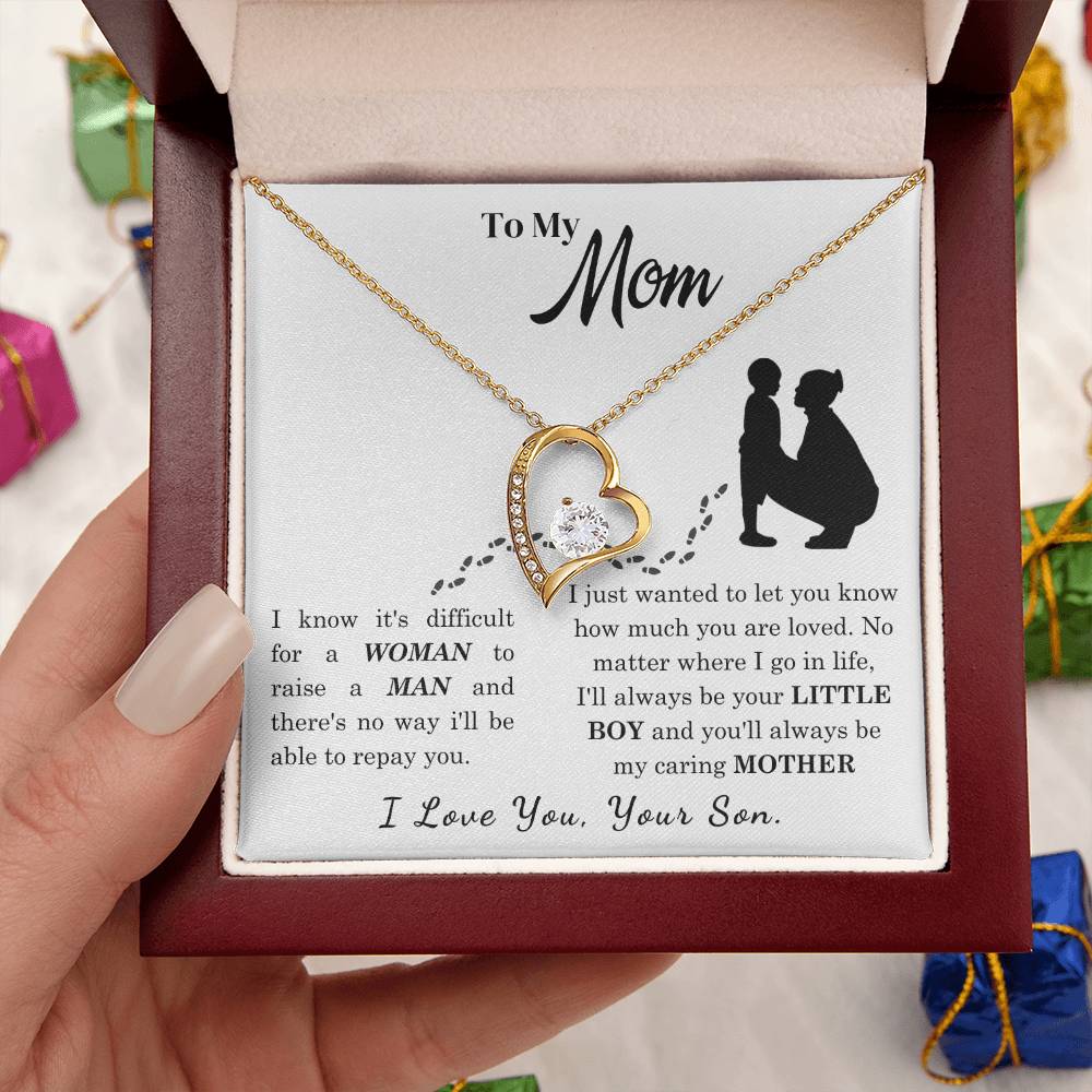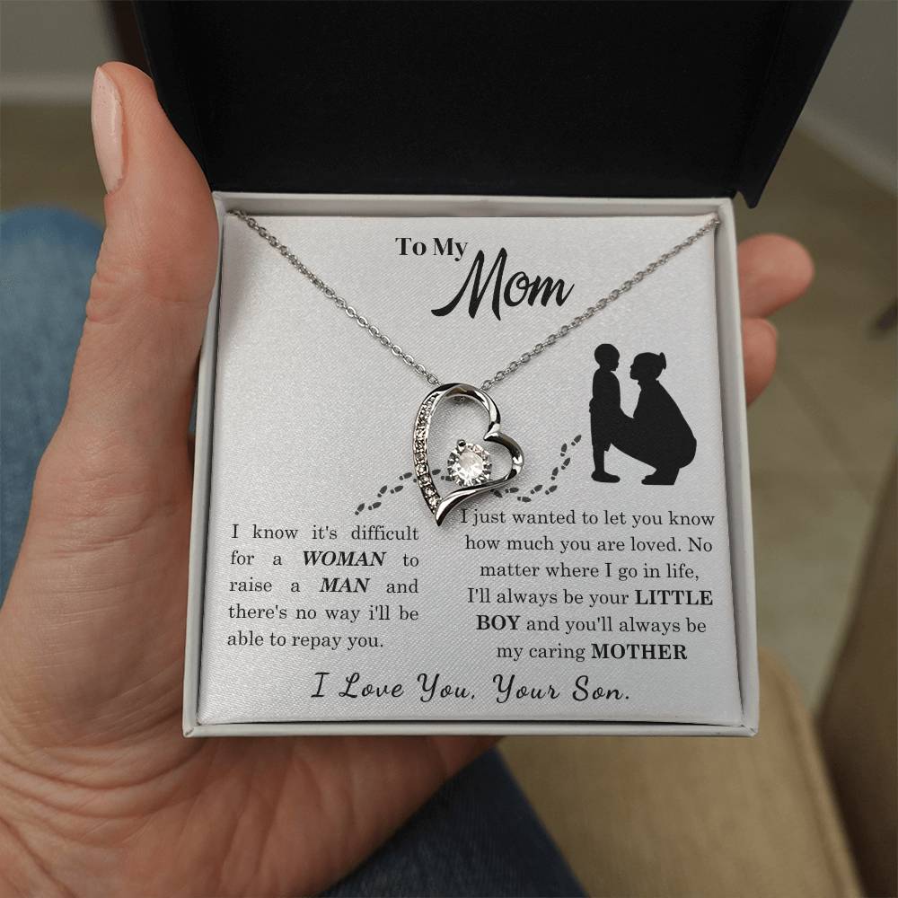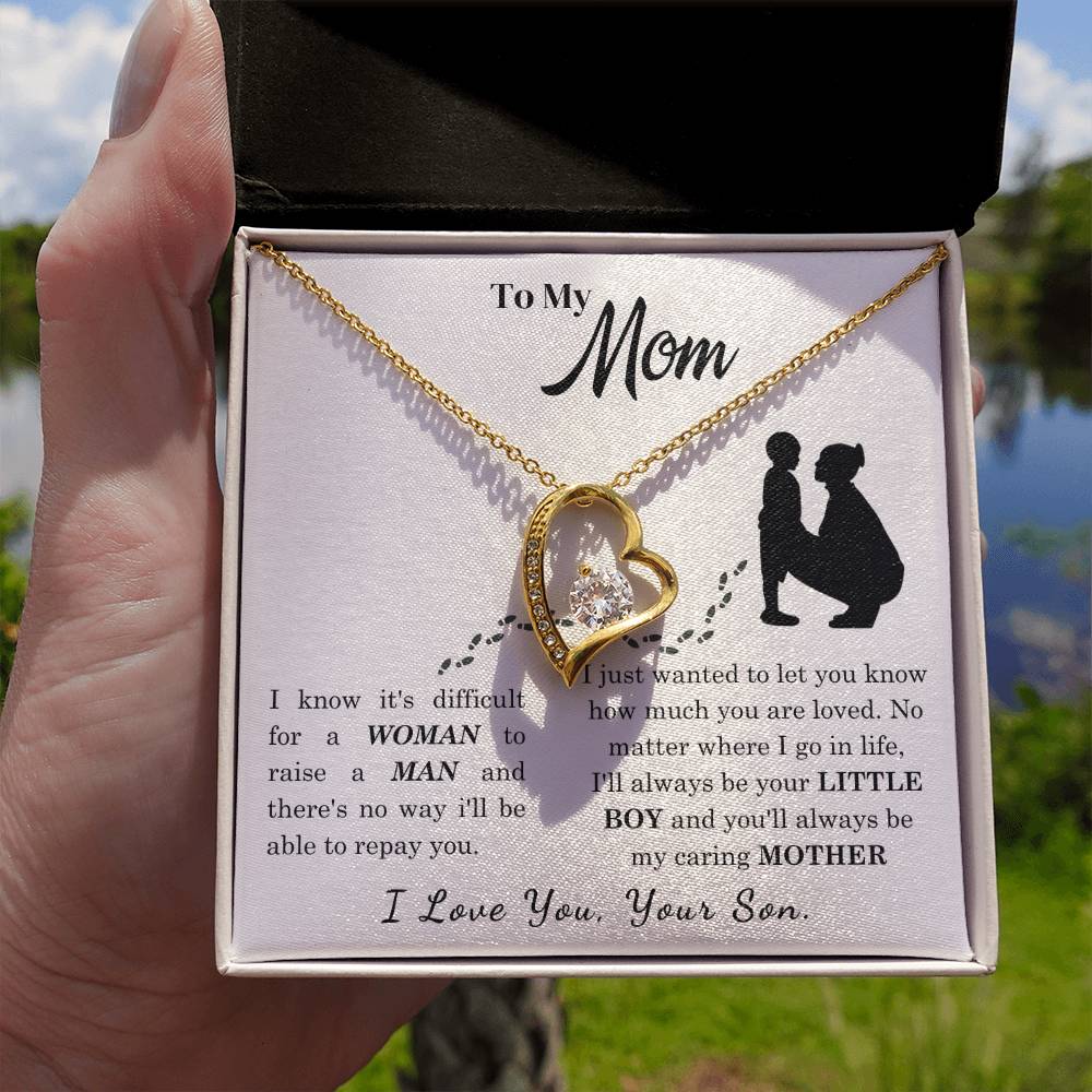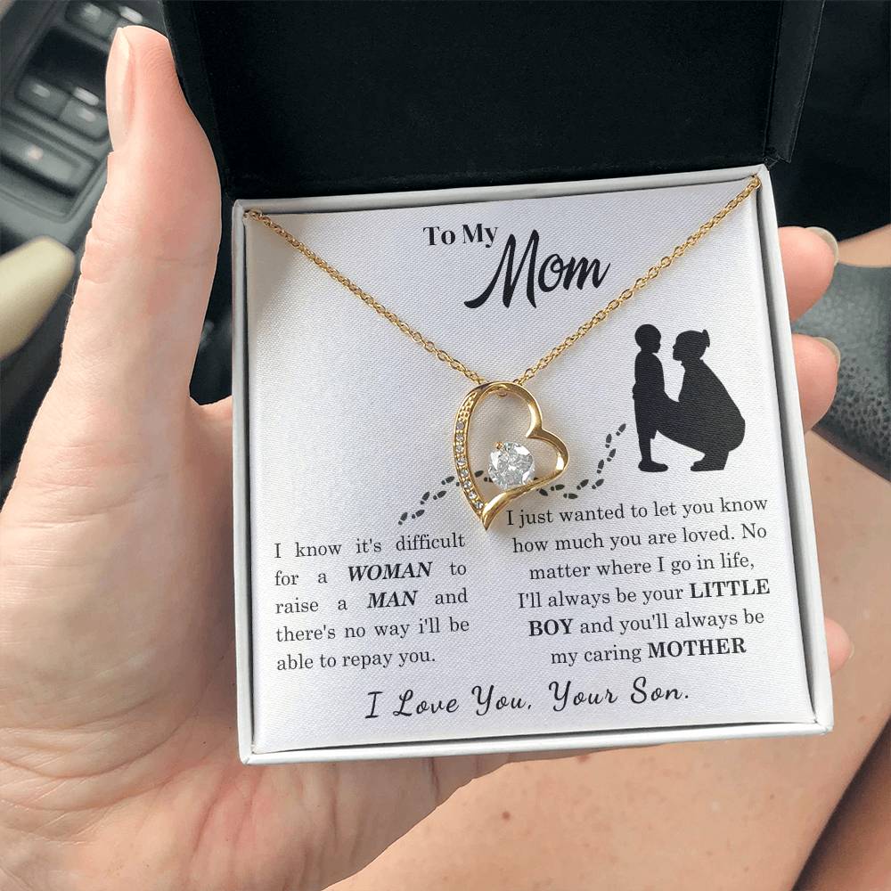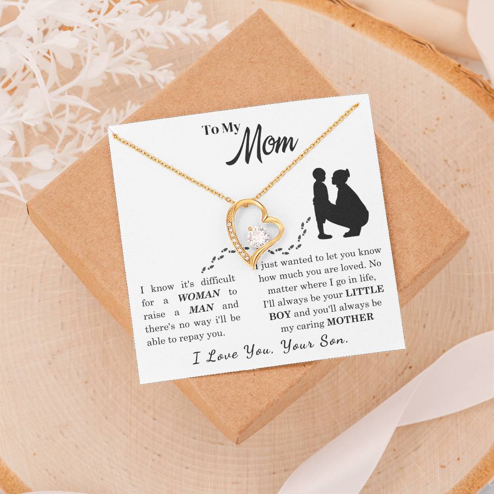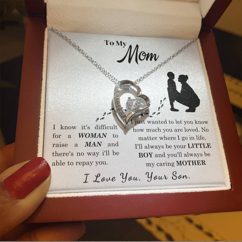 Quote On Card: “I know it's difficult for a WOMAN to raise a MAN and there's no way i'll be able to repay you. I just wanted to let you know how much you are loved. No matter where I go in life, I'll always be your LITTLE BOY and you'll always be my caring MOTHER . I Love You, Your Son.”