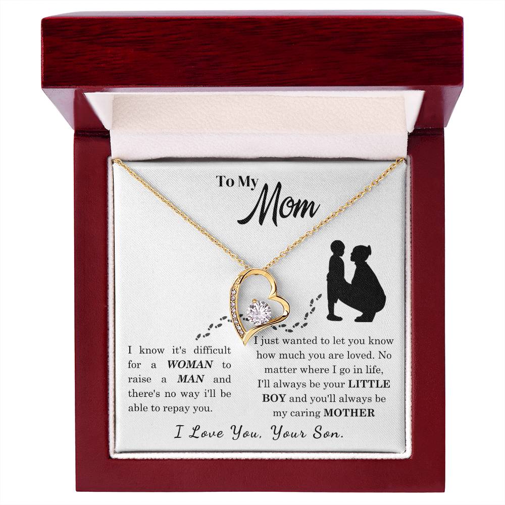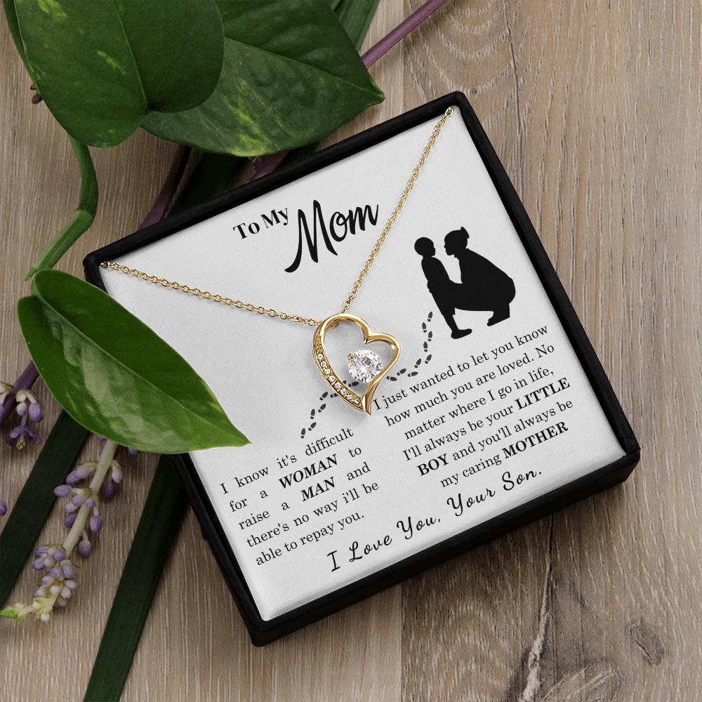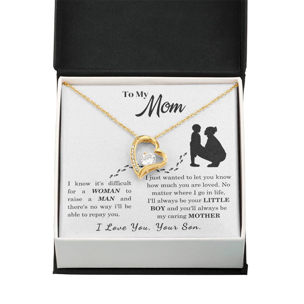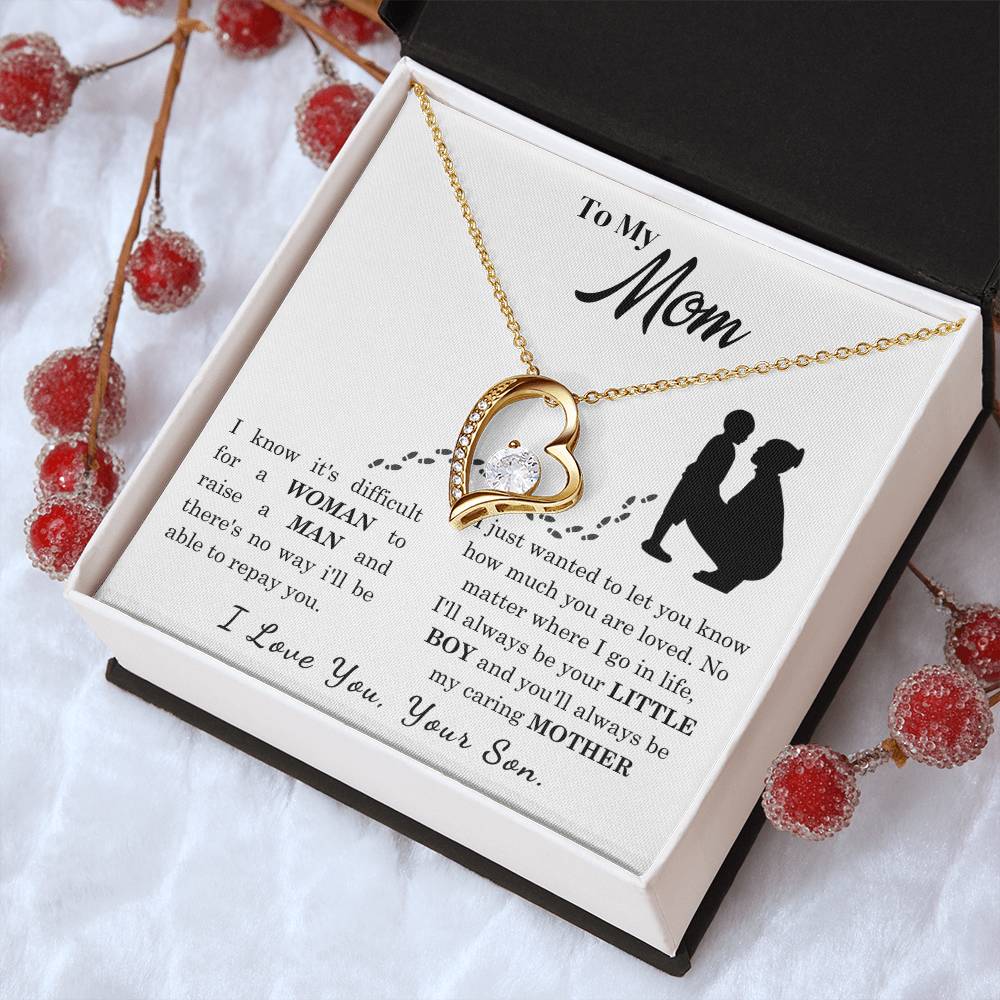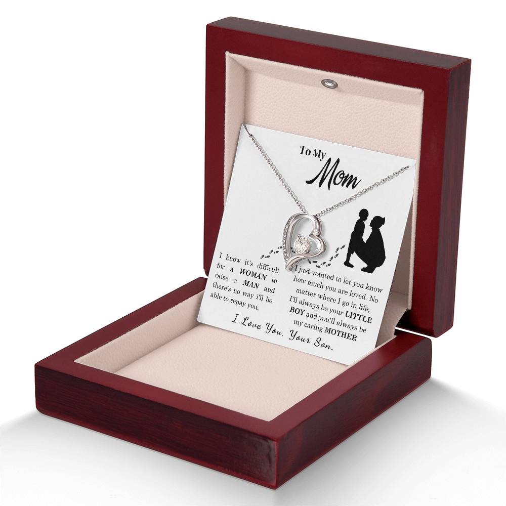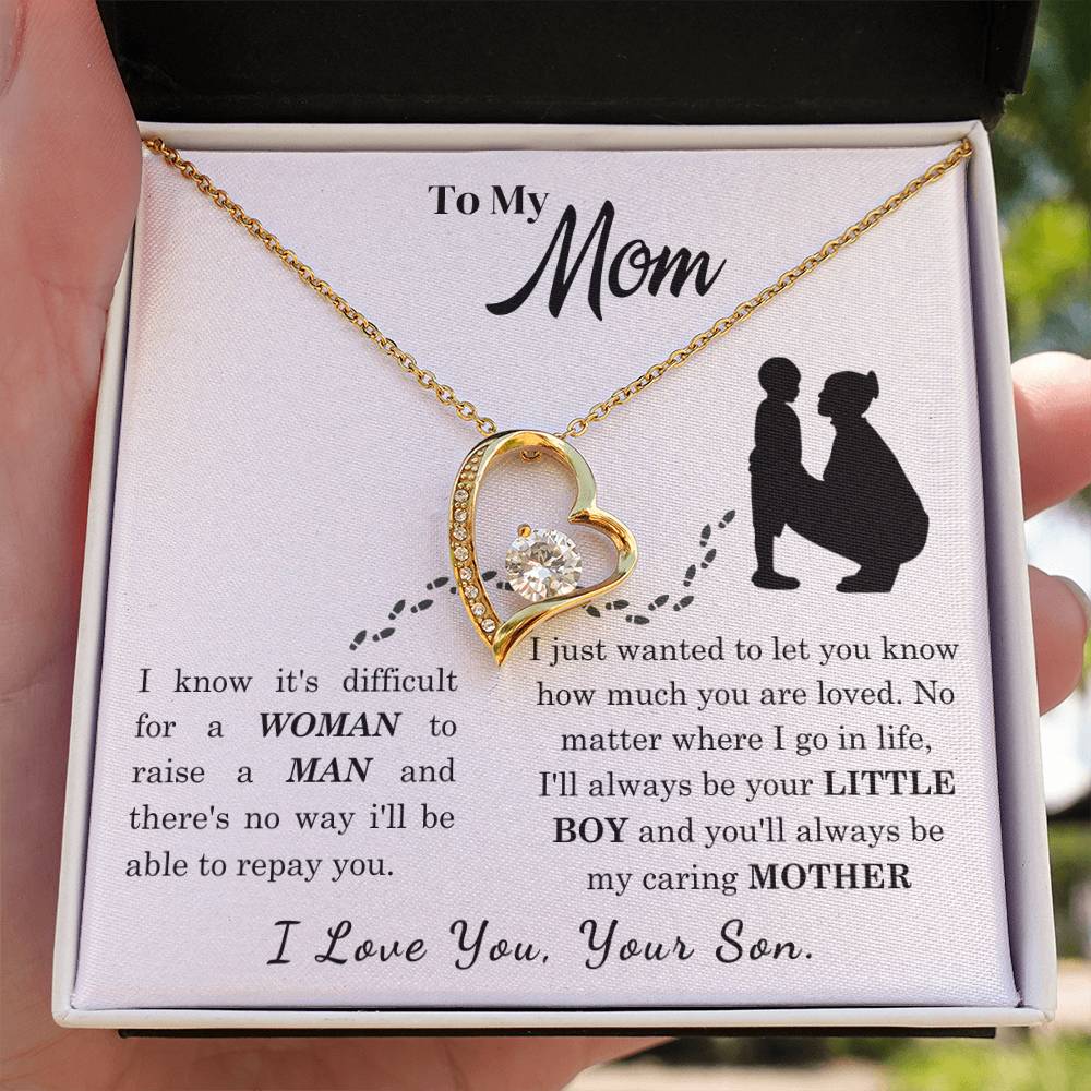 Quote On Card: “I know it's difficult for a WOMAN to raise a MAN and there's no way i'll be able to repay you. I just wanted to let you know how much you are loved. No matter where I go in life, I'll always be your LITTLE BOY and you'll always be my caring MOTHER . I Love You, Your Son.”