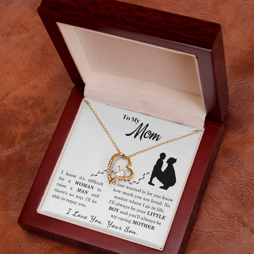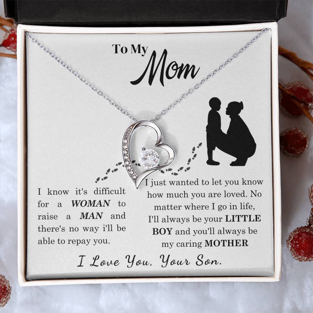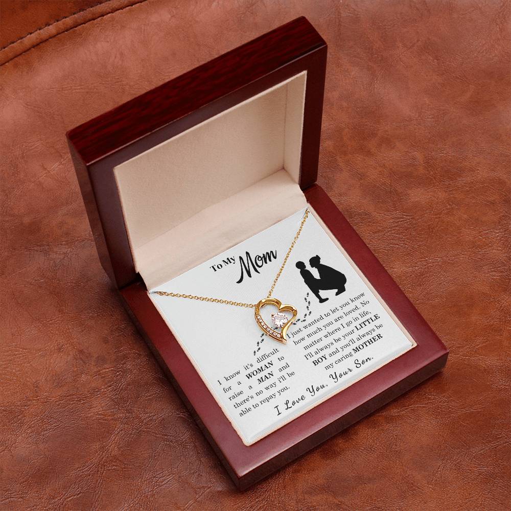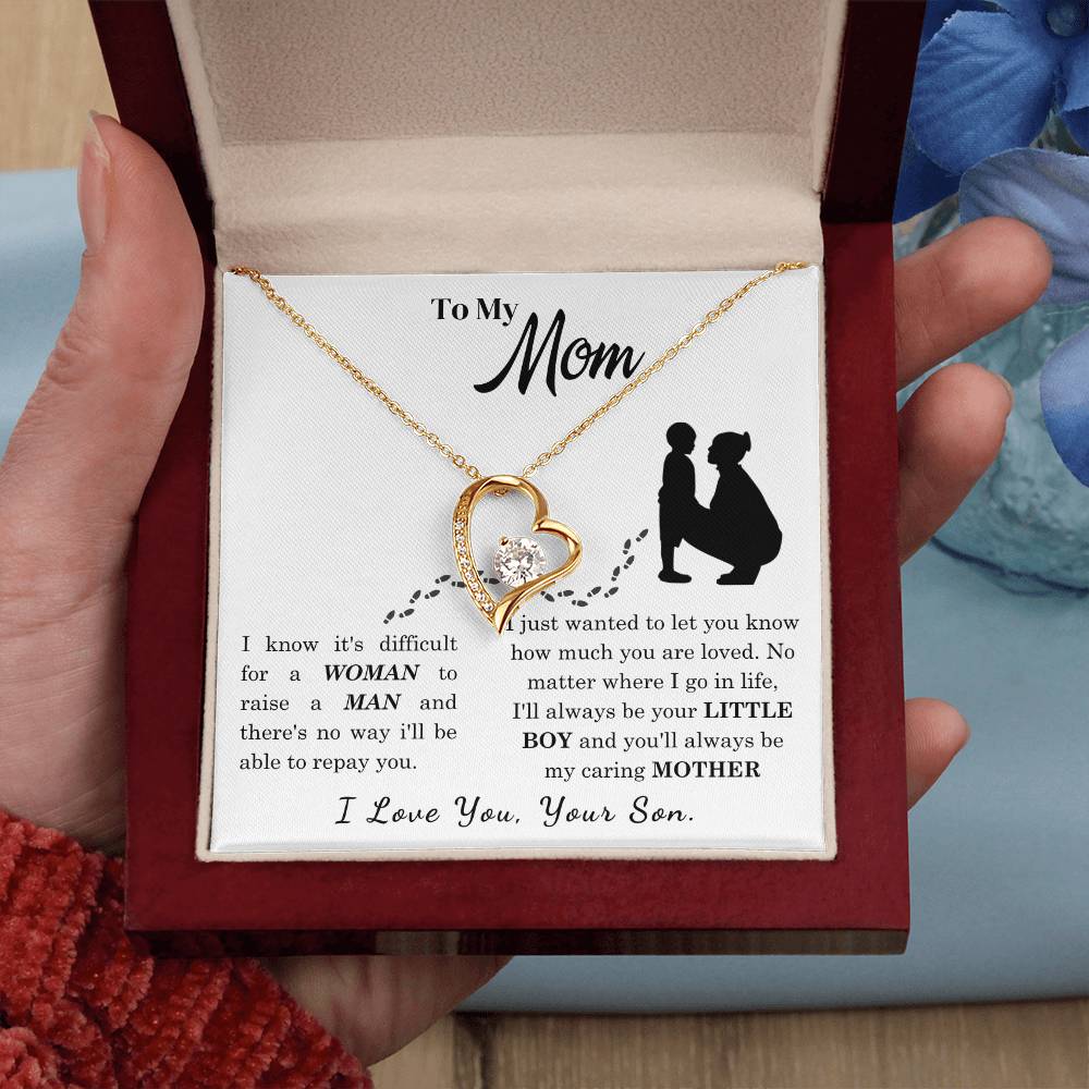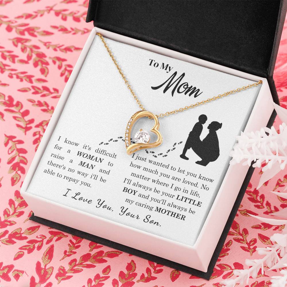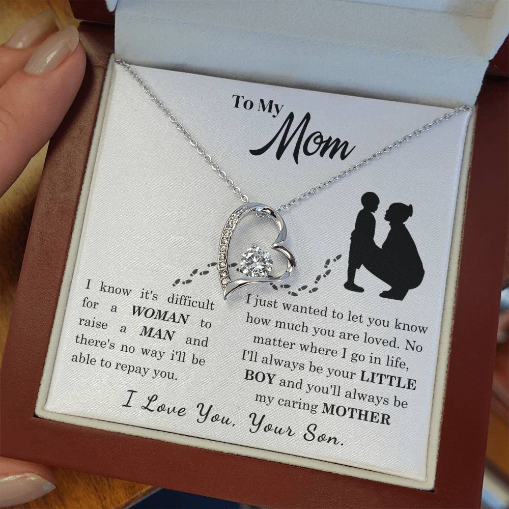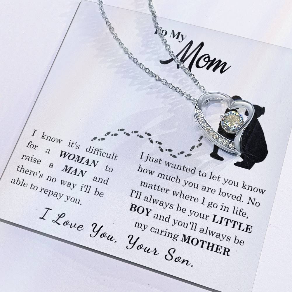 Quote On Card: “I know it's difficult for a WOMAN to raise a MAN and there's no way i'll be able to repay you. I just wanted to let you know how much you are loved. No matter where I go in life, I'll always be your LITTLE BOY and you'll always be my caring MOTHER . I Love You, Your Son.”