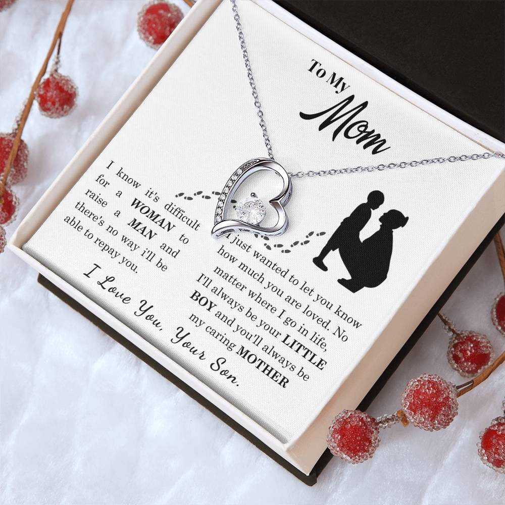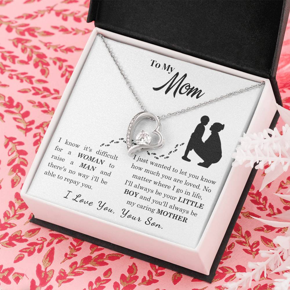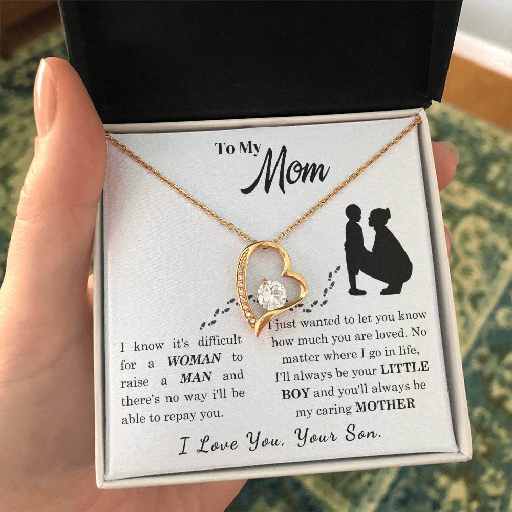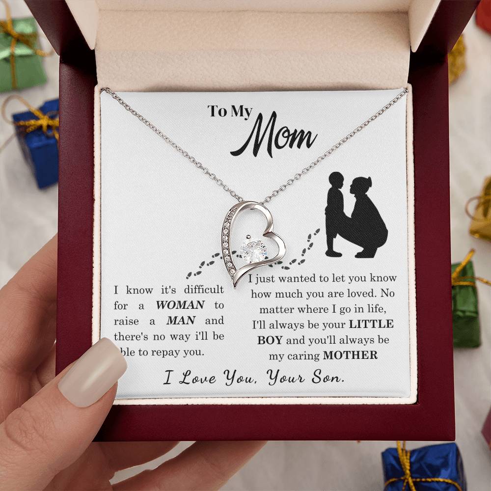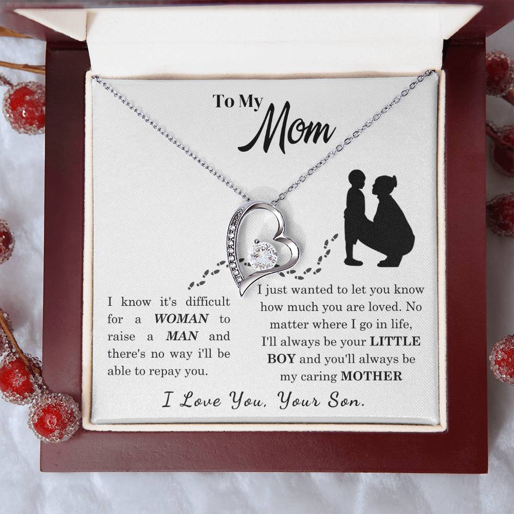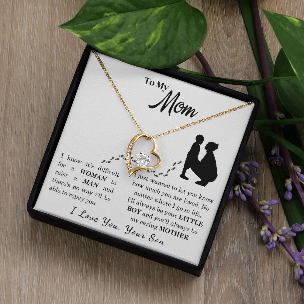 Quote On Card: “I know it's difficult for a WOMAN to raise a MAN and there's no way i'll be able to repay you. I just wanted to let you know how much you are loved. No matter where I go in life, I'll always be your LITTLE BOY and you'll always be my caring MOTHER . I Love You, Your Son.”
