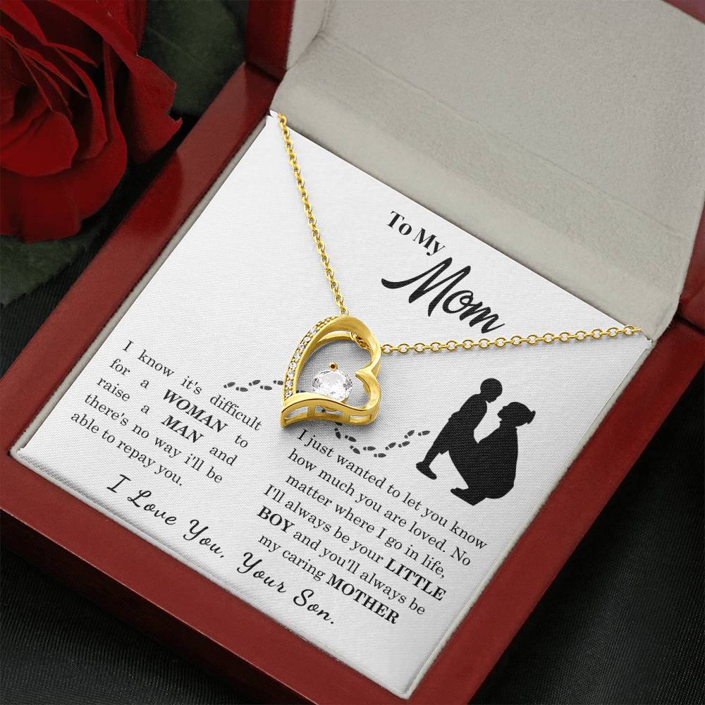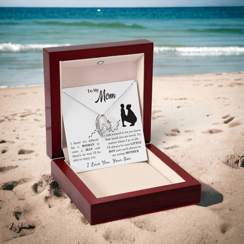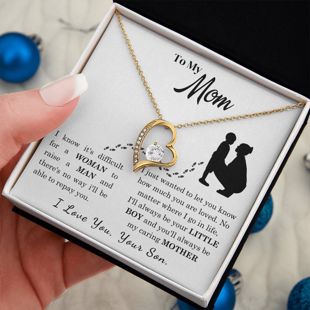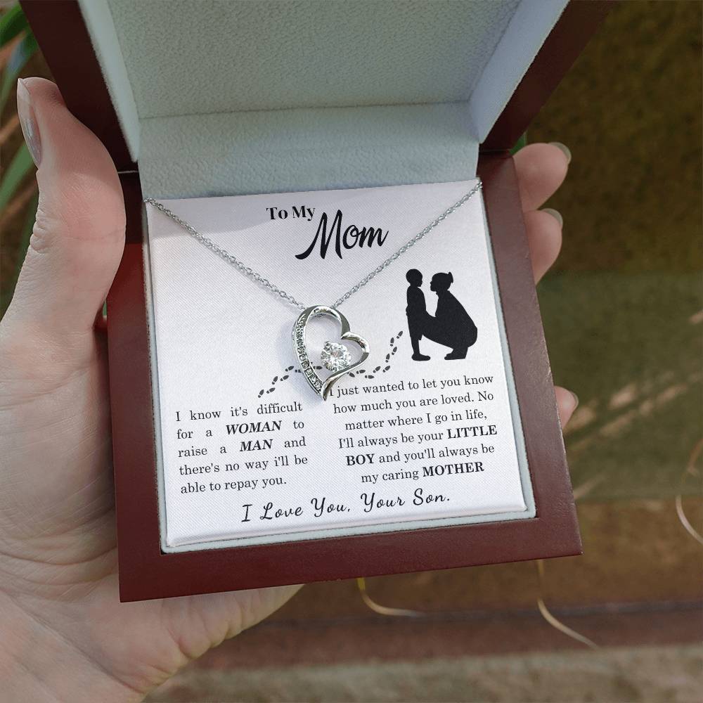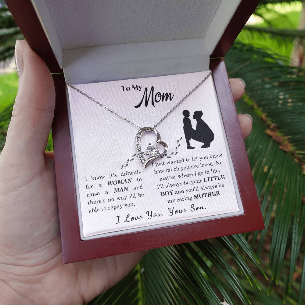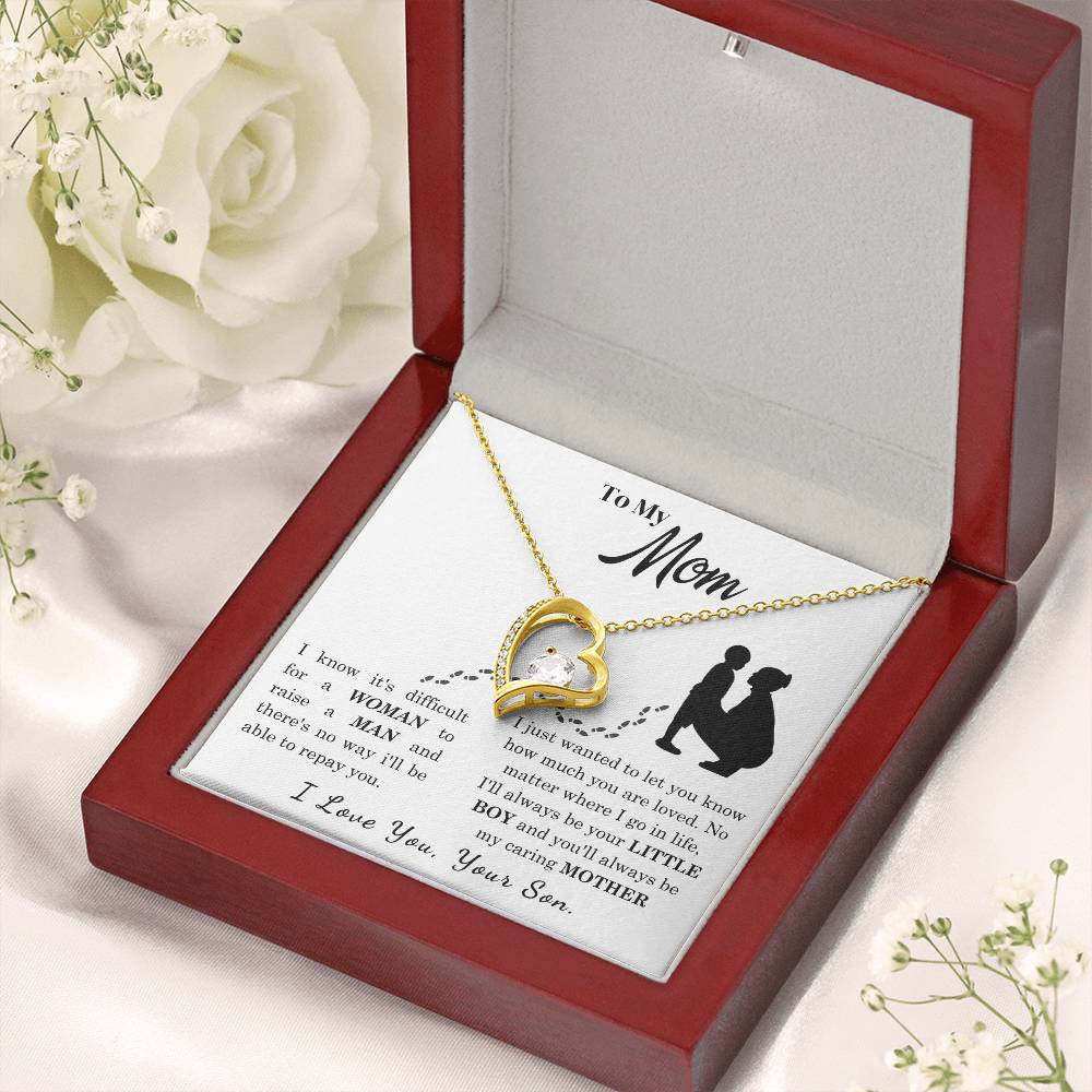 Quote On Card: “I know it's difficult for a WOMAN to raise a MAN and there's no way i'll be able to repay you. I just wanted to let you know how much you are loved. No matter where I go in life, I'll always be your LITTLE BOY and you'll always be my caring MOTHER . I Love You, Your Son.”