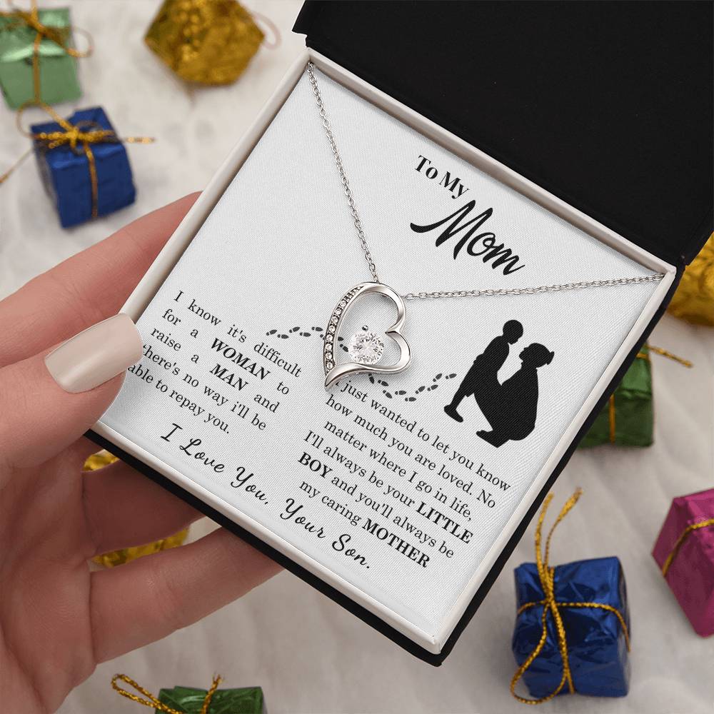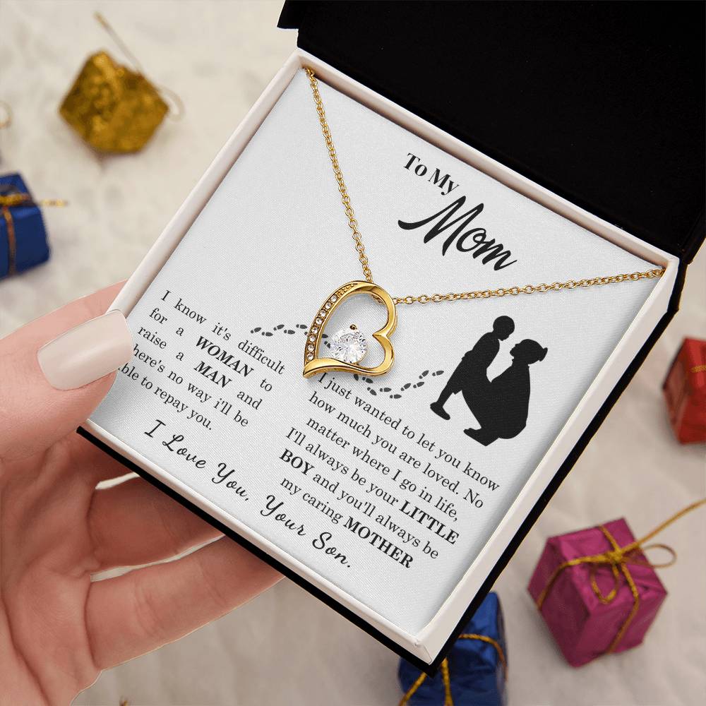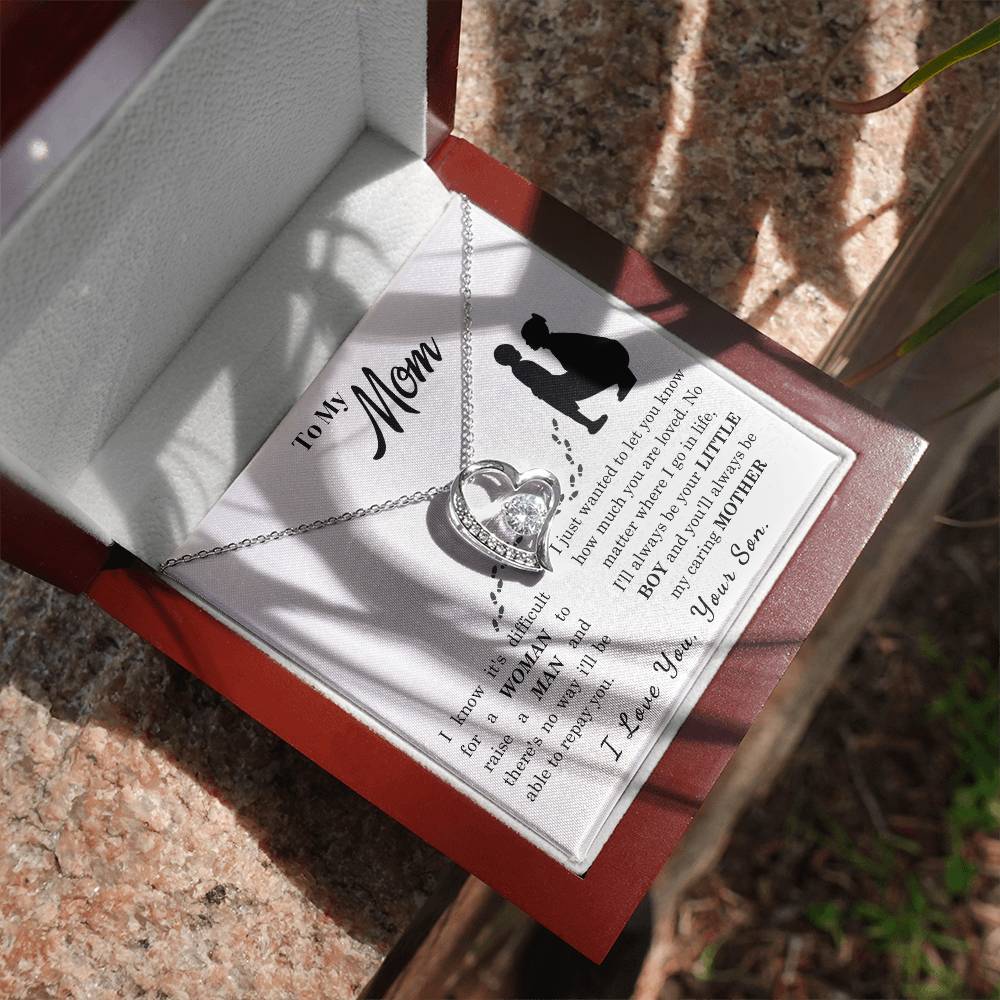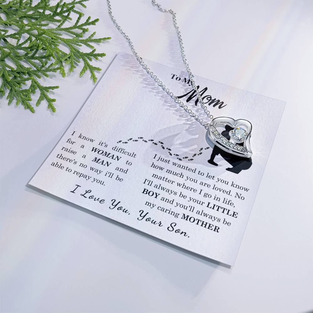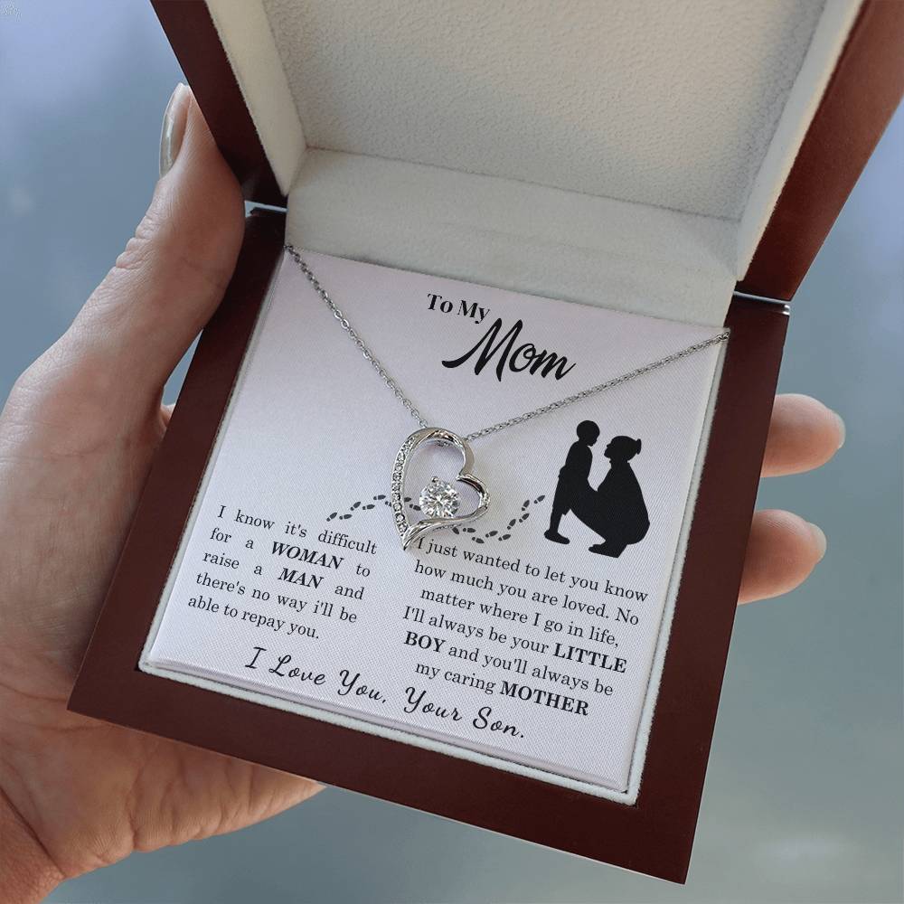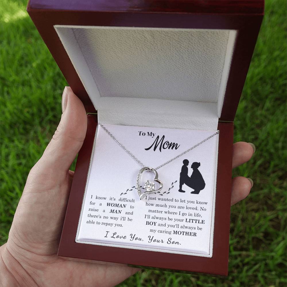 Quote On Card: “I know it's difficult for a WOMAN to raise a MAN and there's no way i'll be able to repay you. I just wanted to let you know how much you are loved. No matter where I go in life, I'll always be your LITTLE BOY and you'll always be my caring MOTHER . I Love You, Your Son.”