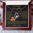 Quote On Card: To My Beautiful Daughter , Someday, When The Pages Of My Life End, I Know That You Will Be One Of The Most Beautiful Chapters. Always Keep Me In Your Heart. For You Are Always In Mine. Nothing And No One, Not Even Time Will Ever Change That .I Squeezed This Necklace Really Tight And Filled It With My Love, And Light. If I'm Ever Not Here, And You Need A Hug, Just Hold It Tight To Feel My Love. I Love You