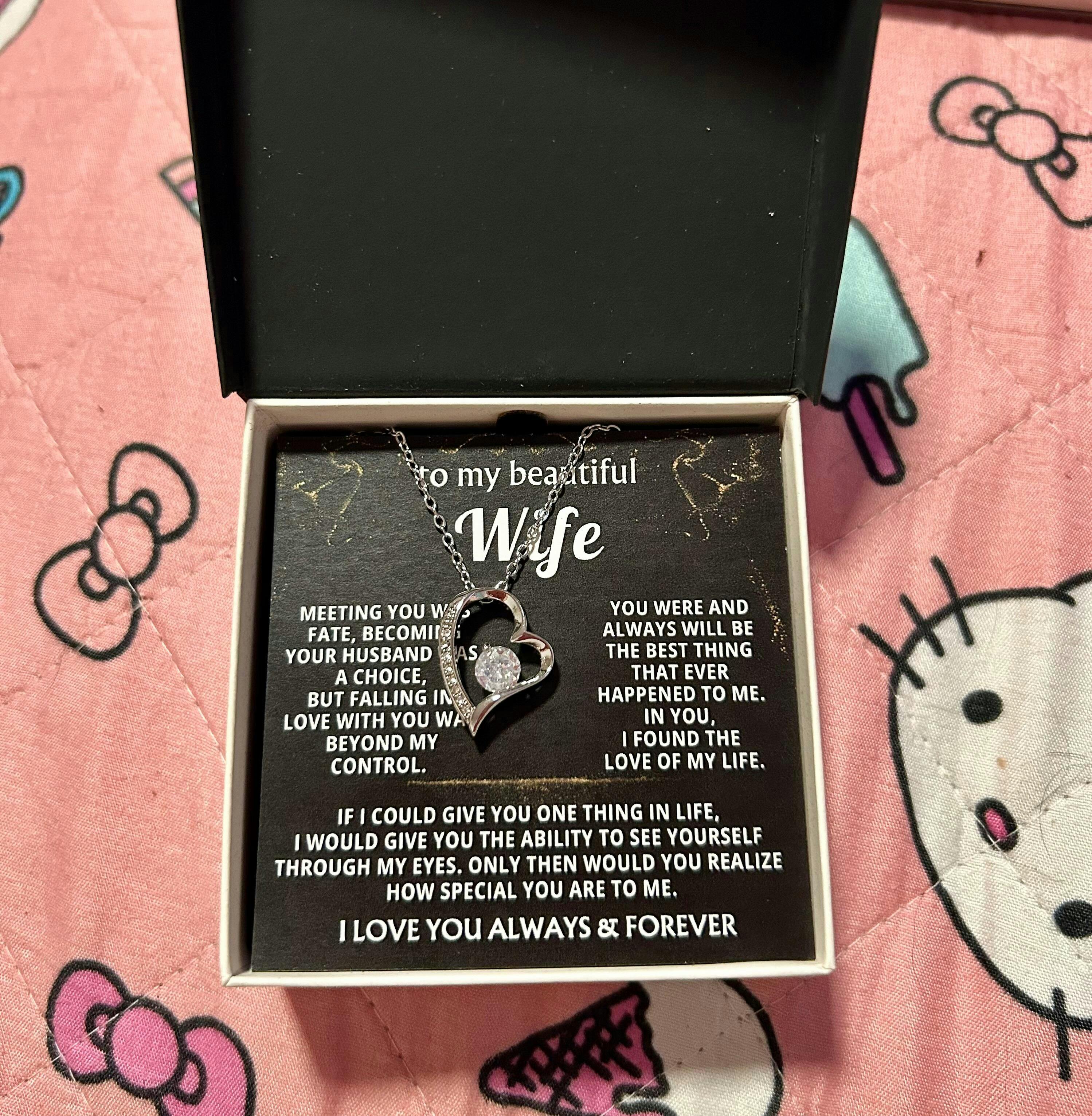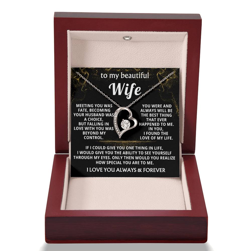 Quote On Card: “ TO MY BEAUTIFUL WIFE , Meeting you was fate, becoming your husband was a choice, but falling in love with you was beyond my control. You were and always will be the best thing that ever happened to me. In you, I found the love of my life. If I could give you one thing in life, I would give you the ability to see yourself through my eyes. Only then would you realize how special you are to me. I LOVE YOU ALWAYS & FOREVER ”
