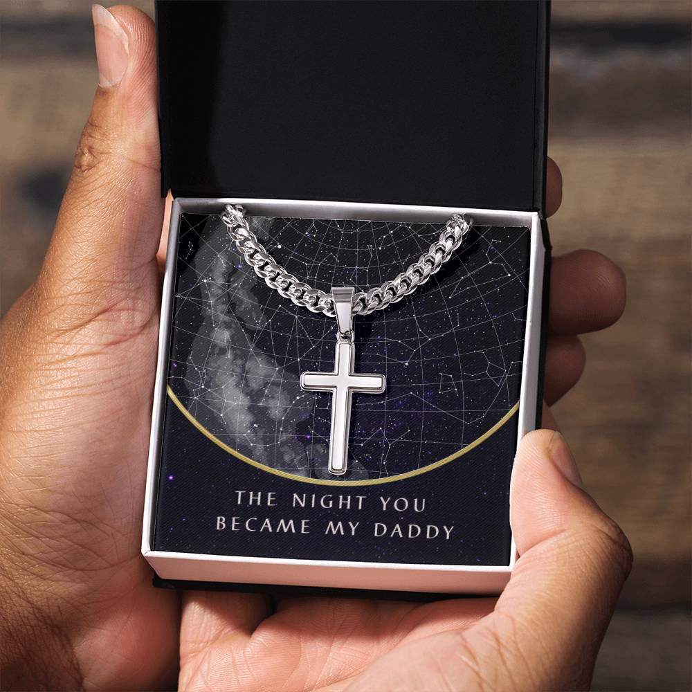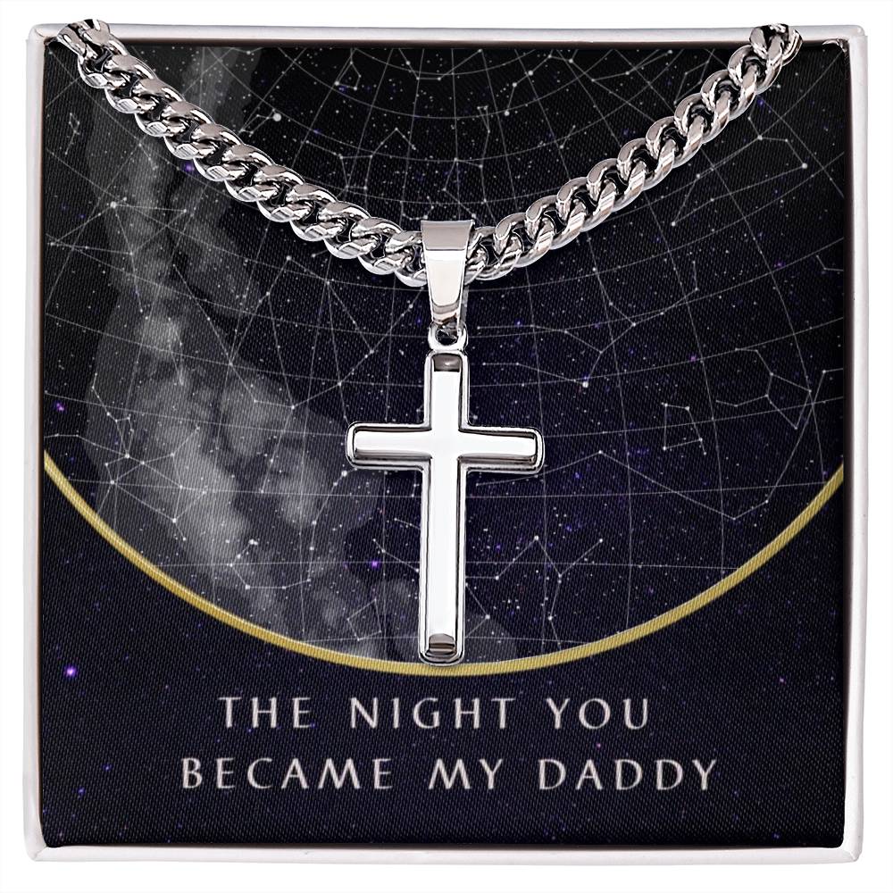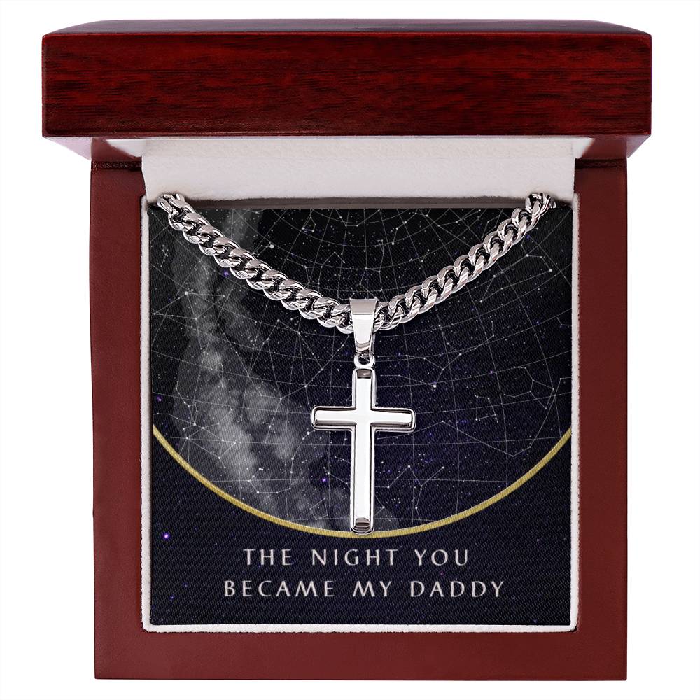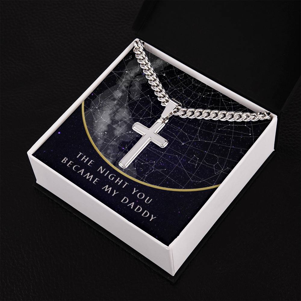 (Custom Star Map) - The Night You Became My Daddy - Cuban Chain Cross Necklace