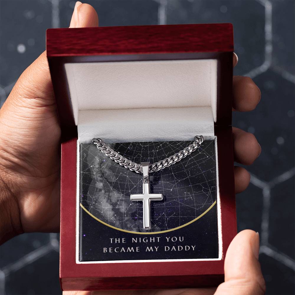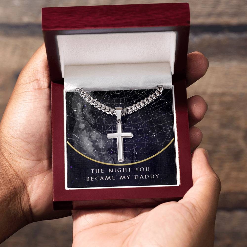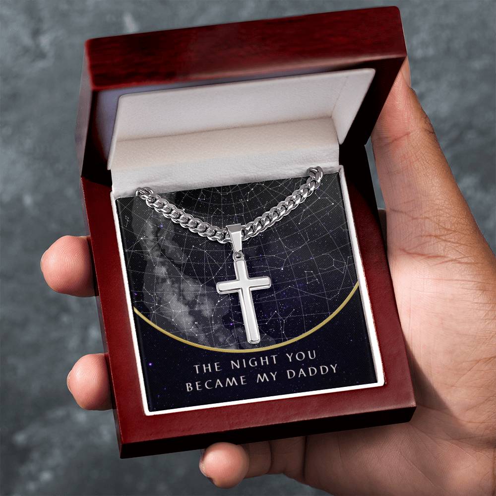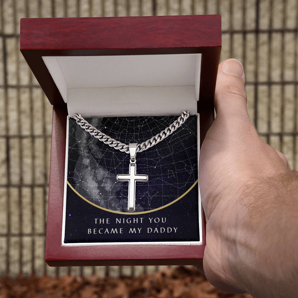 (Custom Star Map) - The Night You Became My Daddy - Cuban Chain Cross Necklace