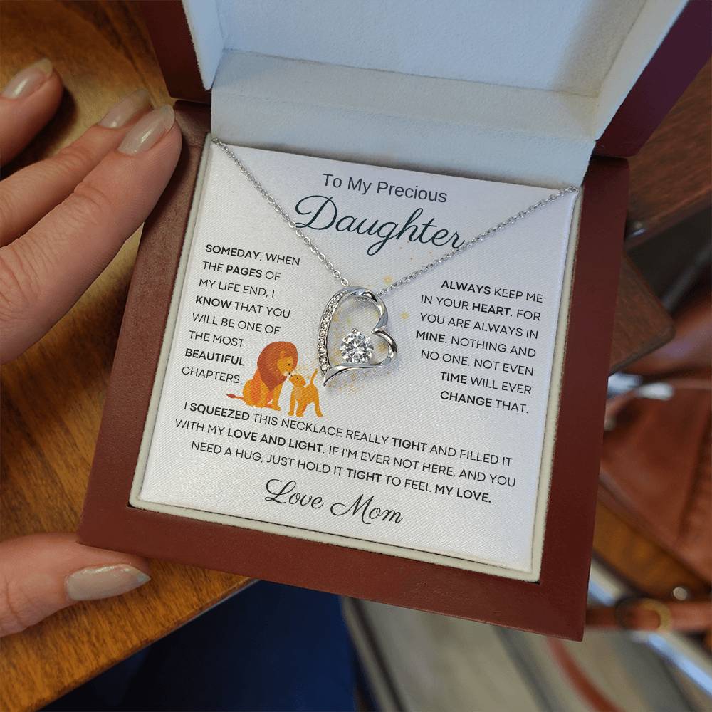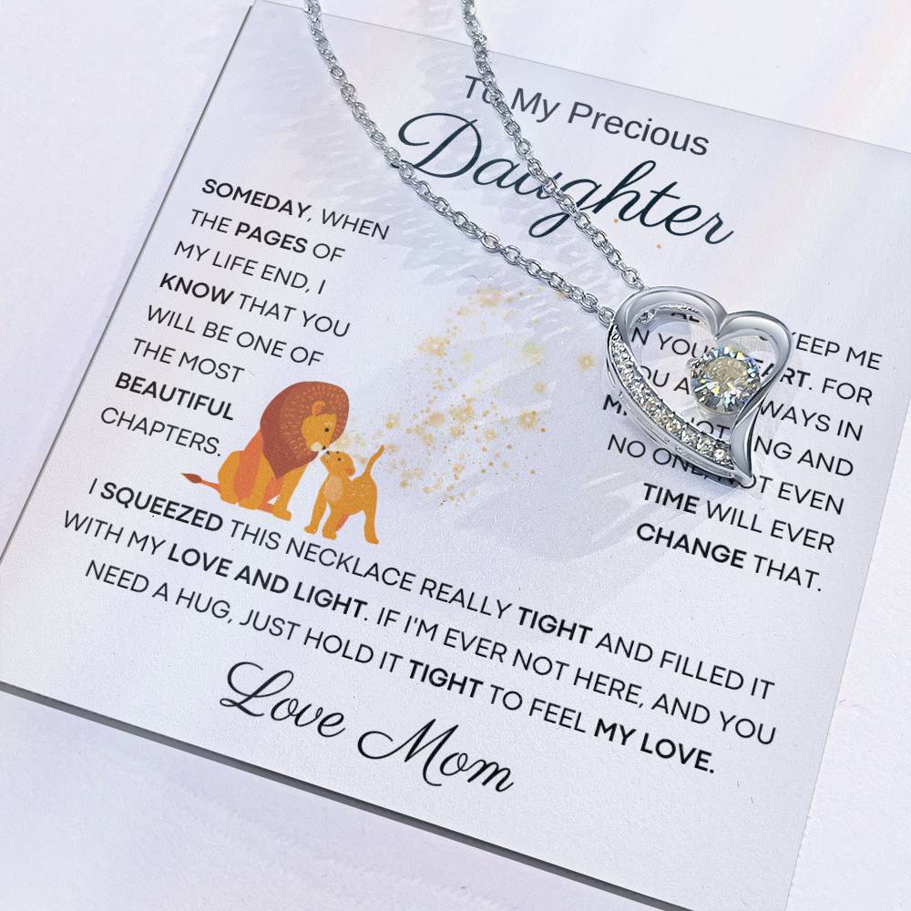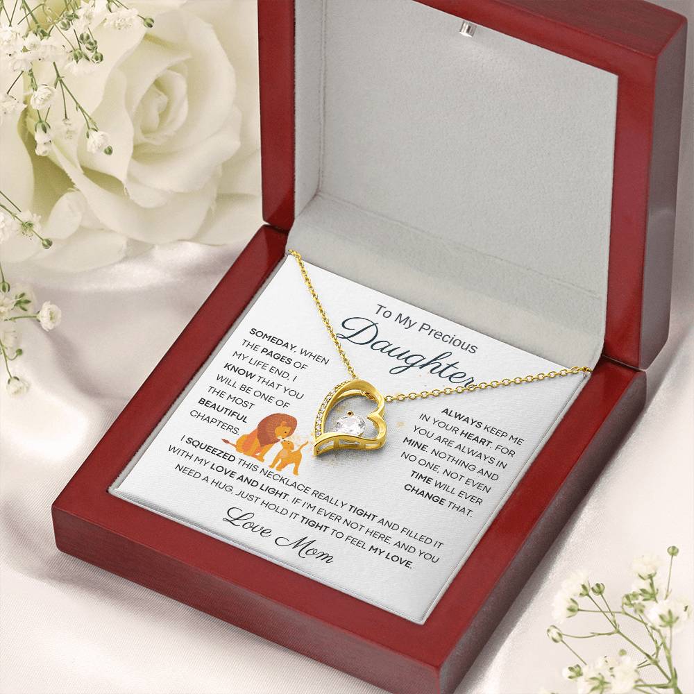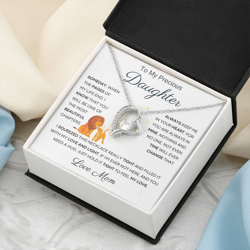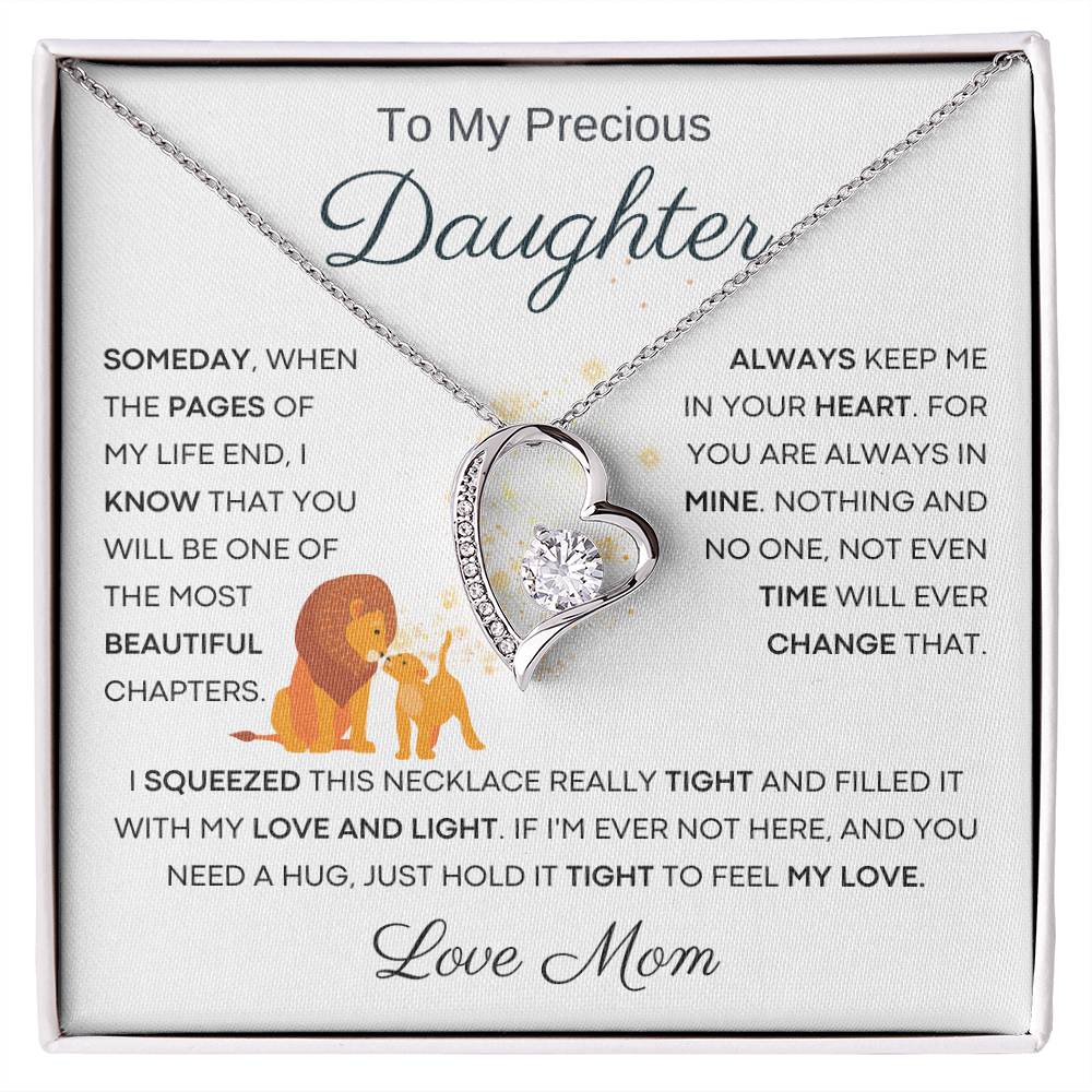Quote On Card: To My Beautiful Daughter , Someday, When The Pages Of My Life End, I Know That You Will Be One Of The Most Beautiful Chapters. Always Keep Me In Your Heart. For You Are Always In Mine. Nothing And No One, Not Even Time Will Ever Change That .I Squeezed This Necklace Really Tight And Filled It With My Love, And Light. If I'm Ever Not Here, And You Need A Hug, Just Hold It Tight To Feel My Love. I Love You