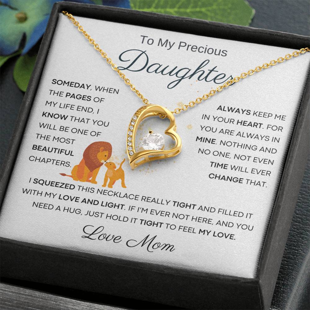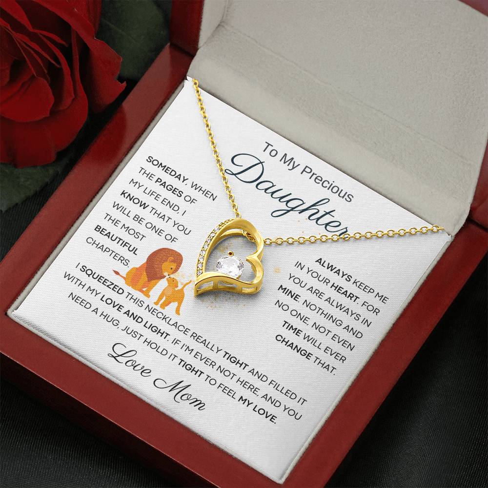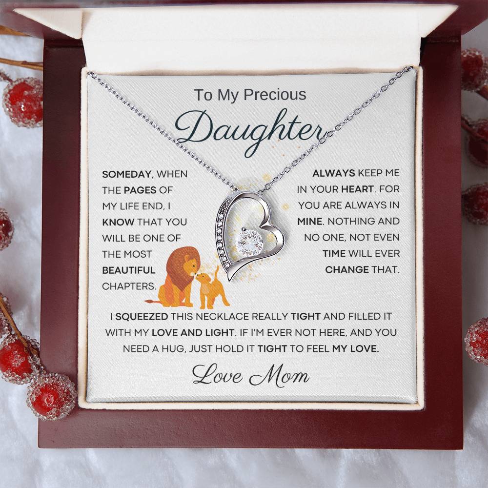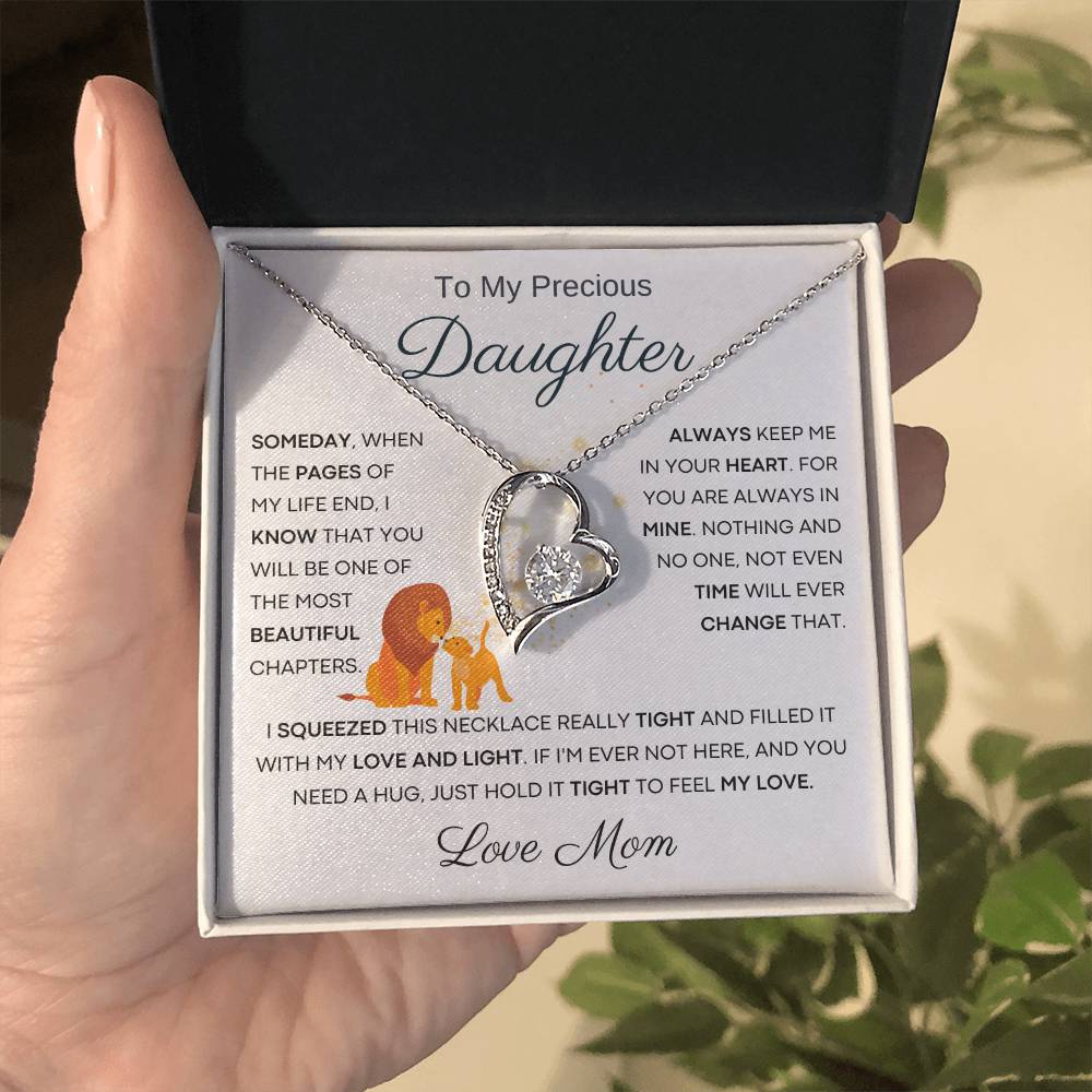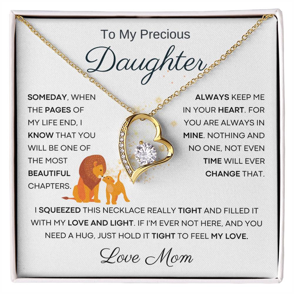 Quote On Card: To My Beautiful Daughter , Someday, When The Pages Of My Life End, I Know That You Will Be One Of The Most Beautiful Chapters. Always Keep Me In Your Heart. For You Are Always In Mine. Nothing And No One, Not Even Time Will Ever Change That .I Squeezed This Necklace Really Tight And Filled It With My Love, And Light. If I'm Ever Not Here, And You Need A Hug, Just Hold It Tight To Feel My Love. I Love You