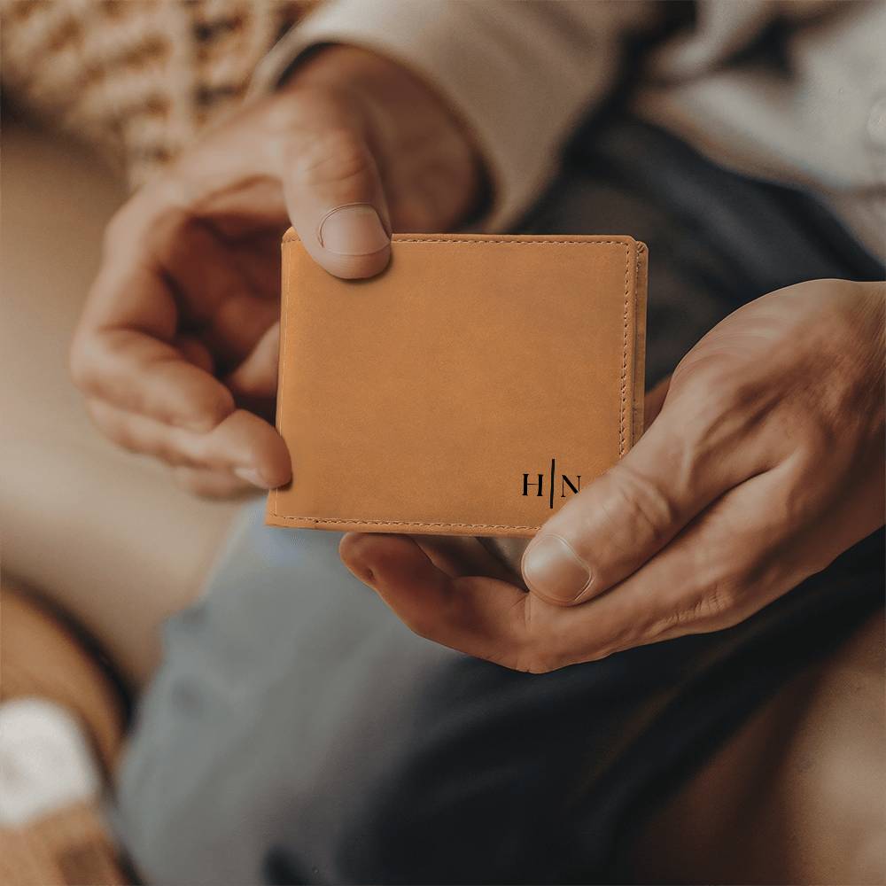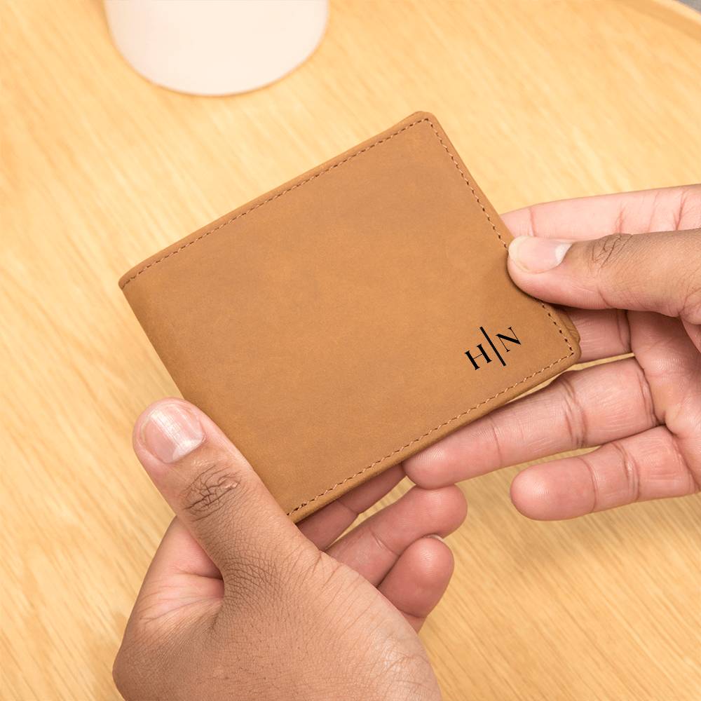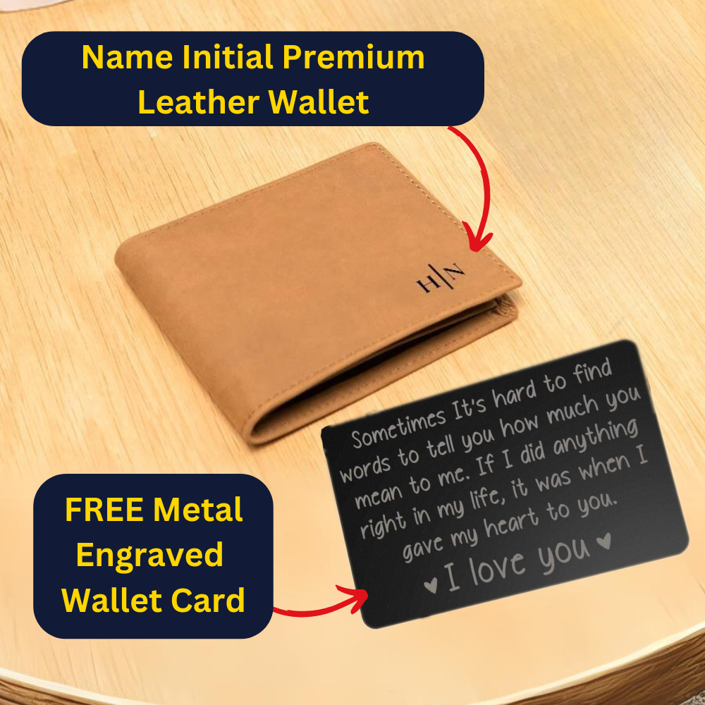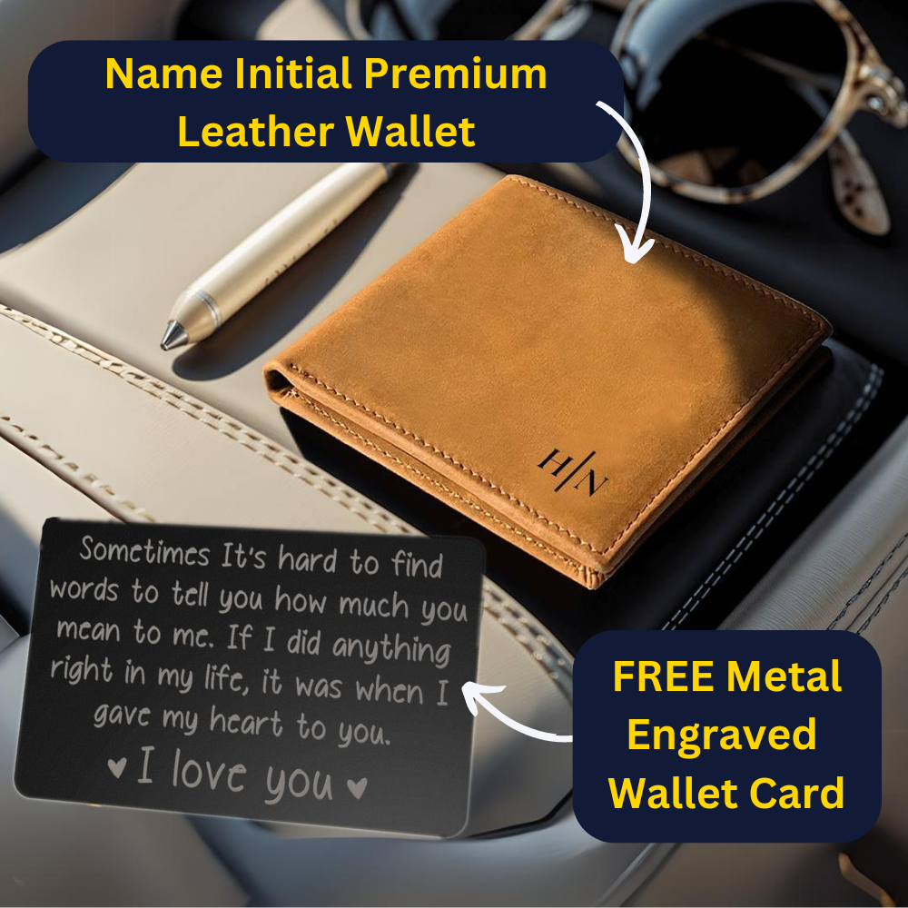 Name Initials - Leather Wallet (w/ FREE Metal Wallet Card)