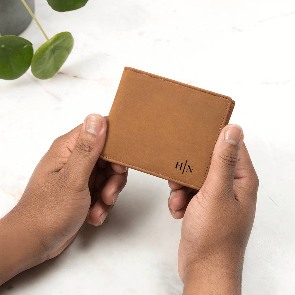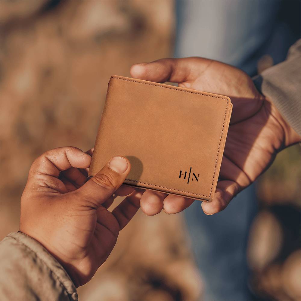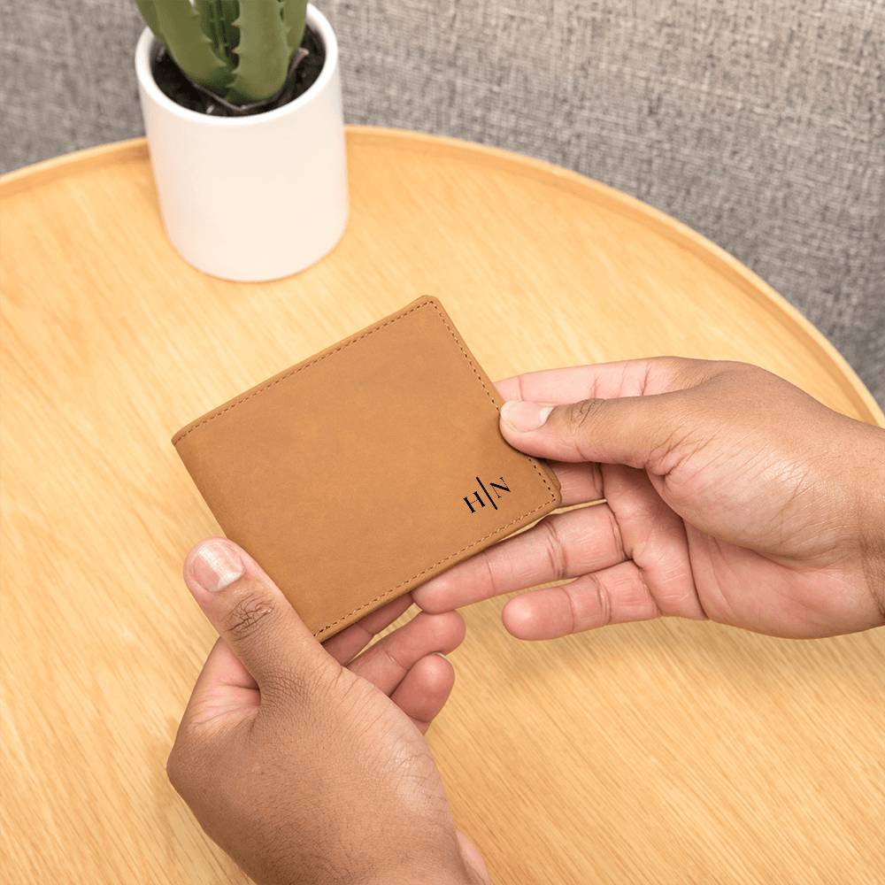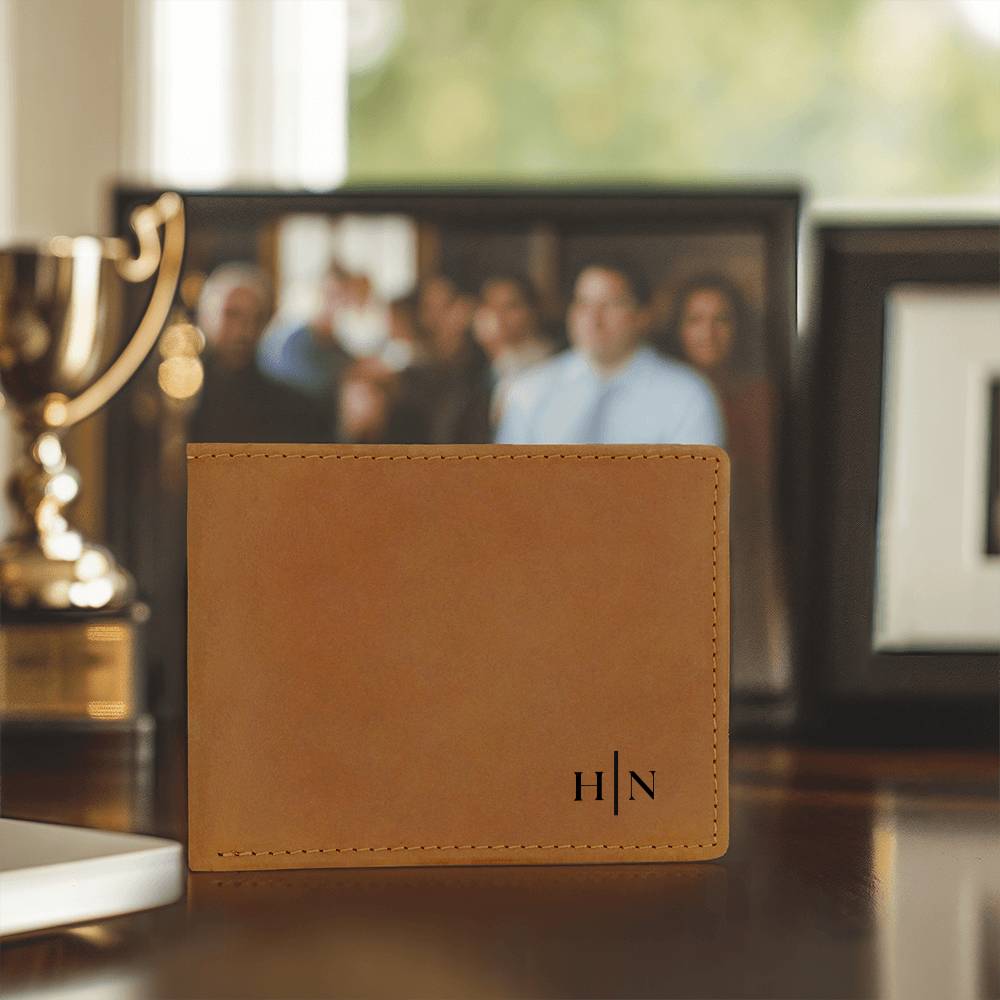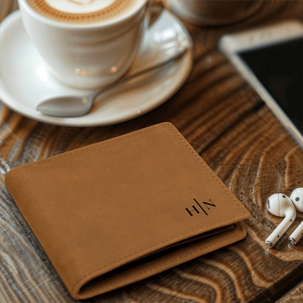 Name Initials - Leather Wallet (w/ FREE Metal Wallet Card)