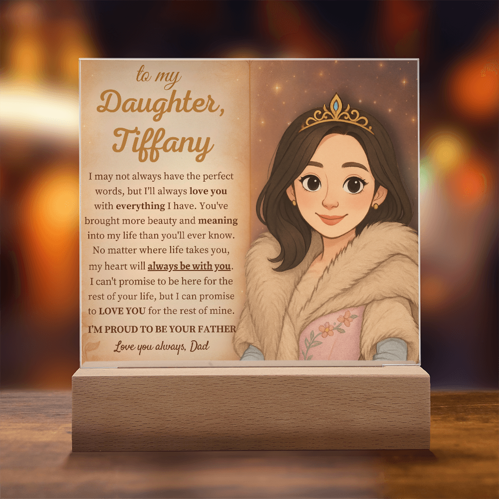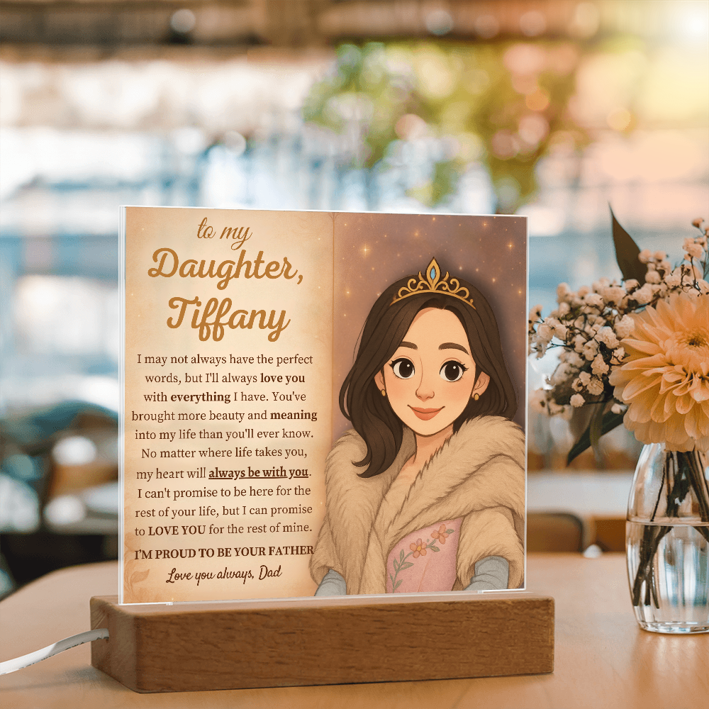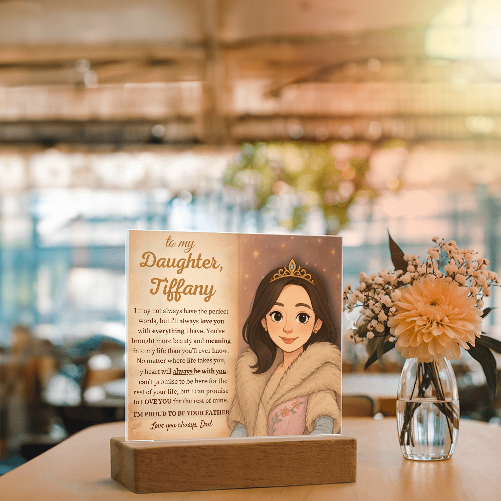 Let her know she’ll always be your little girl — no matter how far she goes or how much time passes. This custom acrylic plaque features a sweet cartoon-style portrait, your daughter's name, and a message straight from a father’s heart. It's not just a gift — it’s a promise of unconditional love.