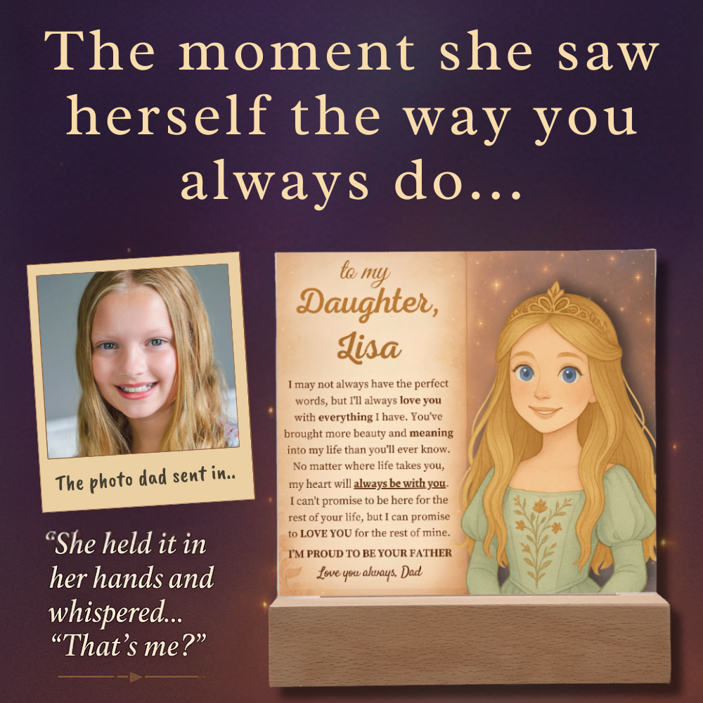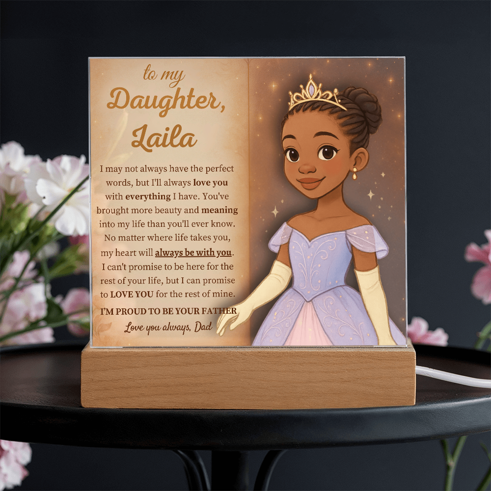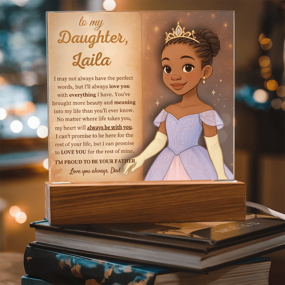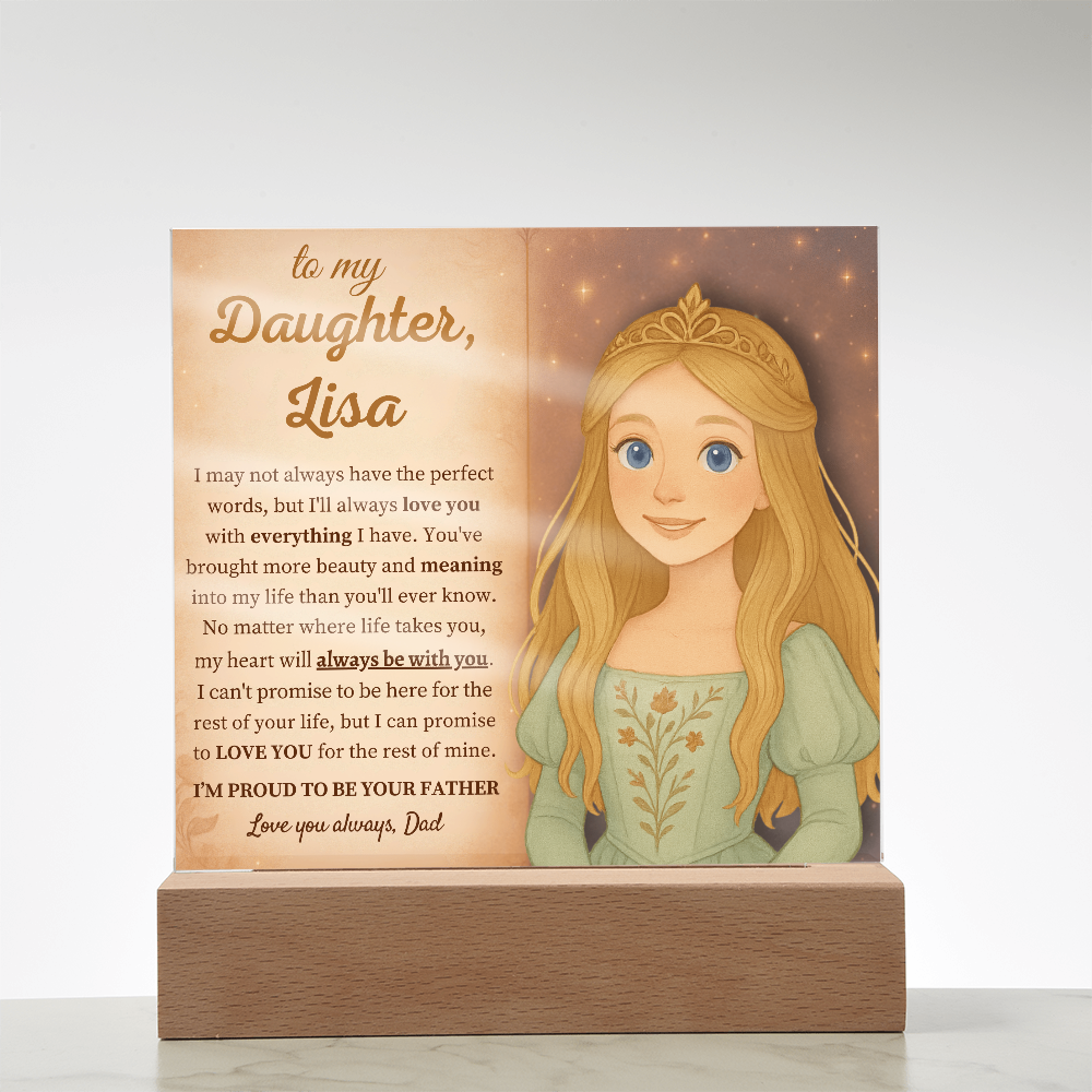 Let her know she’ll always be your little girl — no matter how far she goes or how much time passes. This custom acrylic plaque features a sweet cartoon-style portrait, your daughter's name, and a message straight from a father’s heart. It's not just a gift — it’s a promise of unconditional love.
