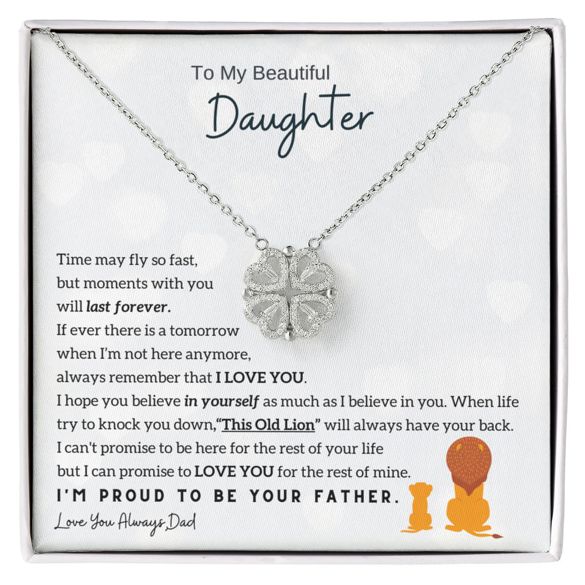 Each piece comes with a pre-written heartfelt message designed for a loved one, perfect for a daughter, son, wife, husband, mother, father, or anyone special. The messages are carefully crafted to express deep love and emotion. Browse the collection to find the message that best matches what is in your heart. If you would like to customize the card with your own words, simply send us an email at support@momavo.com and we will take care of it for you.