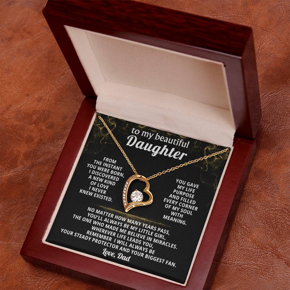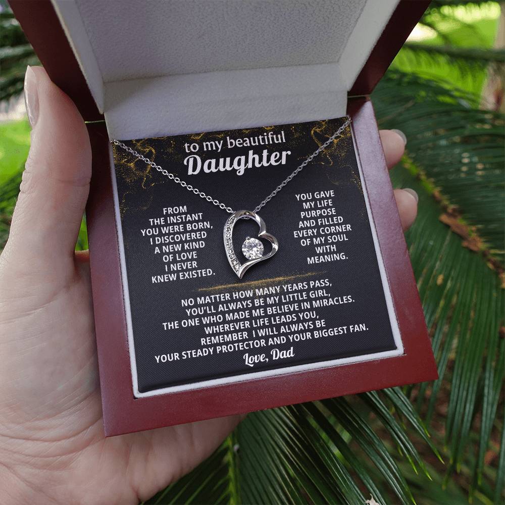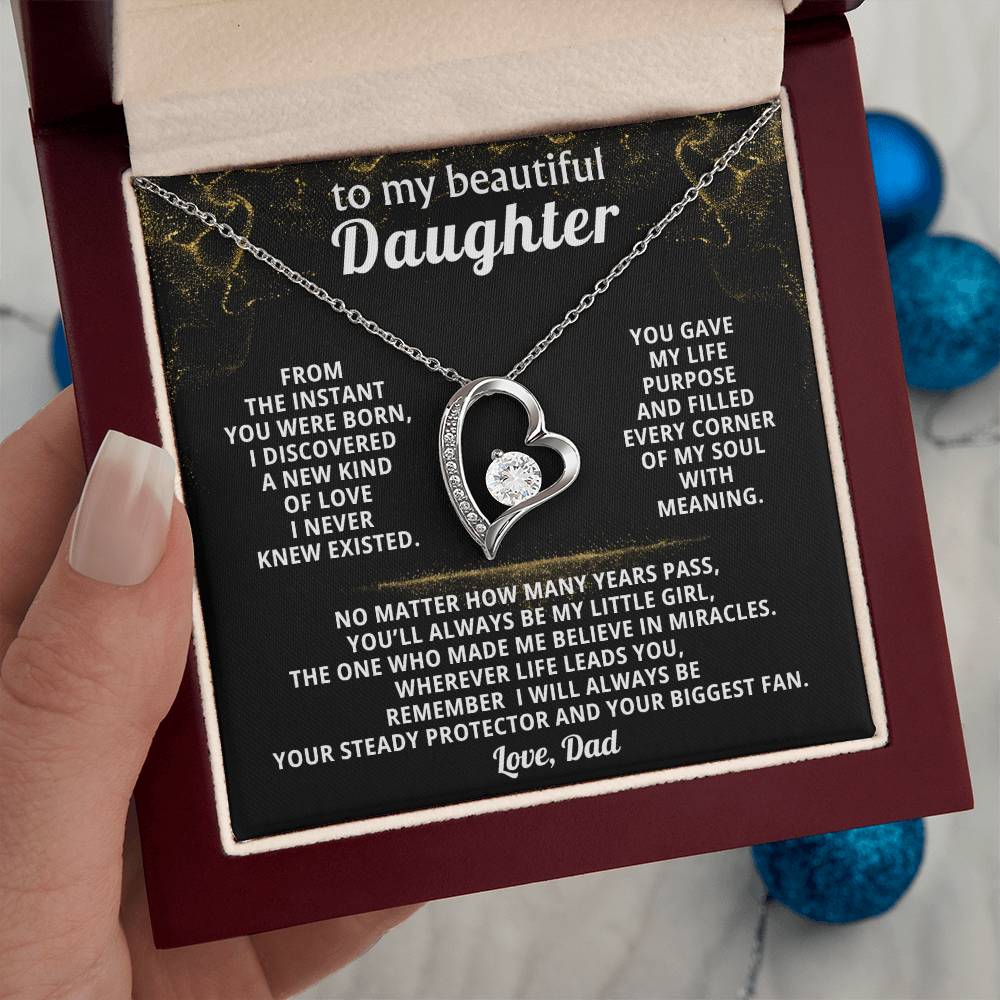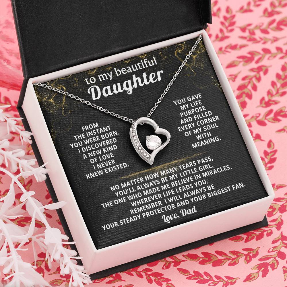Quote On Card: TO MY BEAUTIFUL DAUGHTER, From the instant you were born, I discovered a new kind of love I never knew existed. You gave my life purpose and filled every corner of my soul with meaning. No matter how many years pass, you’ll always be my little girl, the one who made me believe in miracles. Wherever life leads you, remember I will always be your steady protector and your biggest fan. Love, Dad