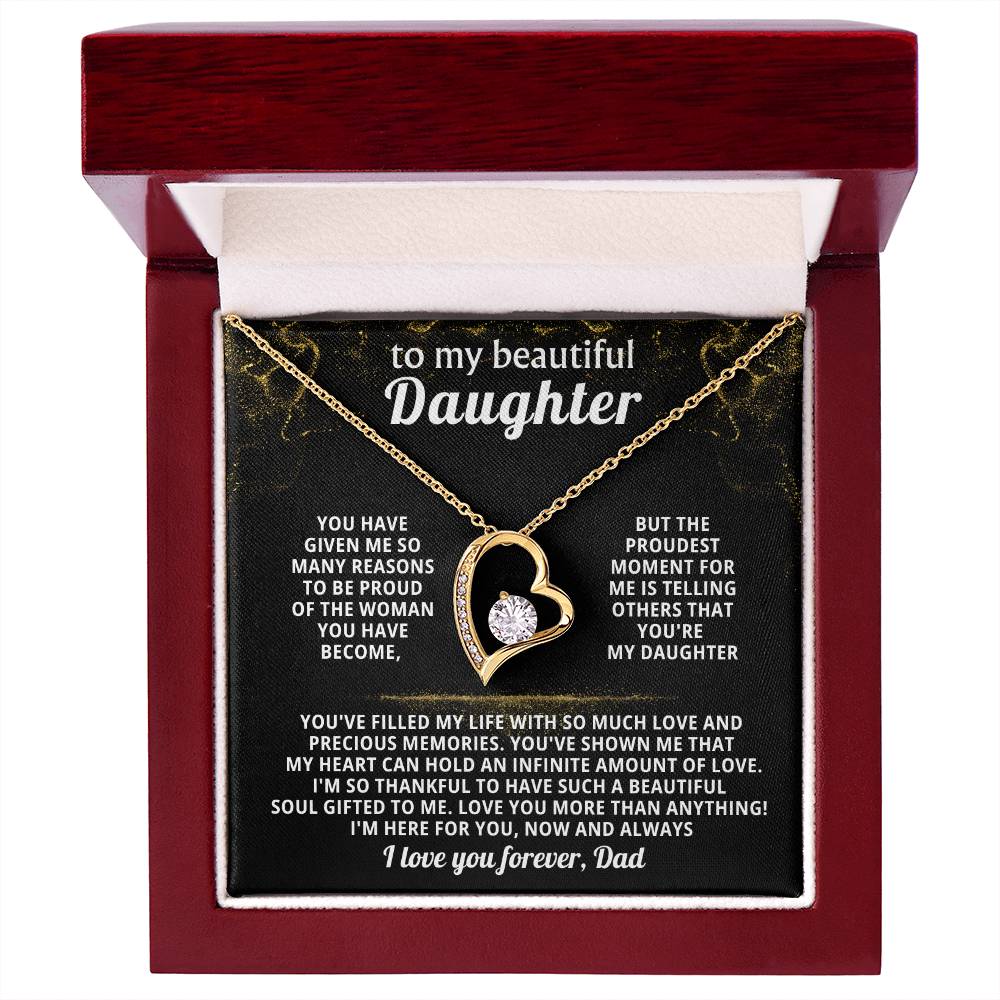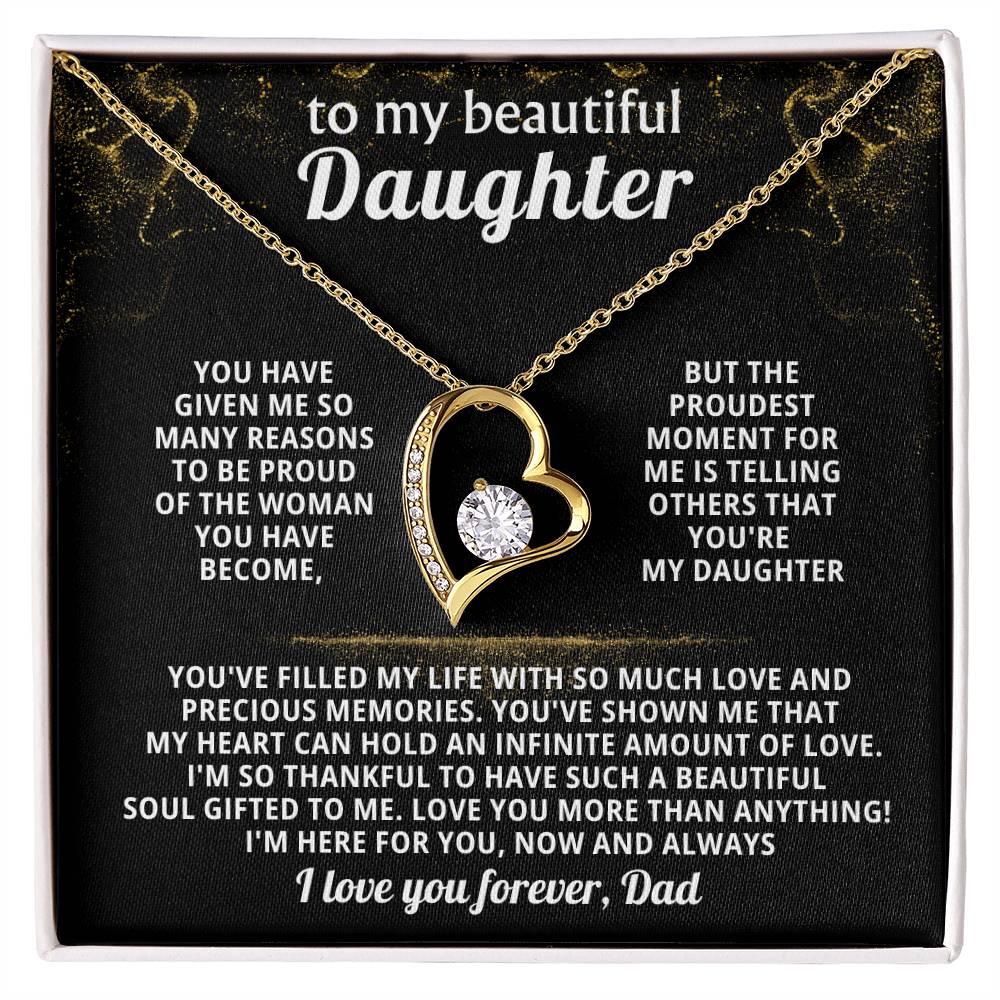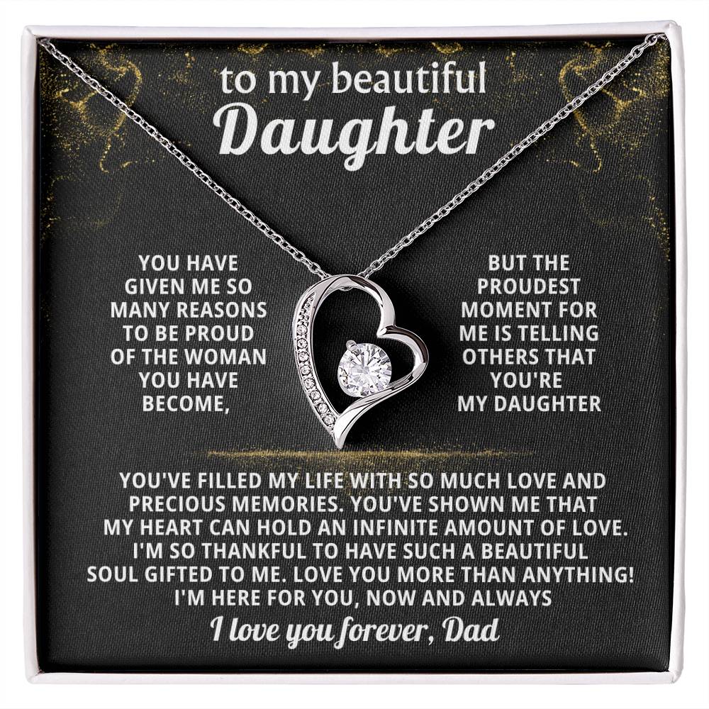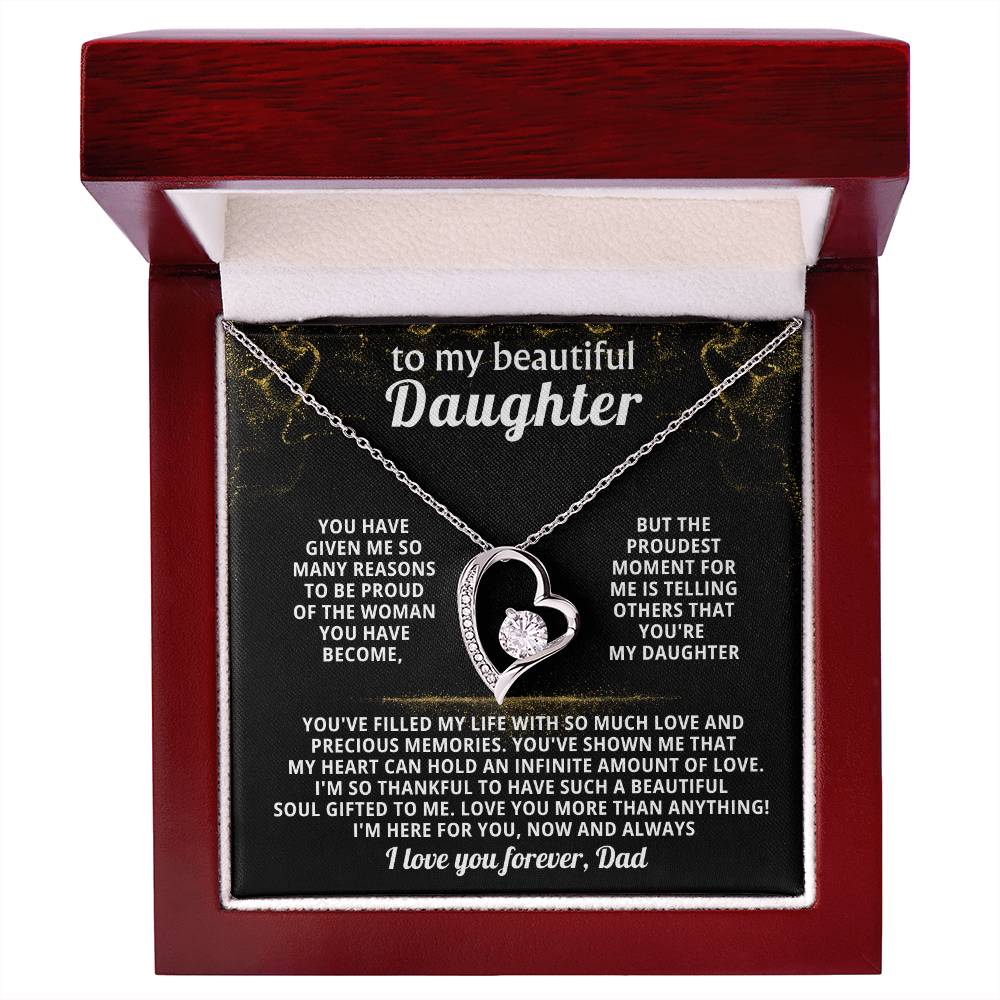Quote On Card: TO MY BEAUTIFUL DAUGHTER, You have given me so many reasons to be proud of the woman you have become, but the proudest moment for me is telling others that you're my Daughter. You've filled my life with so much love and precious memories. You've shown me that my heart can hold an infinite amount of love. I'm so thankful to have such a beautiful soul gifted to me. Love you more than anything! I'm here for you, now and always, I love you forever, Dad