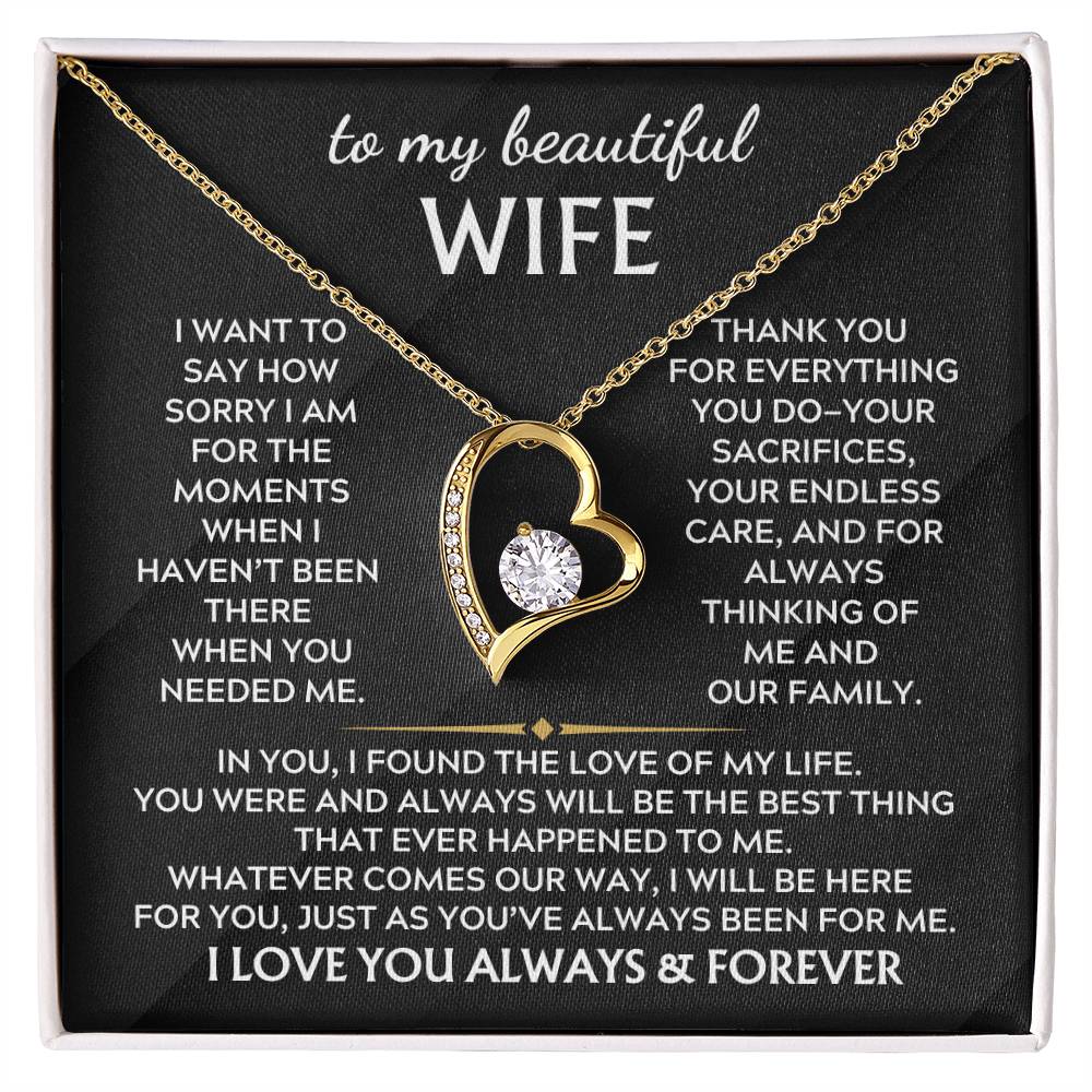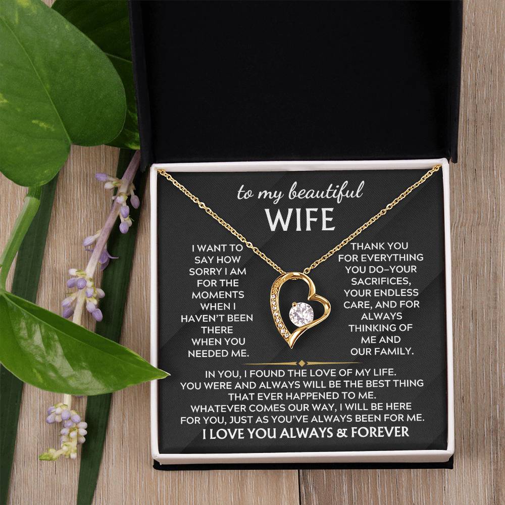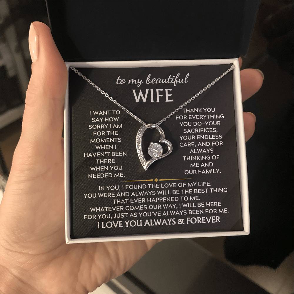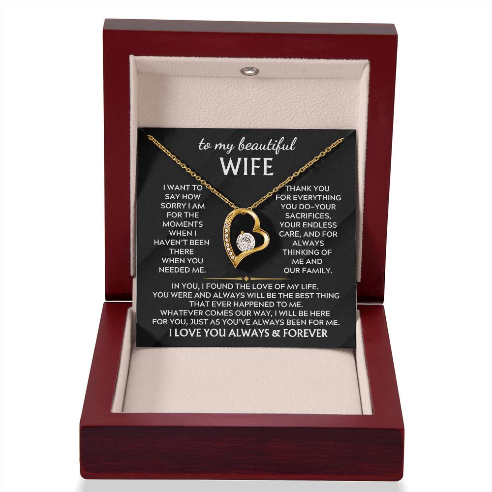 Quote On Card: To My Beautiful Wife, I want to say how sorry I am for the moments when haven’t been there in the way you needed. Thank you for everything you do—your sacrifices, your endless care, and for always thinking of me and our family.In you, I found the love of my life. You were and always will be the best thing that ever happened to me. Whatever comes our way, I will be here for you, just as you’ve always been for me. I LOVE YOU ALWAYS & FOREVER
