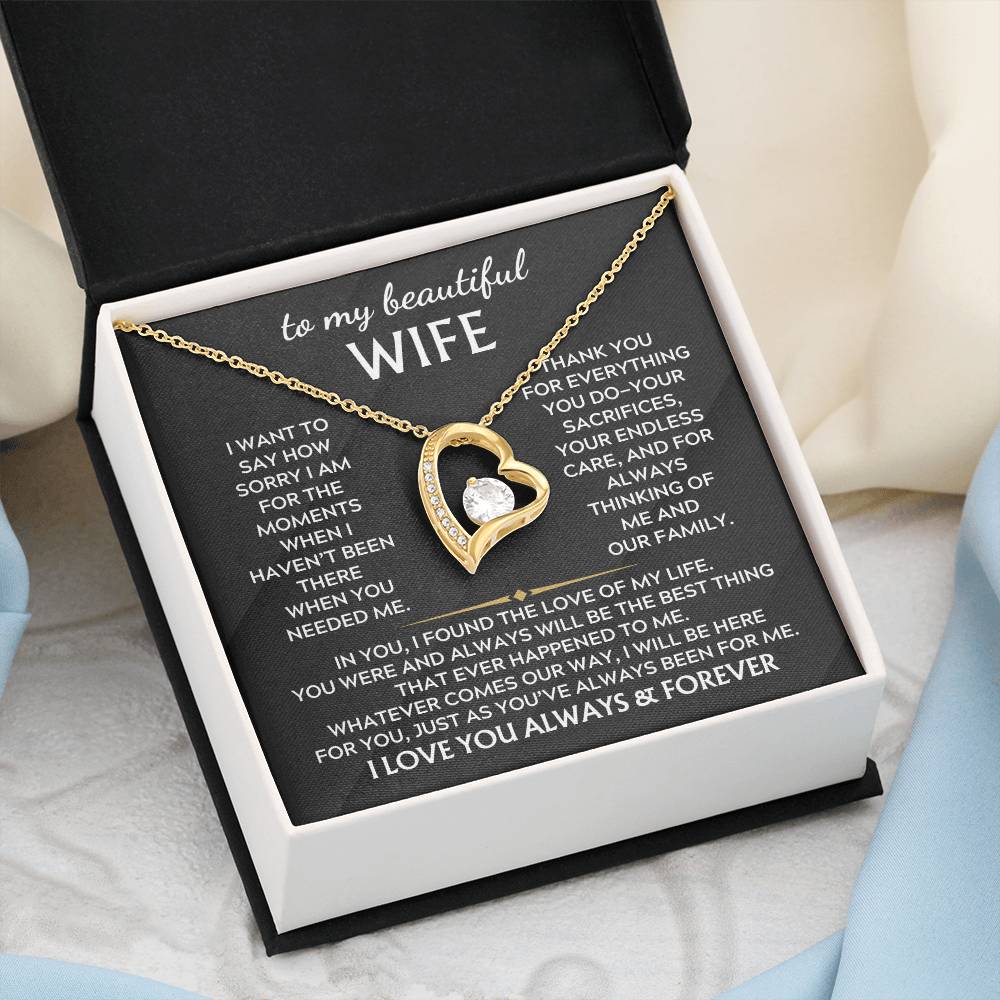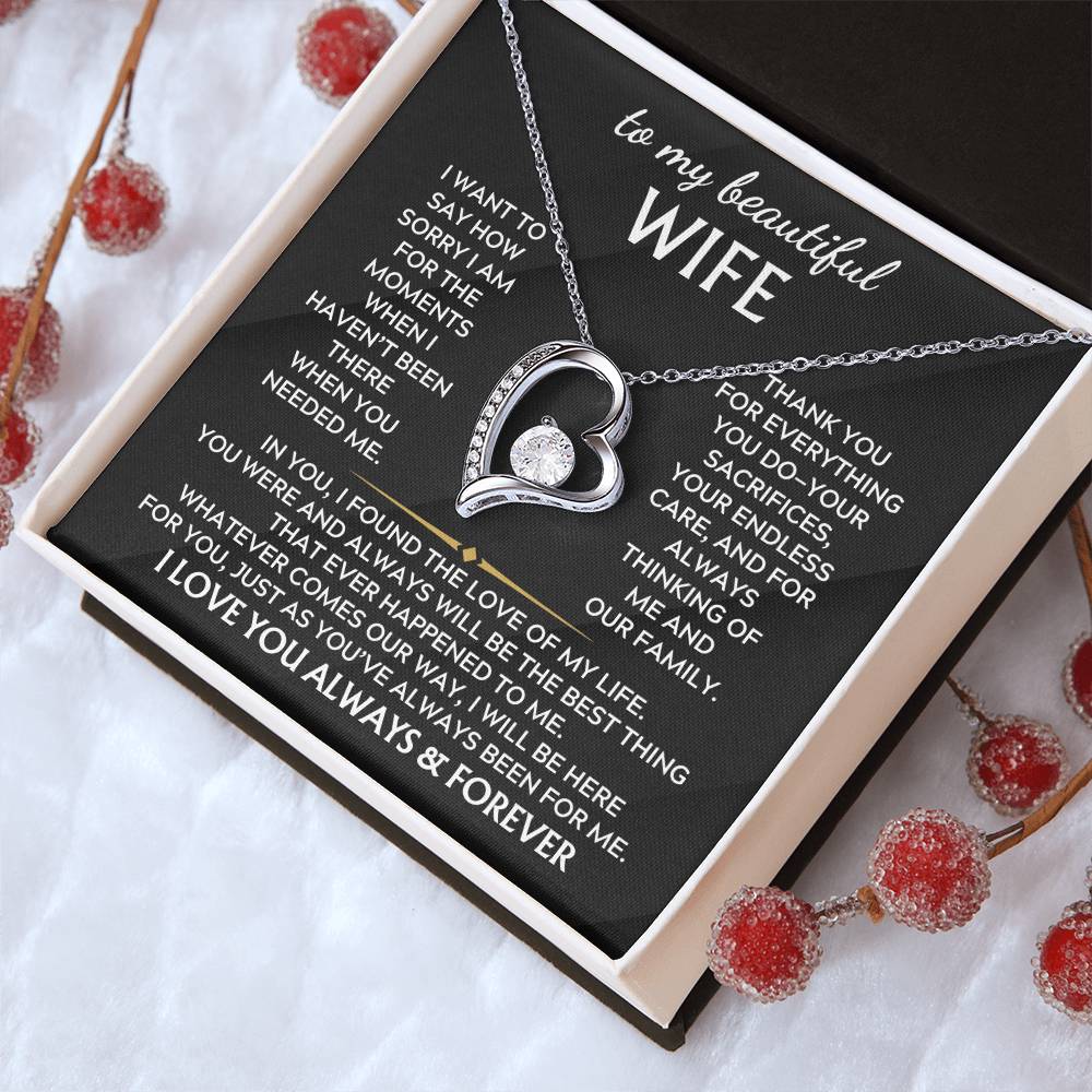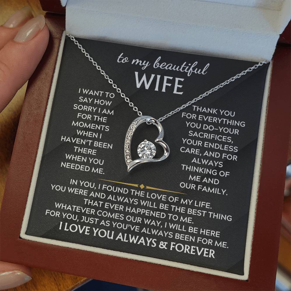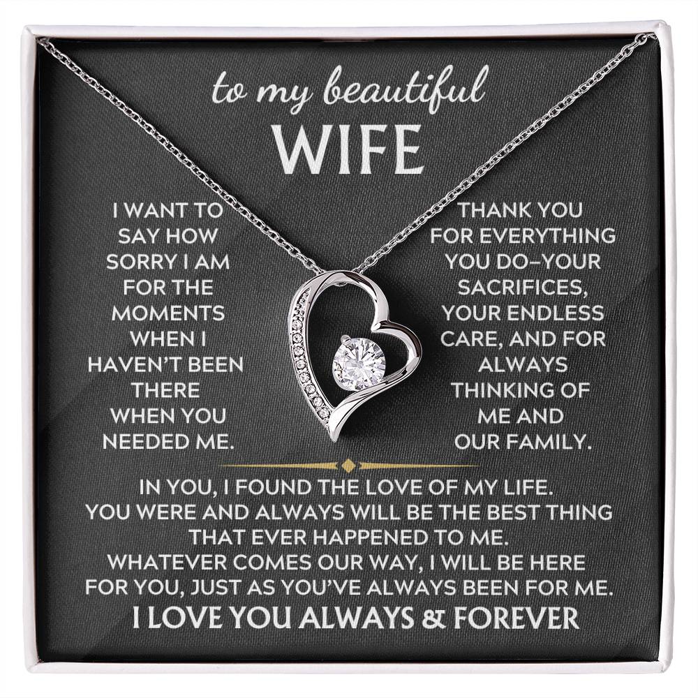 Quote On Card: To My Beautiful Wife, I want to say how sorry I am for the moments when haven’t been there in the way you needed. Thank you for everything you do—your sacrifices, your endless care, and for always thinking of me and our family.In you, I found the love of my life. You were and always will be the best thing that ever happened to me. Whatever comes our way, I will be here for you, just as you’ve always been for me. I LOVE YOU ALWAYS & FOREVER