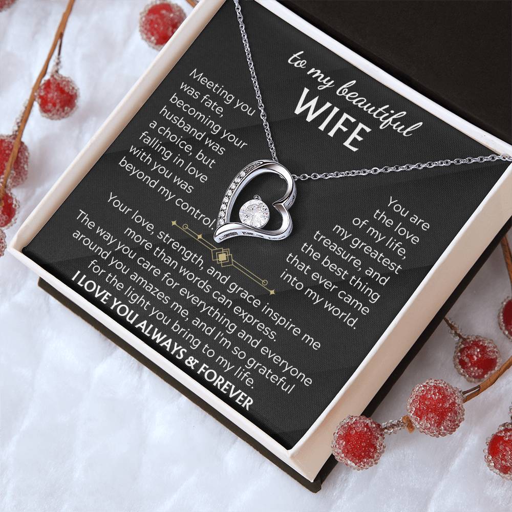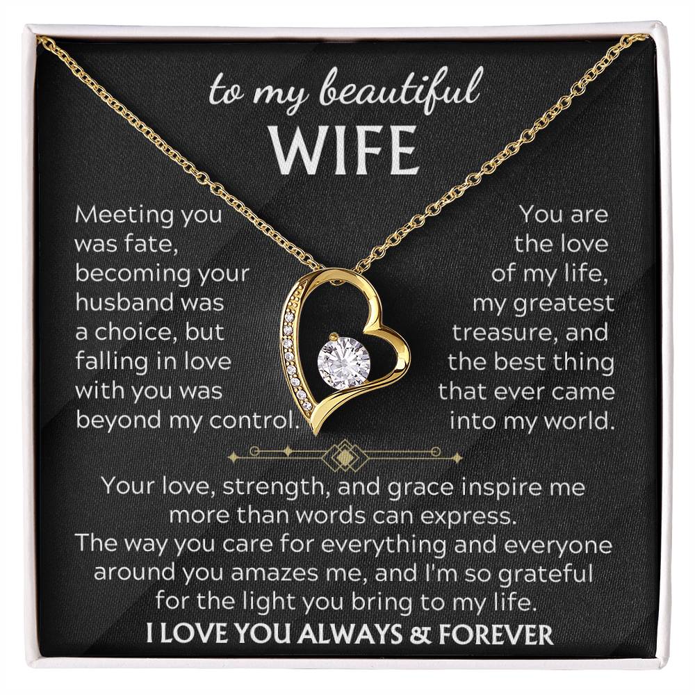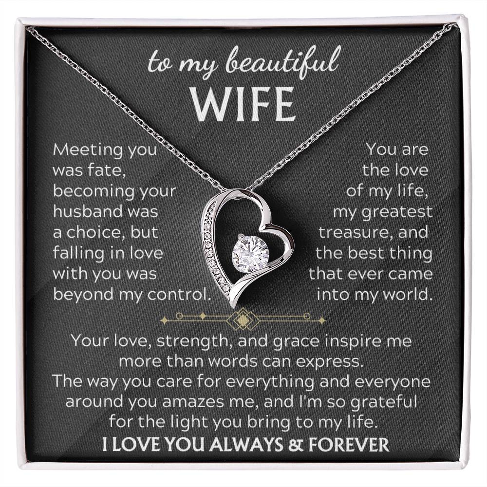 Quote On Card: To My Beautiful Wife, Meeting you was fate, becoming your husband was a choice, but falling in love with you was beyond my control. You are the love of my life, my greatest treasure, and the best thing that ever came into my world. Your love, strength, and grace inspire me more than words can express. The way you care for everything and everyone around you amazes me, and I'm so grateful for the light you bring to my life. I LOVE YOU ALWAYS & FOREVER