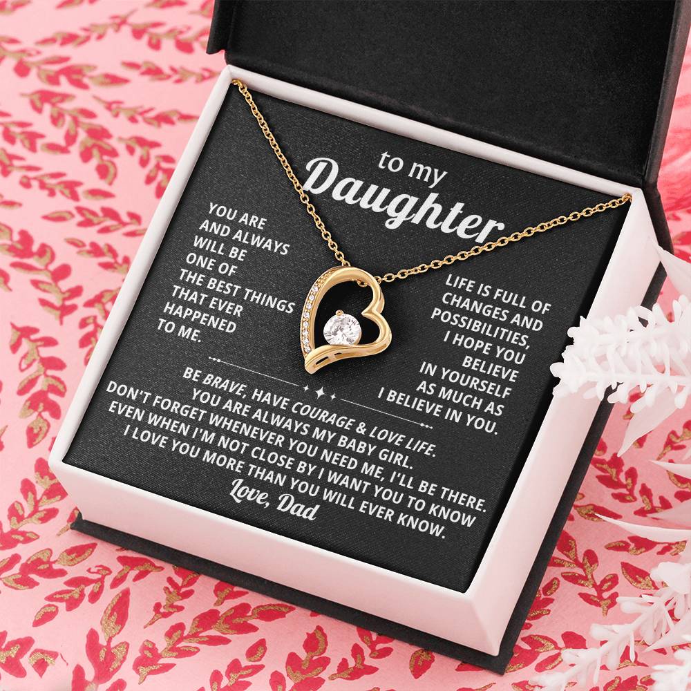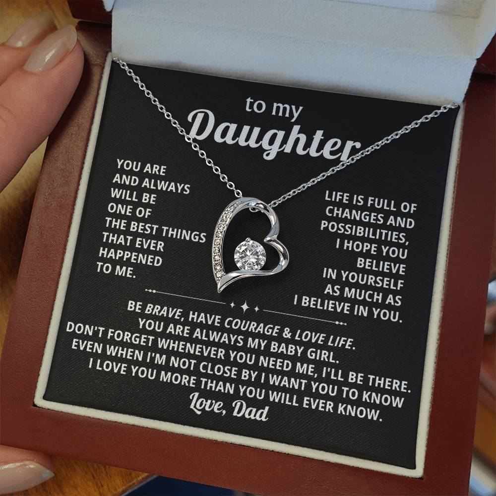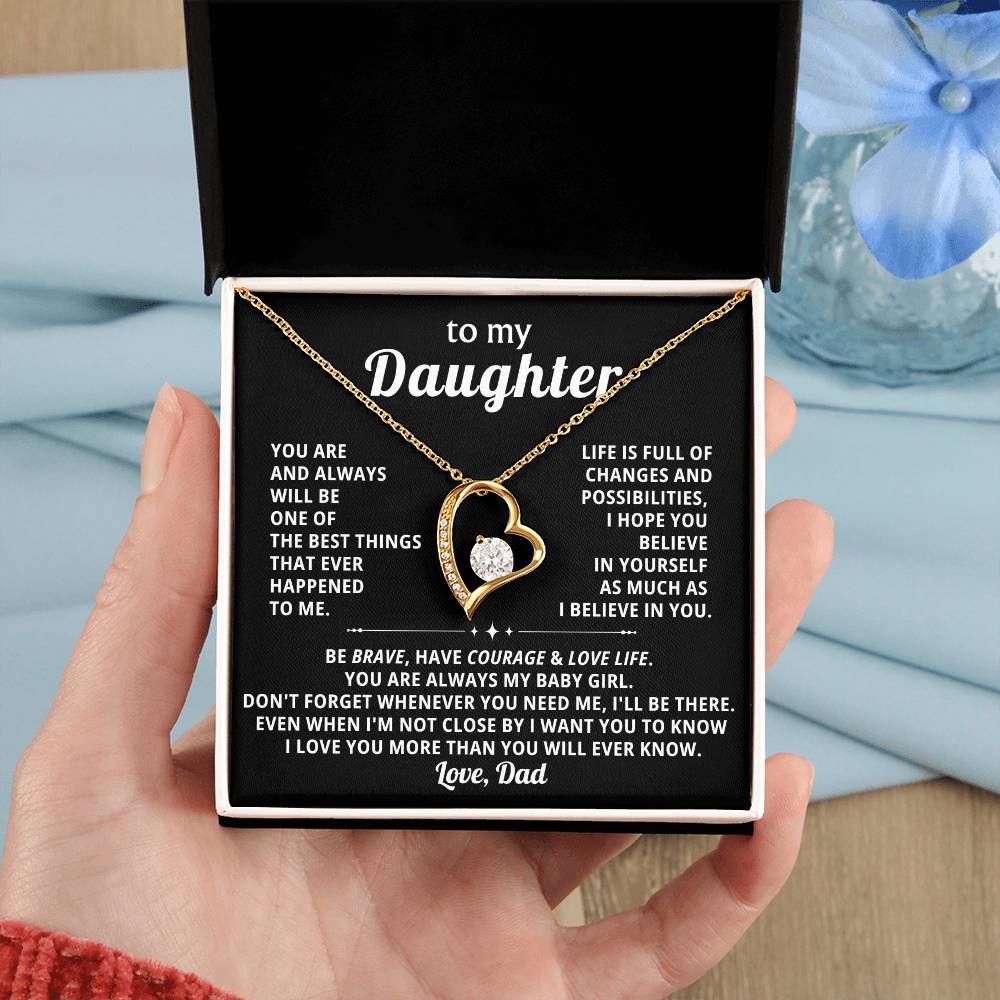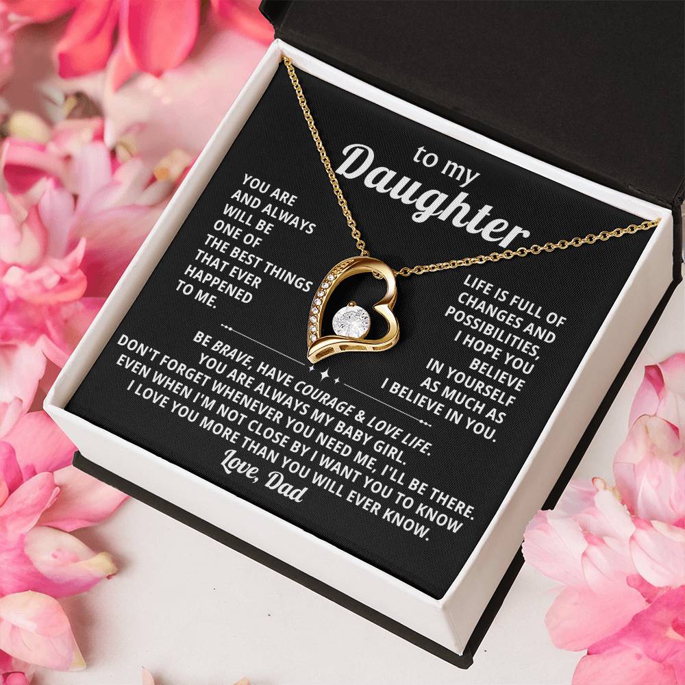 Quote On Card: TO MY BEAUTIFUL DAUGTHER - You are and always will be one of the BEST THINGS that ever happened to me. Life is full of changes and possibilities, I hope you believe in yourself as much as I believe in you. BE BRAVE, HAVE COURAGE & LOVE LIFE. You are always my baby girl. Don't forget whenever you need me, I'll be there. Even when I'm not close by I want you to know. I love you more than you will ever know.Love, Dad
