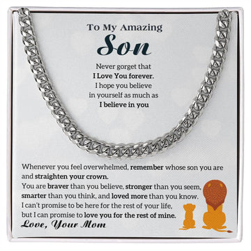 Quote On Card: “To My Amazing Son, Never Forget That I Love You Forever. I Hope You Believe In Yourself As Much As I Believe In You. Whenever You Feel Overwhelmed, Remember Whose Son You Are And Straighten Your Crown. You Are Braver Than You Believe, Stronger Than You Seem, Smarter Than You Think, And Loved More Than You Know. I Can’t Promise To Be Here For The Rest Of Your Life, But I Can Promise To Love You For The Rest Of Mine. Love, Your Mom”