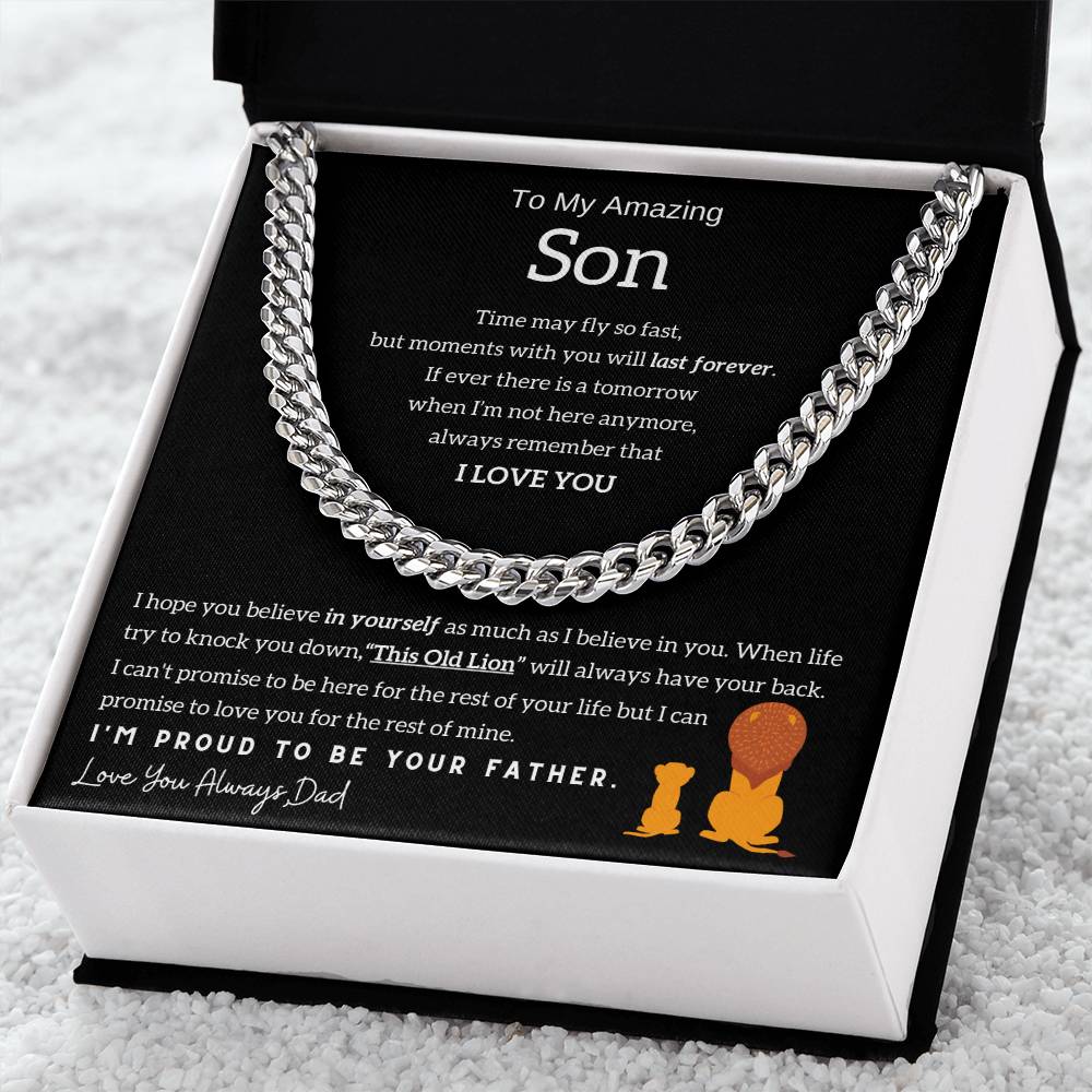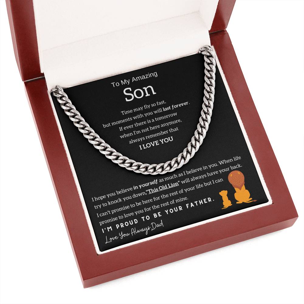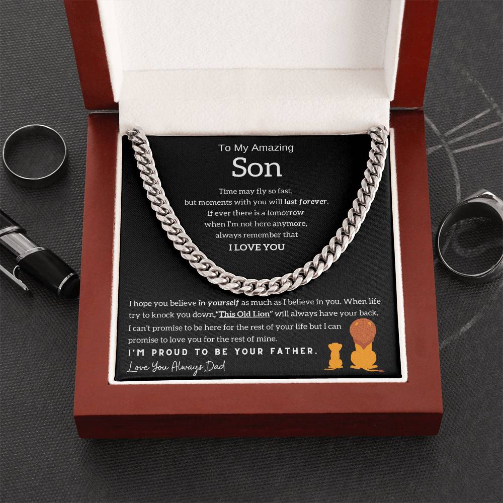 Quote On Card: "To My Amazing Son, Time may fly so fast, but moments with you will last forever. If ever there is a tomorrow when I’m not here anymore, always remember that I LOVE YOU. I hope you believe in yourself as much as I believe in you. When life try to knock you down,“This Old Lion” will always have your back. I can't promise to be here for the rest of your life but I can promise to LOVE YOU for the rest of mine. I'm proud to be your Father. Love You Always, Dad"⭐⭐⭐⭐⭐ Nick L.